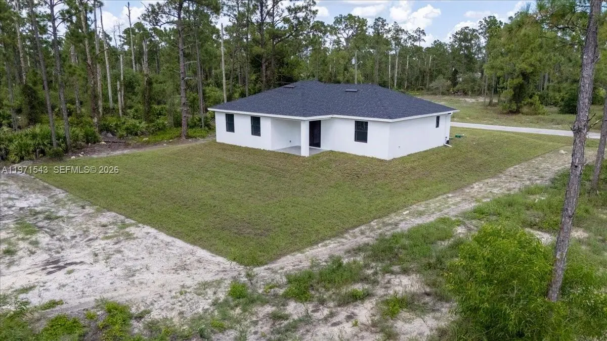 Stunning! New construction home on an oversized 0.62-acre lot located at the end of a quiet street next to the canal in Lehigh Acres. This modern open-concept home features 3 bedrooms + DEN, 2 bathrooms, and a 2-car garage. Designed with high ceilings, abundant natural light, and elegant finishes throughout. The gourmet kitchen offers a central island, quartz countertops, and high-end stainless-steel appliances. The expansive lot provides plenty of room for a pool, outdoor living, or simply enjoying the privacy and peaceful canal views. A rare opportunity to own a stylish home with modern design, space, and a prime location! Seller will contribute $5,000 toward closing costs at the listed price.