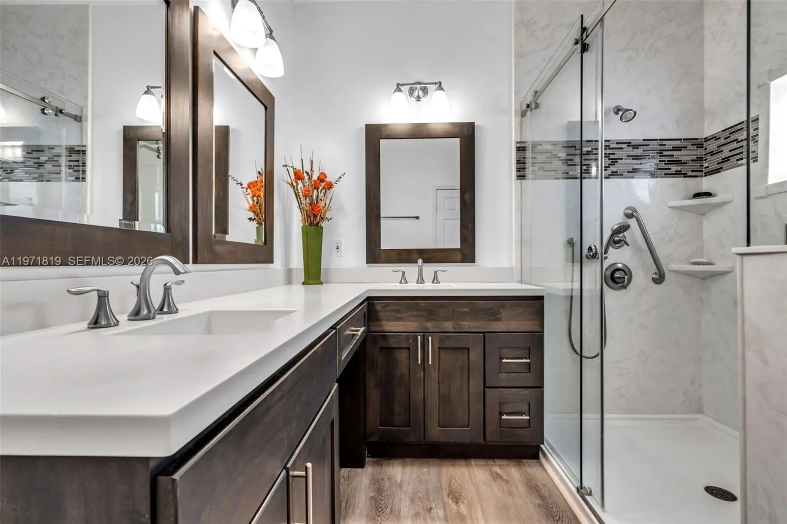 A rare opportunity to own in one of the area's most desirable private gated communities with an exceptionally low $220/month HOA. Stunning 3BD/2.5BA residence surrounded by lakes and lush greenery. Designed with soaring ceiling heights from 9’ to 11’, creating a bright and airy feel throughout. Impact windows and doors plus a brand-new metallic roof installed in Dec 2025, offering peace of mind for years to come. Modern kitchen with quartz countertops, waterfall-edge island and full quartz backsplash. Updated bathrooms with frameless glass shower and dual vanities. Curated landscape design, expansive covered terrace and oversized paved patio. Large driveway with plenty of parking and 2-car garage. Homes in this community rarely become available. Residents enjoy resort-style amenities including tennis and pickleball courts, a fitness center, a community pool, and private lake access allowing community members to enjoy boating on the expansive lakes (boats up to 19 feet permitted).