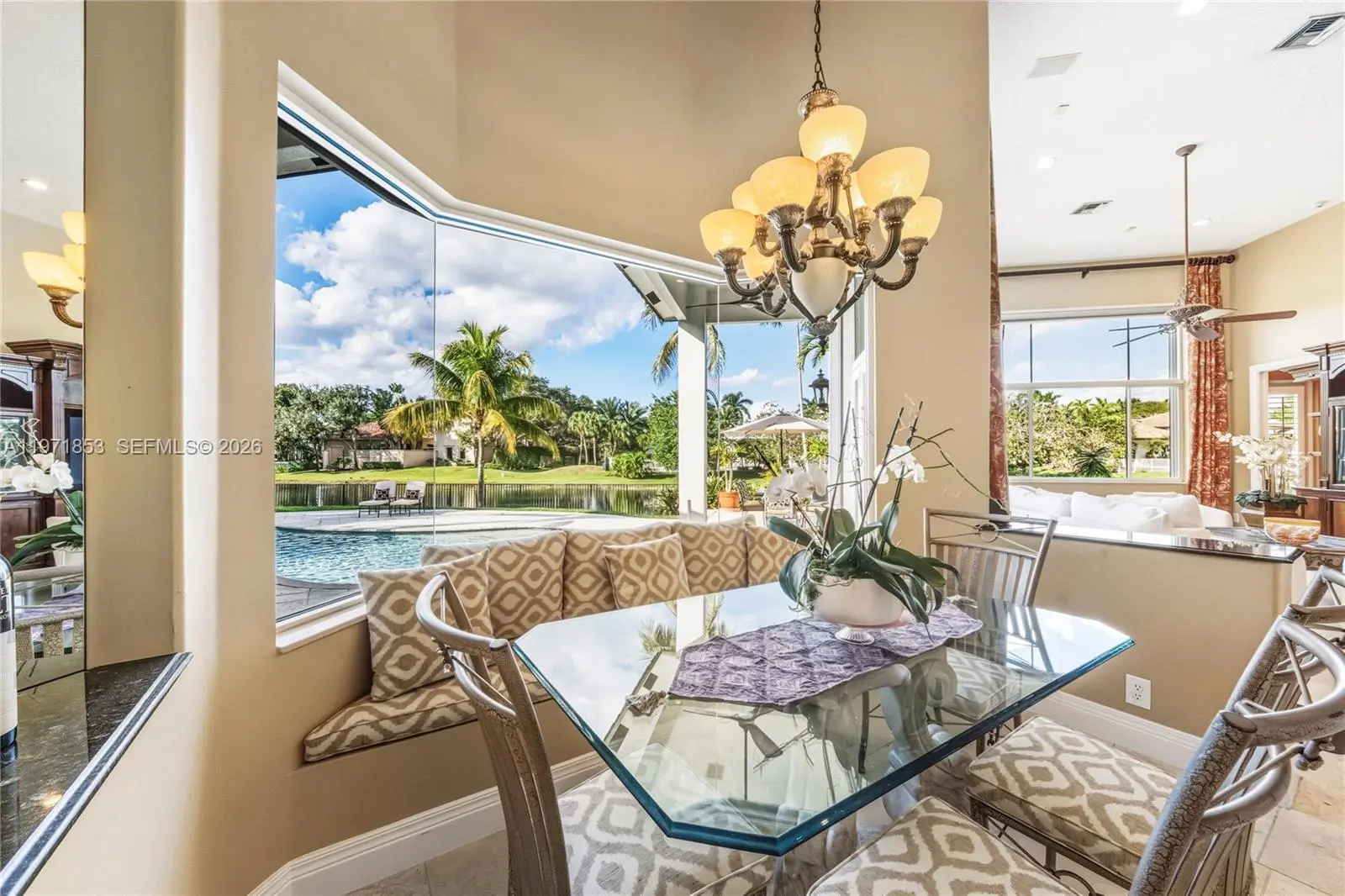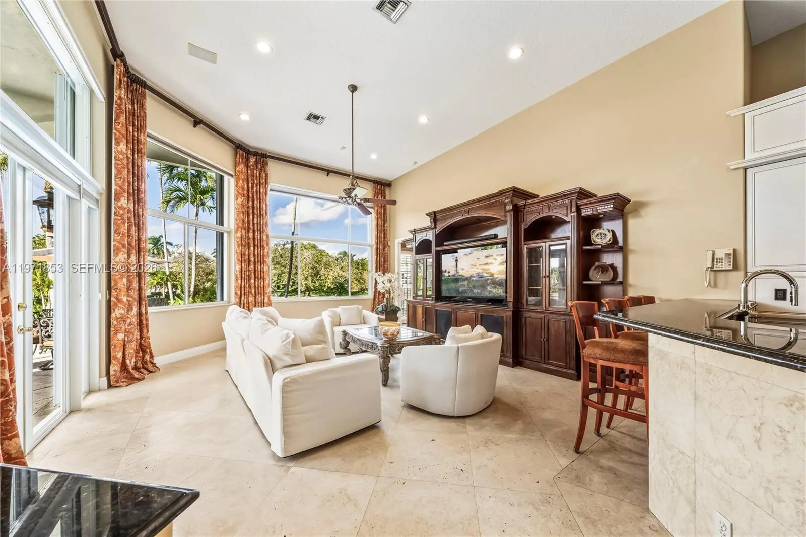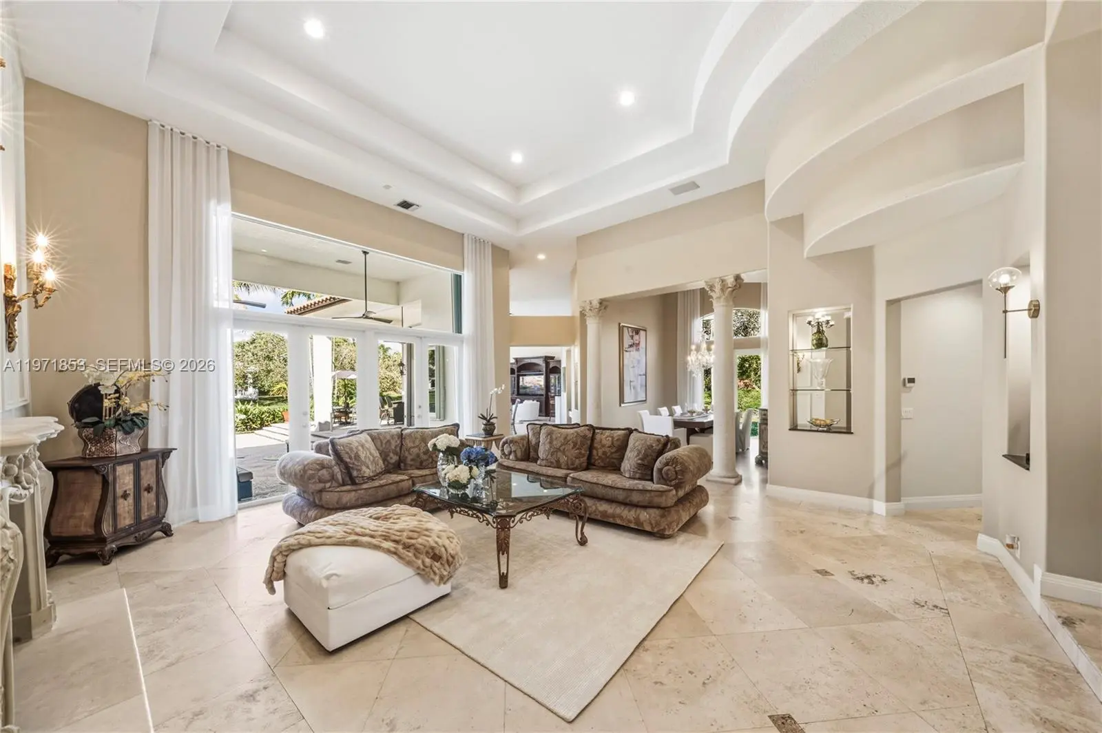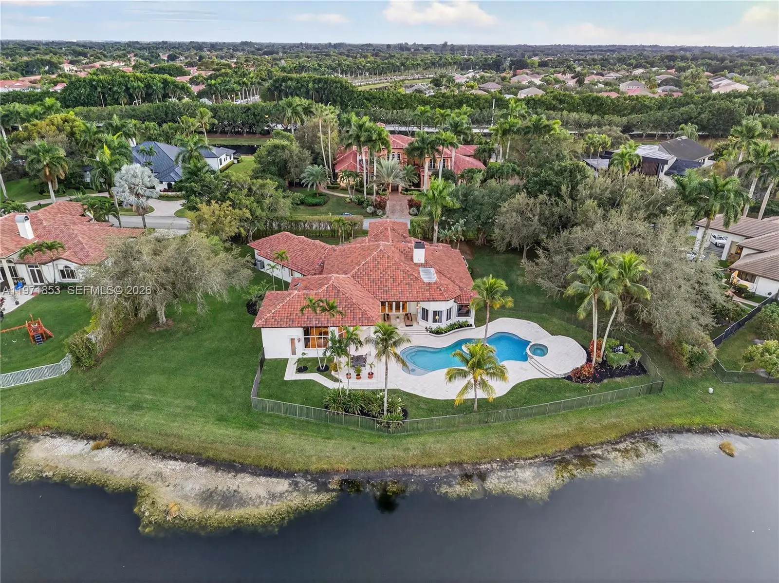 Experience refined living in Westons most prestigious guard gated community, Windmill Ranch Estates. From the moment you arrive, a grand fountain entrance sets the tone for the elegance that awaits you inside.A stately Porte Cochere provides both architectural distinction and convenient covered access, creating a dramatic first impression. Step through the large entrance doors to discover expansive living spaces designed for both luxurious entertaining and comfortable everyday living. Each of the 5 spacious bedrooms offer privacy and comfort, with beautiful appointed en suite bathrooms. There is also an additional library/ office with cherry wood floors and high ceilings.The primary suite serves as a private retreat, designed for relaxation and tranquility. The home features 2 fireplaces, adding warmth and ambience to formal and informal gathering areas alike.Soaring ceilings, abundant natural light, and refined finishes elevate every room. At the heart of the home is the gourmet kitchen which is a chefs dream appointed with high end appliances, custom cabinetry, generous counter space, and an ideal layout for hosting dinners and celebrations. outdoors your private oasis awaits. Enjoy year round Florida living with a resort style pool and spa, surrounded by lush landscaping and ample patio space for entertaining or unwinding in complete serenity. Once you experience your first sunset , you will be hooked.