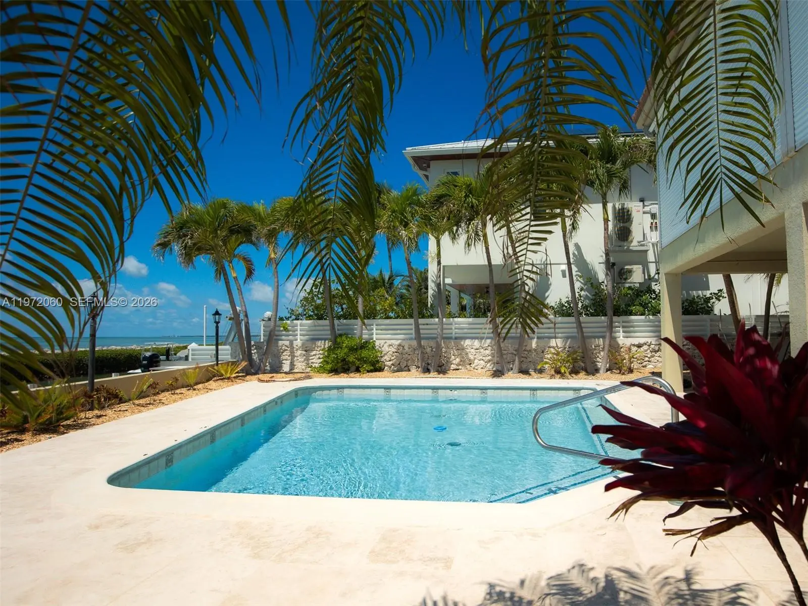 Motivated Seller...Call now to buy your perfect Dream home on the Oceanfront in beautiful Duck Key. Welcome to your dream coastal retreat on Duck Key, where BREATHTAKING COASTLINE VIEWS and refined island living exist in perfect harmony. This beautifully curated DESIGNER RESIDENCE is a three-bedroom, three-bath oceanfront concrete home by D'Asign Source, blending timeless elegance with modern comfort through soft earth tones, quality finishes, and sweeping panoramic views of the turquoise waters beyond. Inside, a spacious chef's kitchen anchors the home--ideal for entertaining--while a thoughtfully designed split floor plan offers privacy and flow. Two guest bedrooms enjoy direct ocean views, and the expansive primary suite is a serene sanctuary featuring a luxurious en-suite bath with designer tile, dual vanities, custom cabinetry, and a built-in makeup station. Step outside into your private waterfront oasis. A custom oceanfront pool deck and generous covered patio create the perfect setting for relaxation after a day on the water. A 25,000 POUND BOAT LIFT and seawall provide effortless access to the open ocean with no fixed bridges, making this an exceptional location for boating, paddleboarding, and kayaking directly from your dock. Additional features include a screened-in balcony with electric shutters, two large storage rooms, an L-shaped two-car garage, ample outdoor parking, and a wide driveway.