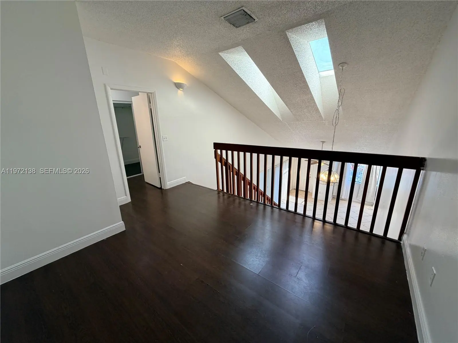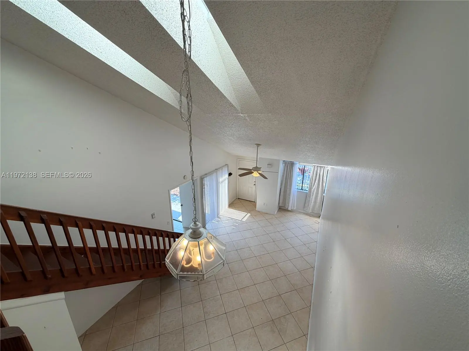 Large 3/2 townhouse, PLUS LOFT, with title floors downstairs and laminate upstairs. Updated kitchen cabinets and bathrooms. Granite counters, vaulted ceilings, and skylight over loft. Master bedroom upstairs with walk in closet and his&hers vanity area, while the other 2 bedrooms and bathroom are downstairs, along with the laundry room. Private backyard patio and small balcony upstairs. Located near tennis courts and pool. Great location, within walking distance to large shopping plaza. VACANT AND READY TO MOVE IN.