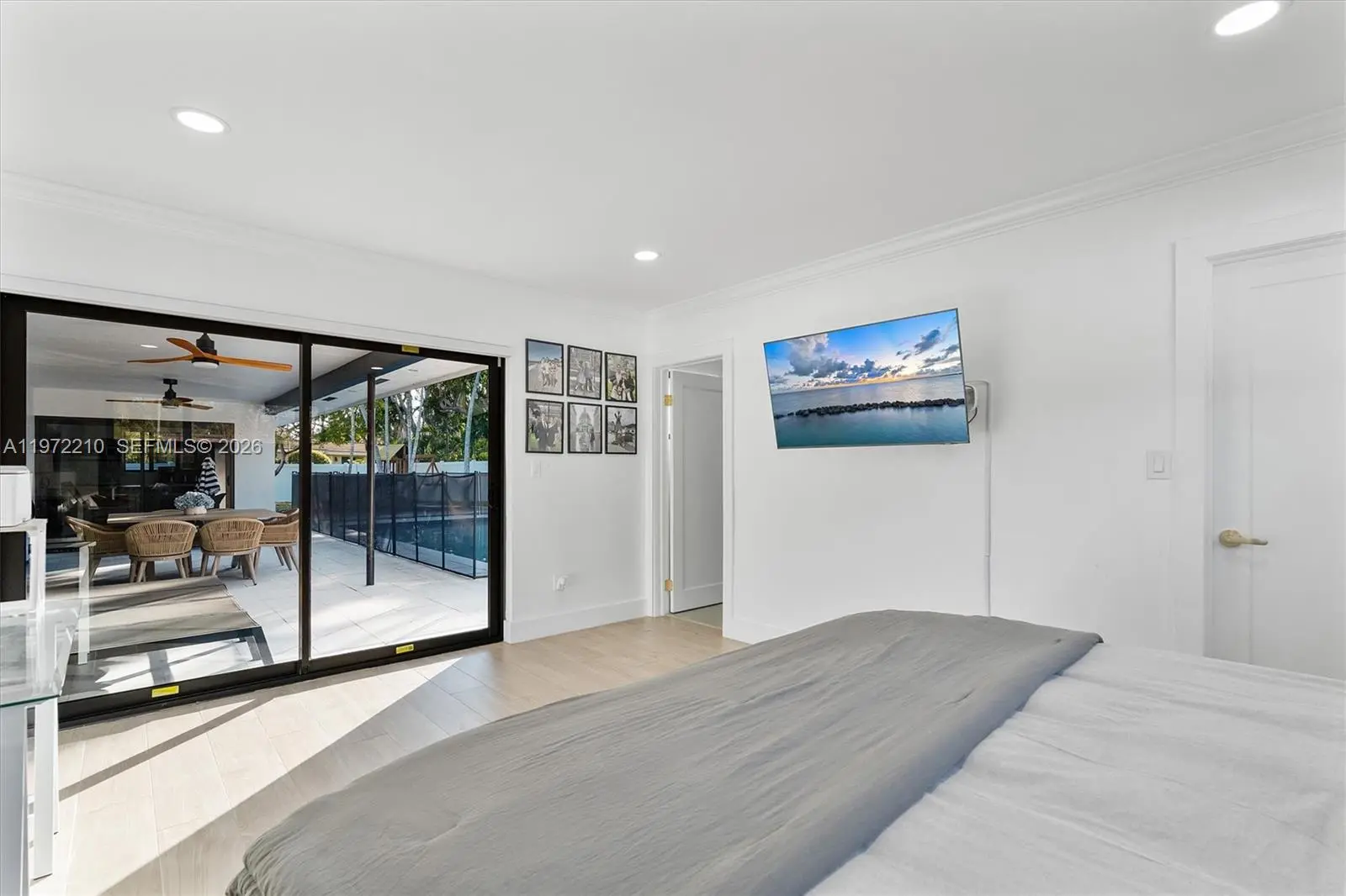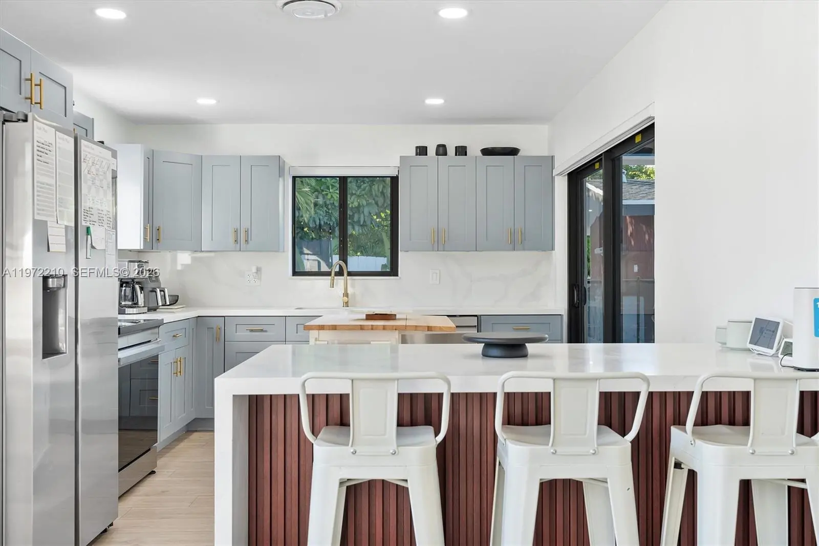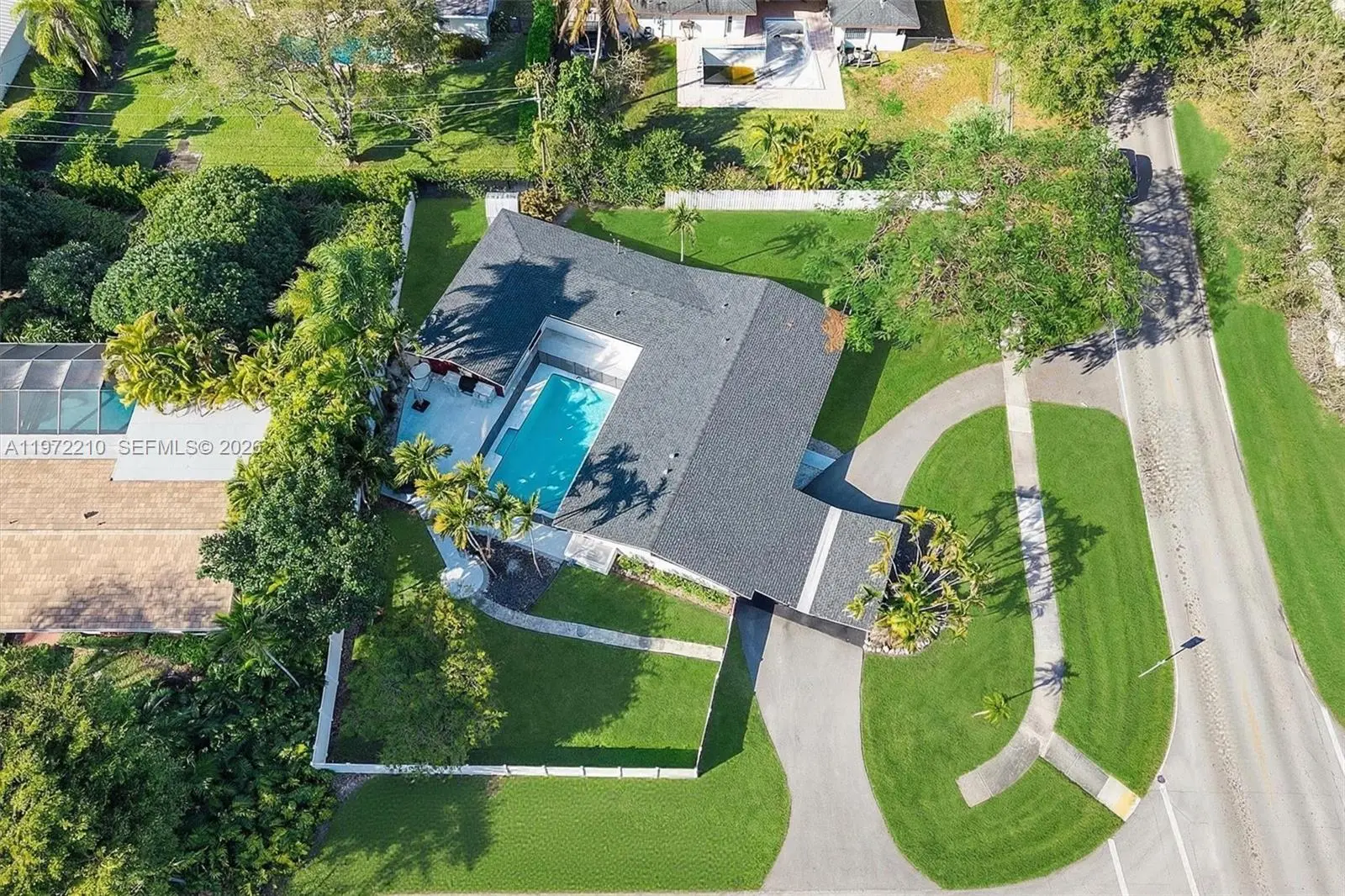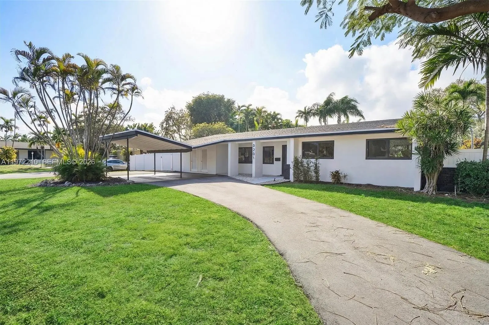 Located in Mangowood, this beautifully renovated single-story residence offers 2,525 square feet with 5 bedrooms and 3 full bathrooms. Updates include a new roof (2023), remodeled kitchen and baths, new flooring, impact windows, two new A/C systems (2024), smart thermostats (2025), and an on-demand water heater and electrical panel (2026), providing peace of mind for many years to come. Designed for seamless indoor-outdoor living, the home wraps around the pool, creating a serene, private oasis. Expansive sliding glass doors and windows fill the space with natural light. Multiple outdoor living areas include a covered terrace, dedicated BBQ space, and generous yard areas on both sides of the 16,334 sqft corner lot. The flexible layout supports multigenerational living or evolving needs. Generous closets and ample parking add everyday ease, all just moments from top schools, shopping, and fitness. Mortgage savings may be available for buyers of this listing.