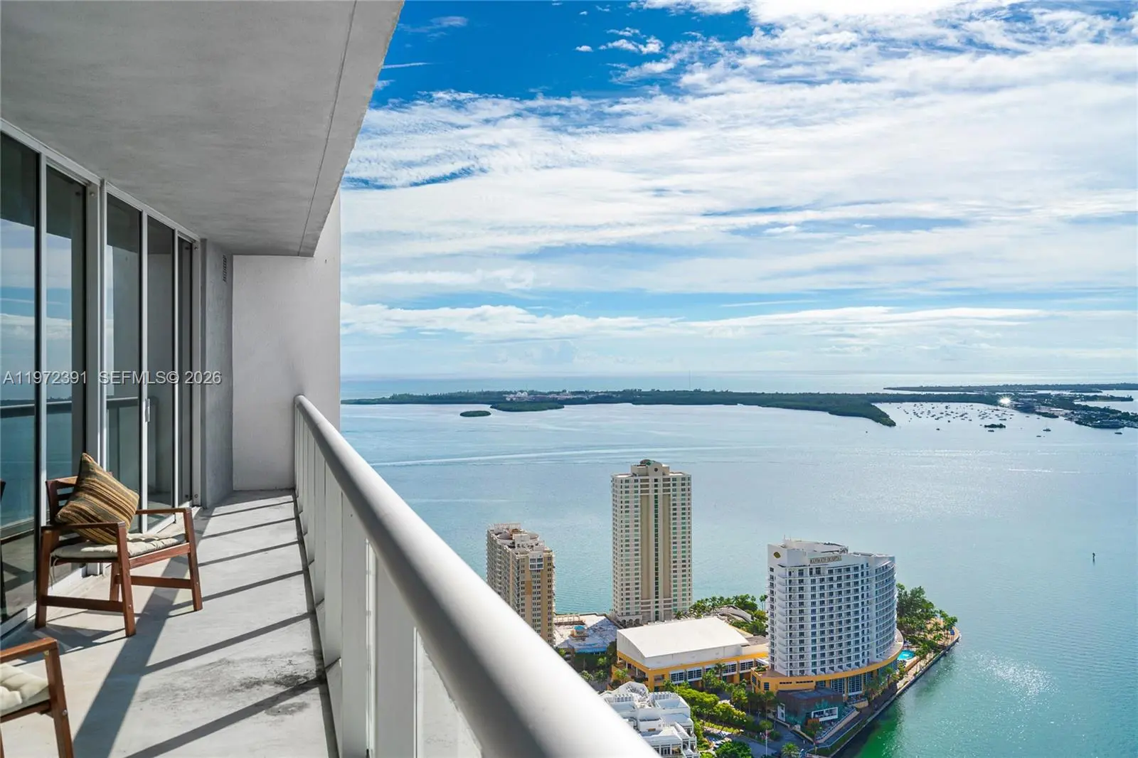 Iconic building by Arquitectonica with interiors by Philippe Starck. Best line with views of Brickell Key, Biscayne Bay, and skyline. Split 2/2 + Den. High-end appliances. Amenities: pool, spa, fitness, concierge. Short stroll to Brickell City Centre. Basic Cable/internet/1 parking space included. Unfurnished. Pet-friendly. Bldg Exterior renovations ongoing. 1,450 sq ft living / 1,655 sq ft total. Rented until April 2026. Showings Mon - Fri w/ a min 48-hr notice.