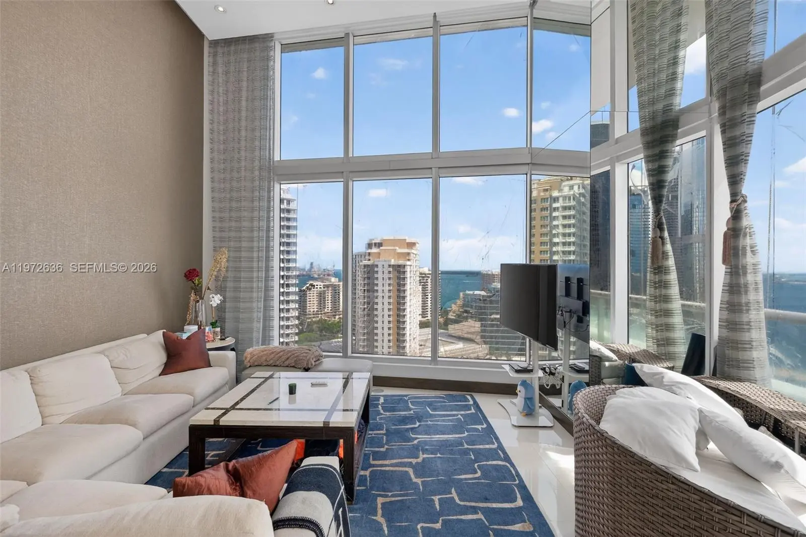 READY TO MOVE IN!! Live in luxury in this impressive Brickell condominium featuring double-height ceilings, panoramic ocean views, and professional décor. Located in a premier building with 5-star amenities in the heart of Brickell, this residence offers a resort-style lifestyle just steps from restaurants, shops, and the financial district