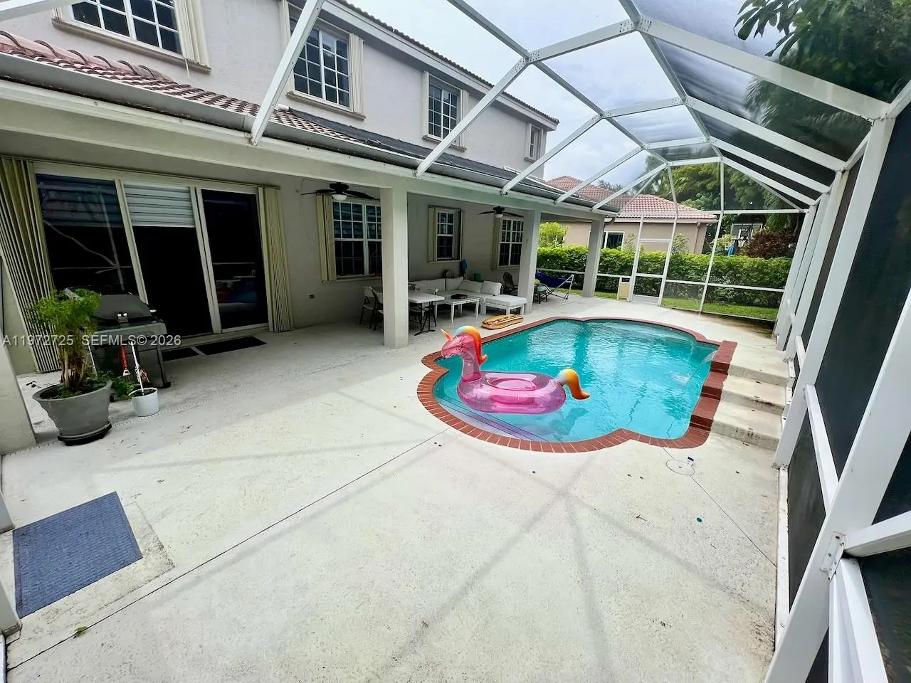 Step into elegance and comfort with this expansive 5-bedroom, 4-bathroom residence, perfectly designed for the modern family. Featuring a coveted 3-car garage and an open-concept layout, this home is bathed in abundant natural light and refined finishes. The heart of the home flows seamlessly to a gourmet kitchen, ideal for hosting, while the spacious living areas with high ceilings lead directly to your private backyard sanctuary. Enjoy South Florida living at its finest with a screened and heated swimming pool surrounded by lush landscaping, offering the ultimate space for relaxation or weekend BBQs. Resort style community swimming pool, recreation area with kids playground, basquet court, soccer and baseball field , Tennis court, etc. Price for a FAST SALE bring all offers.
