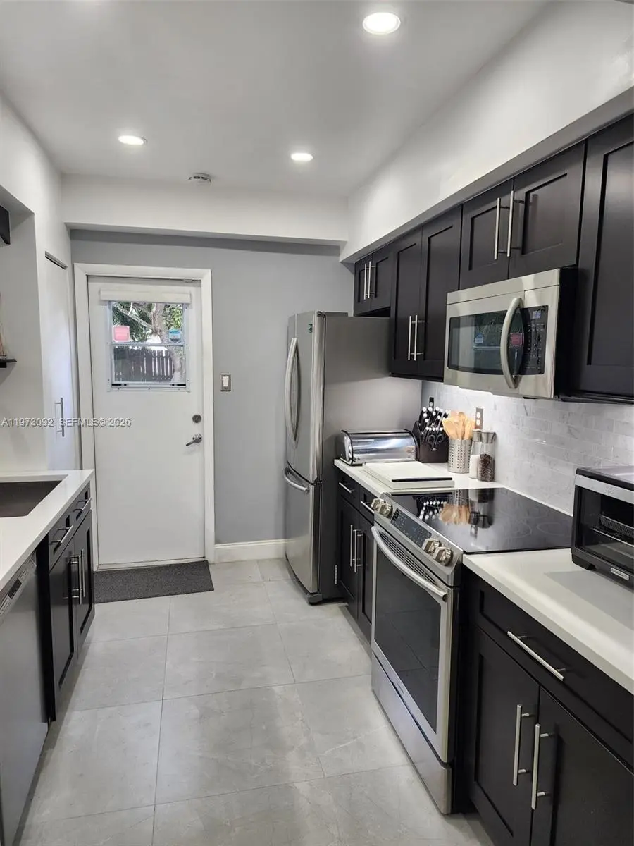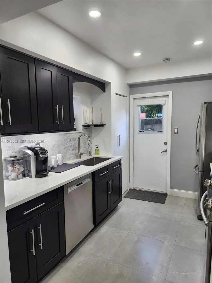 Own a piece of old Florida in desirable Dania Beach! This gem sits on a 9,100 sq ft lot w/mature foliage. This updated 2-bedroom, 1-bath single family home features a modern kitchen equipped w/espresso brown wood cabinetry, thick quartz countertops, quality Samsung appliances & Bosch dishwasher. 1-car garage w/manual door. Main living area has engineered bamboo plank flooring, 2nd bedroom/kitchen offers porcelain tile. Updated bathroom has glass shower enclosure. Full-size GE washer/dryer are conveniently located just off the kitchen. Additional updates include hi-hats thru out, GE electric panel, a 2011 water heater, 2023 air conditioning system w/UV light & Ecobee Thermostat. Ring camera doorbell, side/back motion sensor flood light ring camera installed. Flat roof 2018. City water & sewer. Front exterior is pre-wired for landscape lighting. The home includes a spacious, fenced backyard as well as a huge 12x20 storage shed permitted. Irrigation is provided by a sprinkler system connected to the main line (city water) which is sold AS IS. NO HOA restrictions! Ample space for a boat, RV, work truck, jet skis + more! Situated just minutes from major highways, Beaches, coastal amenities, Hard Rock Hotel, Casino's, Fort Lauderdale Airport, shopping, dining. Public transportation down the street. This property presents an excellent opportunity for first-time buyers or investors seeking a prime location. Active contract with Terminix in place. PROPERTY SOLD AS IS!