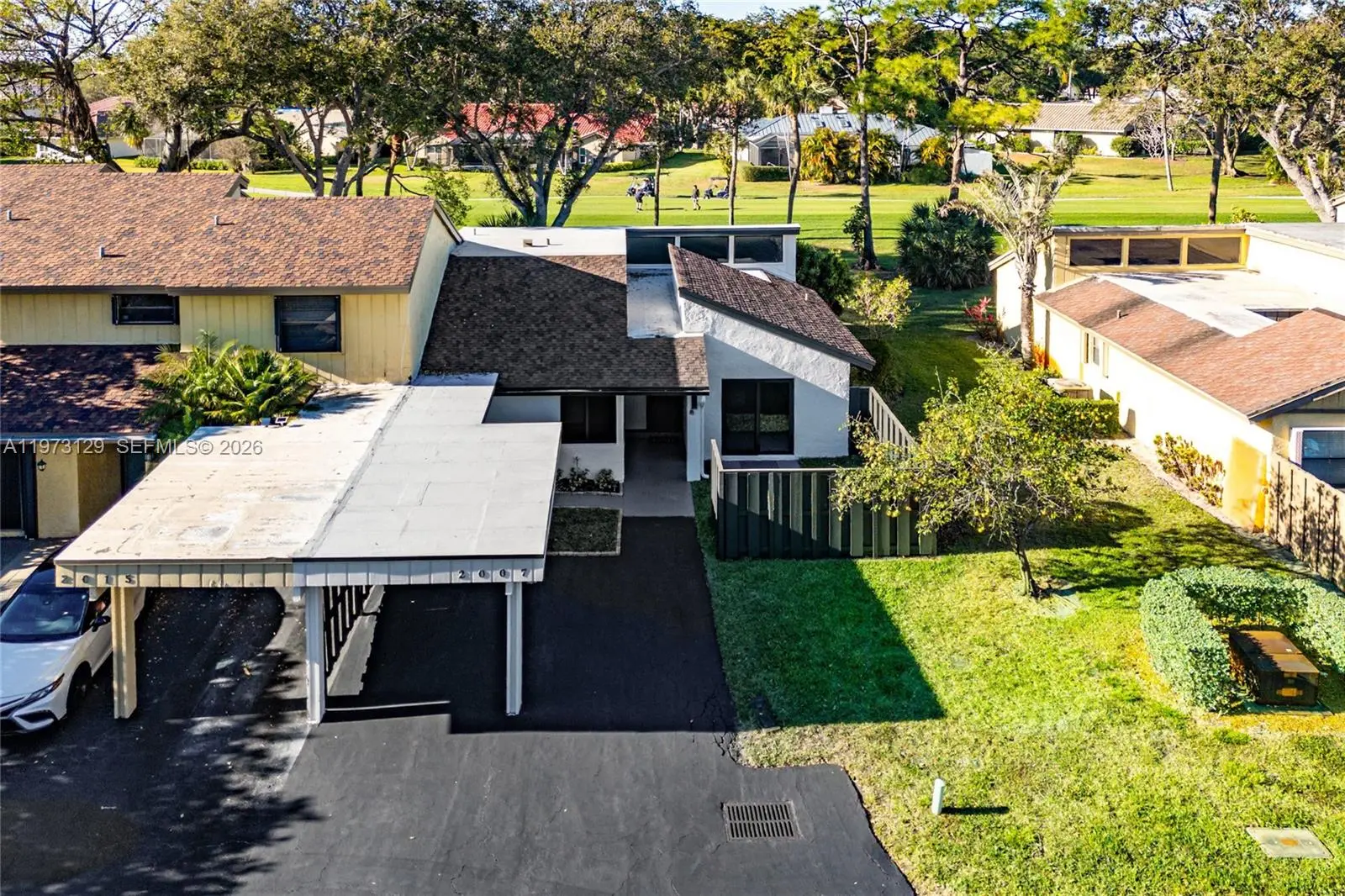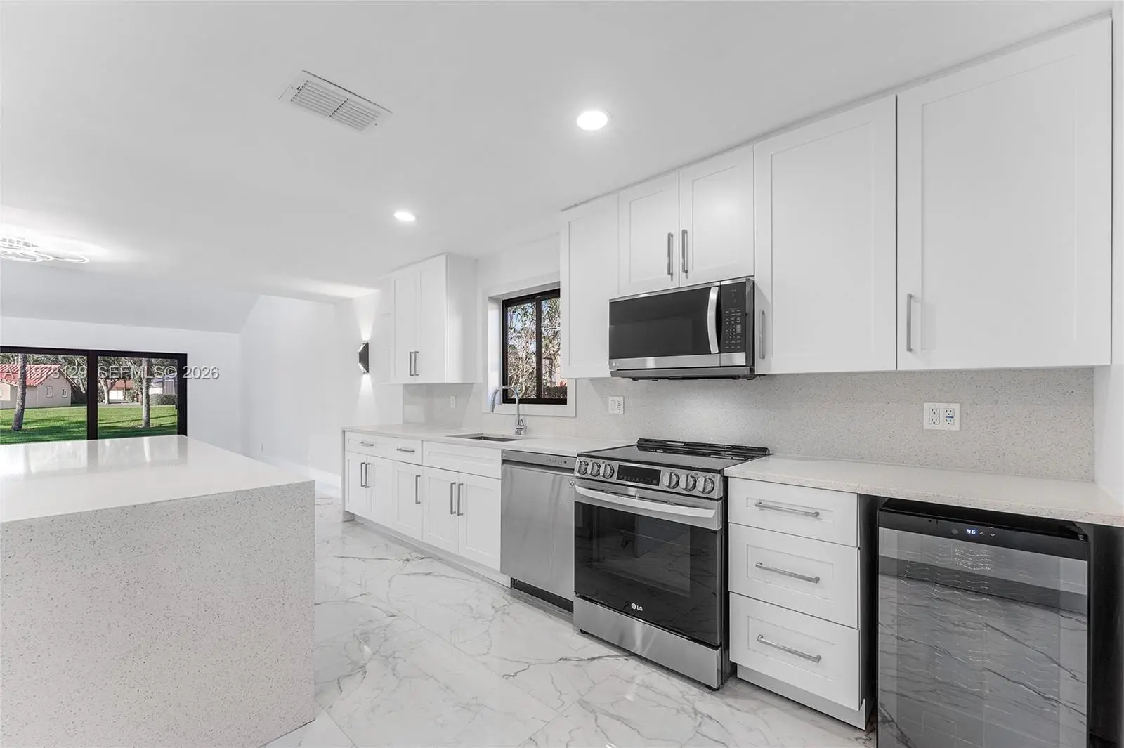 COMPLETELY GUT-RENOVATED in 2026 — HANDS DOWN the MOST UPDATED home in the Woodlands of Deer Creek! Situated on a PREMIUM CORNER LOT backing DIRECTLY to the GOLF COURSE, enjoy BREATHTAKING SUNSET VIEWS and extra privacy with only ONE DIRECT SIDE NEIGHBOR. Major 2026 upgrades include a BRAND-NEW ROOF, ALL NEW A.1 WIND-MITIGATED HURRICANE-IMPACT WINDOWS & DOORS, NEW AC, TANKLESS WATER HEATER (ENDLESS HOT WATER), NEW WASHER/DRYER, and a 70A LEVEL 2 EV CHARGER. Freshly painted Feb 2026 in the HOA’s NEW APPROVED COLOR PALETTE — first completed in the community! The SHOW-STOPPING oversized QUARTZ kitchen features 40+ shaker cabinets and BRAND-NEW LG APPLIANCES including oversized fridge/freezer with water & ice dispenser PLUS WHISKEY ICE MAKER, 6-BURNER INDUCTION RANGE with oven & broiler, high-powered exhaust, microwave, dishwasher, and 34-bottle wine cooler. LUXURY primary and guest baths boast quartz & Italian marble counters, porcelain tile showers, and MULTI-JET SPA SYSTEMS. Large-format porcelain tile throughout main areas; 8mm waterproof/soundproof luxury vinyl in bedrooms. LED/SMART LIGHTING throughout. Exterior storage shed included. LOW $180/month HOA covers lawn care, irrigation & weekly mowing. NO mandatory country club dues. IMMACULATE. MOVE-IN READY. PRICED TO SELL. Highest & Best offer will be selected.