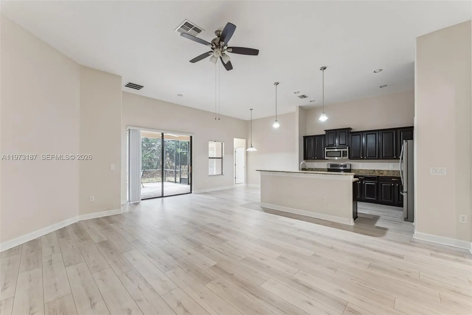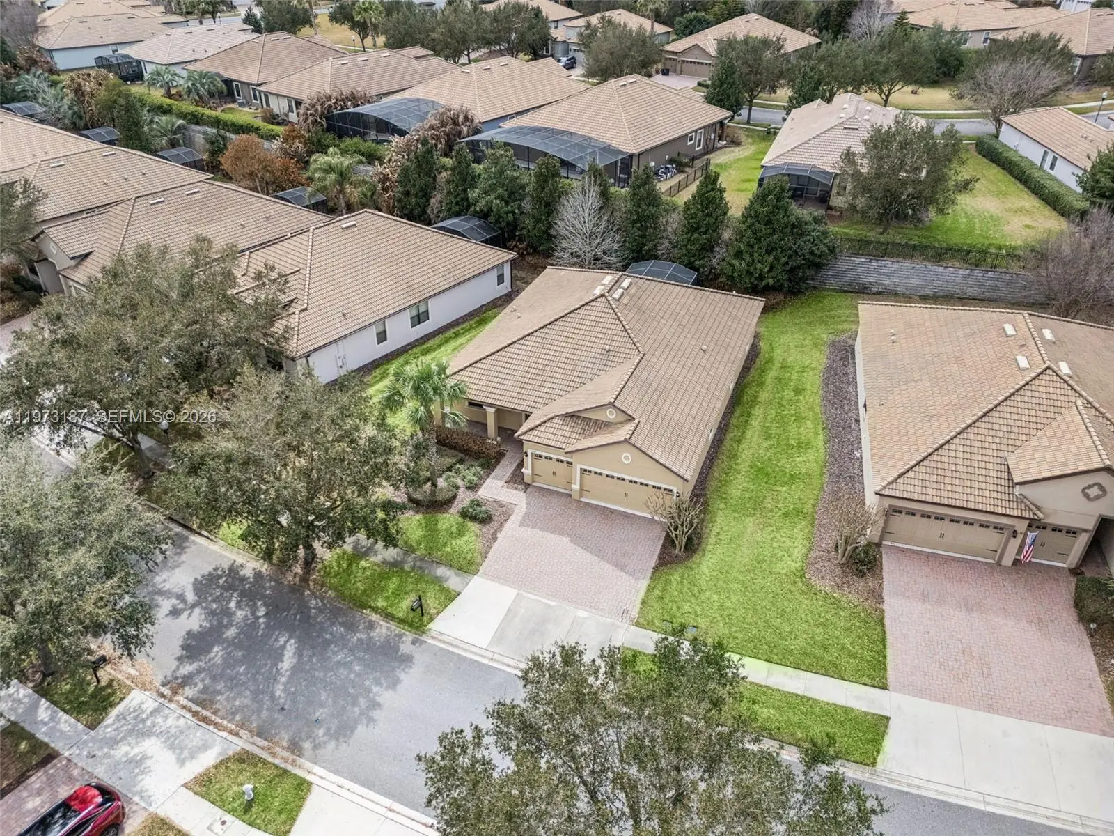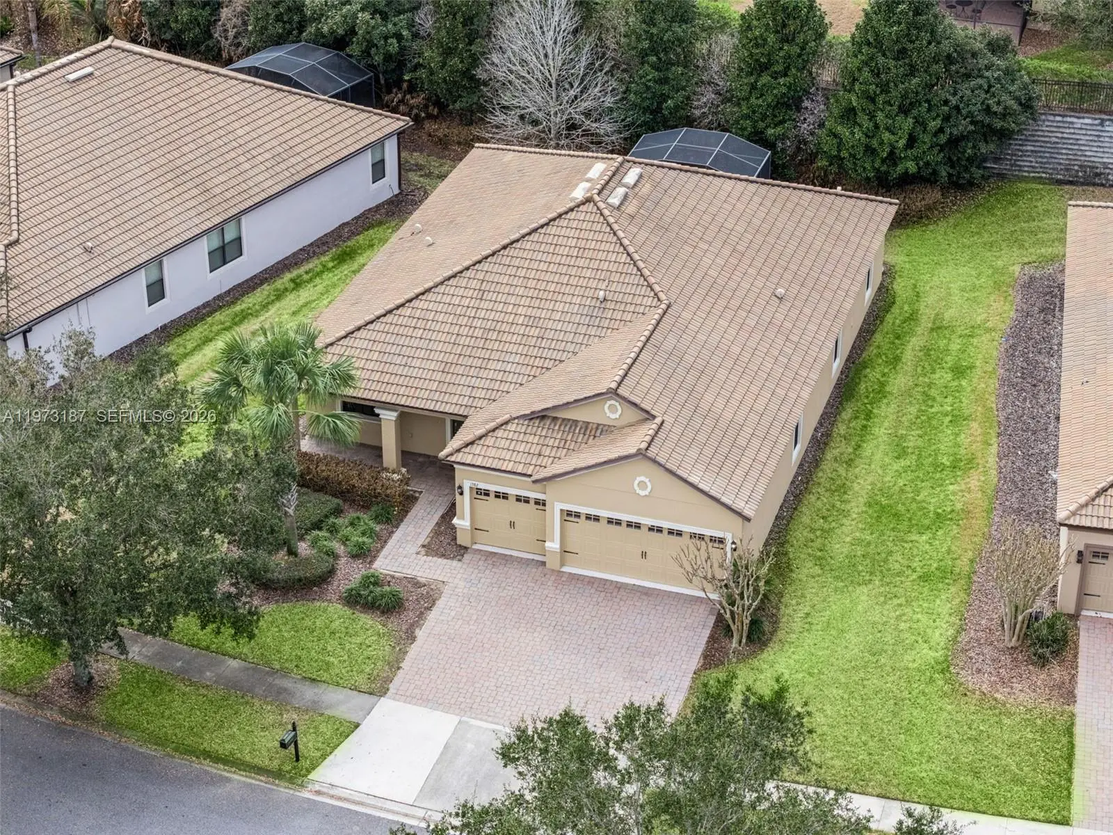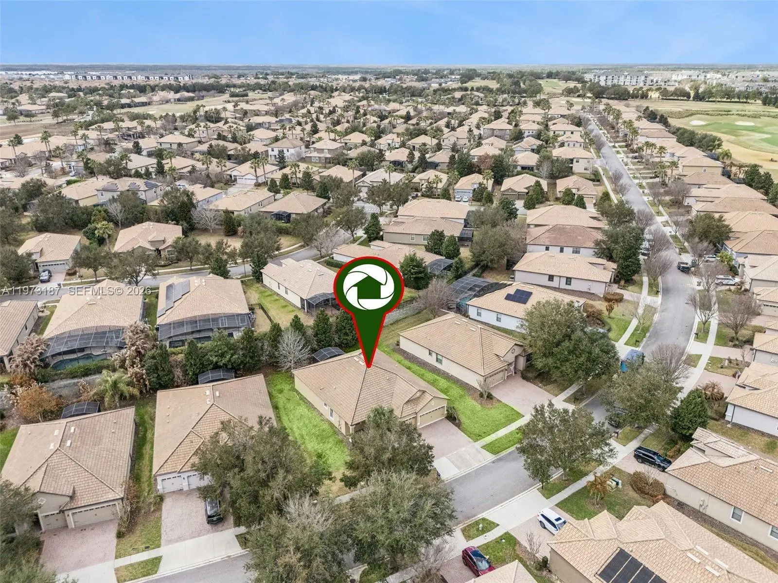 Discover this charming single-story home on a premium elevated lot in the prestigious Champions Gate community. This elegant four-bedroom, three-bathroom residence spans over 2,300 square feet, blending luxury and comfort seamlessly. The open floor plan enhances everyday living and entertaining, with the kitchen integrating with the main living and dining areas. The primary suite offers an expansive bathroom and built-in walk-in closet, while three additional bedrooms provide flexibility for various living arrangements. Unwind on your private covered and screened-in lanai, enjoying the peaceful atmosphere. Champions Gate is a luxury, gated community centered around The Oasis Club, featuring a 14,000-square-foot clubhouse with a restaurant, tiki bar, movie theater, fitness center, game room, lazy river, and private cabanas. Residents also enjoy The Plaza, an exclusive clubhouse with its own restaurant, bar, fitness center, sauna, game room, pickleball courts, and two pools. The HOA includes access to these facilities, full golf membership on an 18-hole course designed by George Clifton, along with lawn care, basic cable, internet, phone, and gated security. Golf carts are welcome, providing easy access to all amenities. Located just a few miles from I-4, the community offers quick access to Central Florida attractions, dining, and shopping. Please contact us with any questions or to request further information.