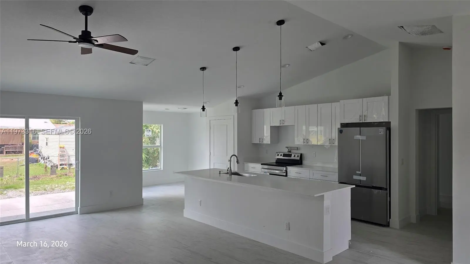Brand new construction with projected delivery mid-May 2026. One of the largest single-family homes currently available in the neighborhood. This home offers a functional split-bedroom layout, providing privacy between the primary suite and secondary bedrooms. Impact windows and modern finishes throughout. Open living and dining areas flow seamlessly, ideal for everyday living and entertaining. Kitchen includes stainless steel Midea appliances. No HOA. Secure this home before completion. Contact listing agent for construction updates and details.
