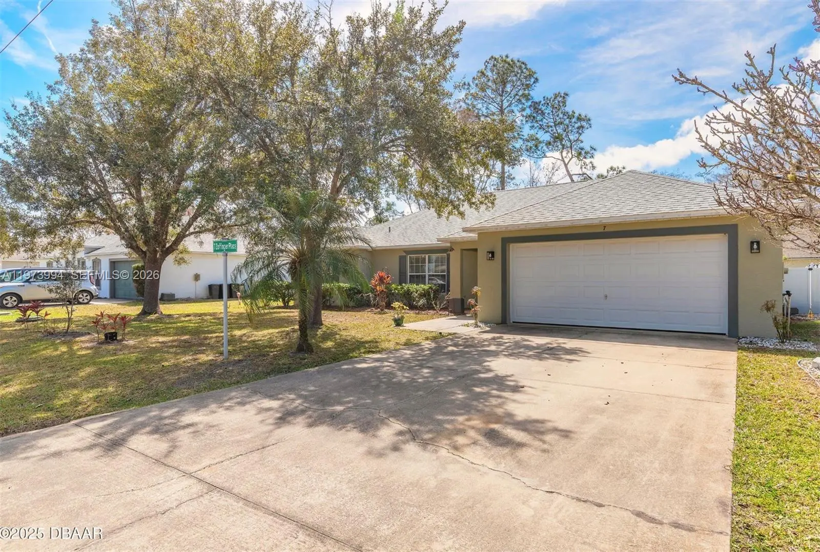 Turn-Key Perfection on a Quiet Cul-De-Sac! Welcome to 7 Zoffinger Pl, a beautifully renovated 4-bedroom, 2-bath sanctuary in the heart of the Quail Hollow neighborhood. This home is the definition of "move-in ready," boasting major 2023 upgrades that offer total peace of mind. Brand New Infrastructure: NEW ROOF and NEW AC Modern Interior: Soaring volume ceilings, fresh Sherwin Williams exterior paint, and sleek tile flooring throughout the main living areas. Space to Breathe: Enjoy a massive living area, formal dining, and huge bedrooms with incredible storage capacity.Master Suite: Features a large walk-in closet and a private walk-in shower.Outdoor Paradise: Relax on the massive screened-in patio overlooking a fully fenced, oversized backyard with mature landscaping.Located on a peaceful cul-de-sac, this home combines privacy with modern luxury. Whether you’re looking for a spacious family layout or a low-maintenance retreat, this renovated gem delivers. Schedule your showing today