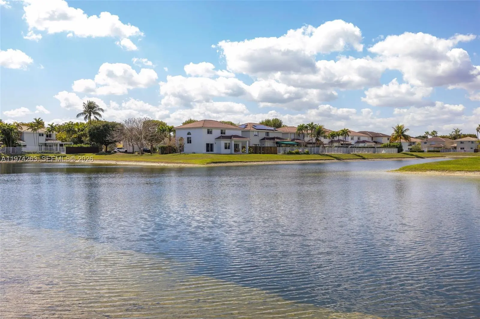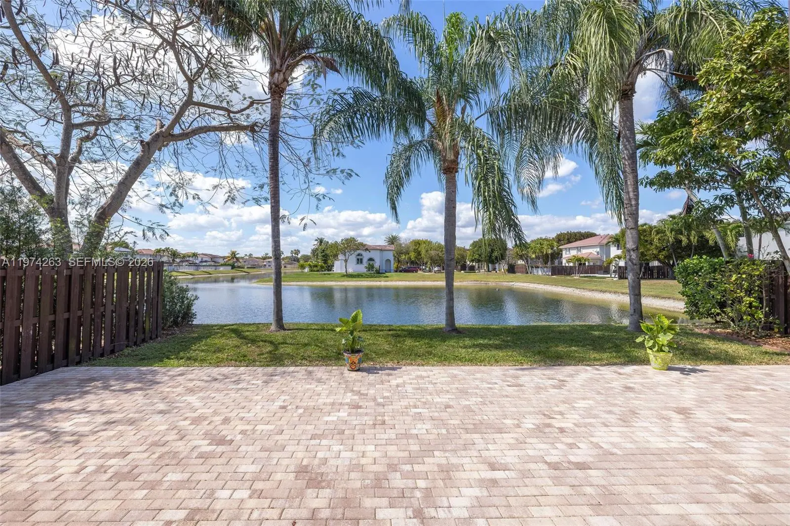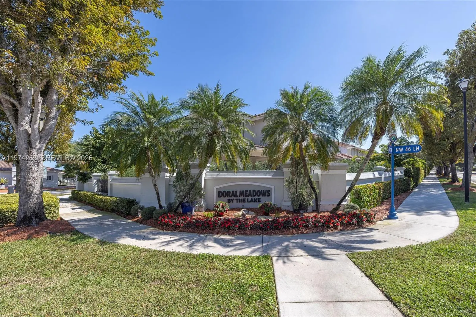 Presenting 4650 NW 109th Court, an exceptional waterfront residence set in a peaceful, elevated position toward the rear of the gated and highly sought-after Doral Meadows community. This true 4-bedroom, 2.5-bath home offers tranquil water views, quality upgrades, and a sense of privacy rarely found. The rear exposure overlooks open water, filling the living areas with natural light and showcasing beautiful sunset views. The layout blends formal and casual spaces with an effortless flow, ideal for both entertaining and everyday living. Interior features include travertine flooring, quartz kitchen countertops, generous cabinetry, and walk-in closets. The primary suite overlooks the lake and features a renovated bath (2021), creating a private retreat within the home. Recent improvements include a new roof (2024) with 10-year warranty, new patio pavers (2025), fresh interior paint (2024), a new refrigerator (2025), washer and dryer (2021), hurricane accordion shutters, impact doors and garage doors, an irrigation system, and A/C under maintenance contract. Parking accommodates up to six vehicles with a two-car garage and extended driveway, a notable advantage in the community. Residents enjoy gated entry with ADT monitoring and access to a community pool. The location offers walkability to A-rated schools, parks, and playgrounds, and is just one mile from Whole Foods, with convenient access to International and Dolphin Malls.