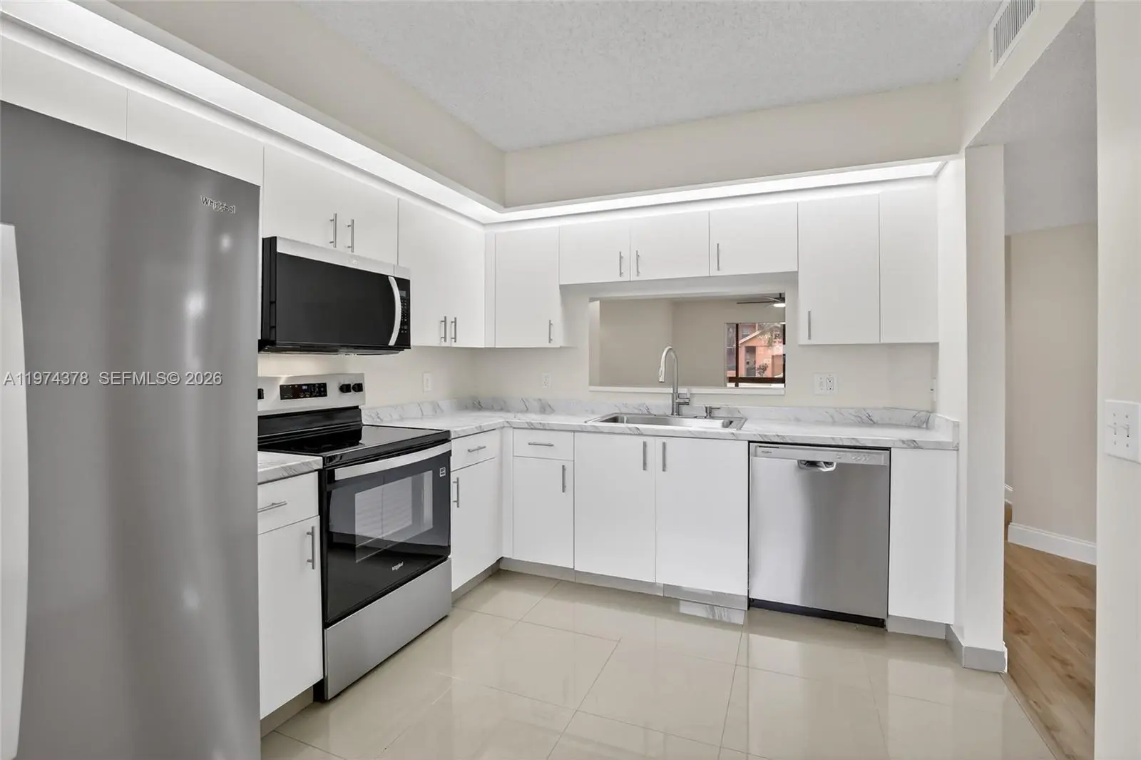 Enjoy peaceful mornings in this beautifully upgraded first-floor condo located in the highly desirable Century Village Pembroke Pines, one of South Florida’s most amenity-rich 55+ communities. This home offers not only comfort and style but also an exceptional lifestyle. The upgraded kitchen features brand-new stainless-steel appliances, new countertop, sink, faucet, and pantry door. Bathrooms have been fully refreshed with new vanities, lighted mirrors, modern lighting, toilets, exhaust fans, and updated shower fixtures. Additional upgrades include new flooring and baseboards throughout, freshly painted interior, and a convenient in-unit washer and dryer. A/C replaced in 2024. Assigned parking is located just steps from the unit. Residents enjoy resort-style living with access to an impressive array of amenities, including a 1,042-seat theater with live performances, fitness centers, indoor and outdoor pools, sauna, pickleball and tennis courts, billiards and card rooms, library, and numerous clubs and social activities. The community also features a par-71 golf course, on-site restaurant, and medical center, along with 24/7 gated security. An active social calendar offers something to enjoy every day. At least one resident must be 55+.