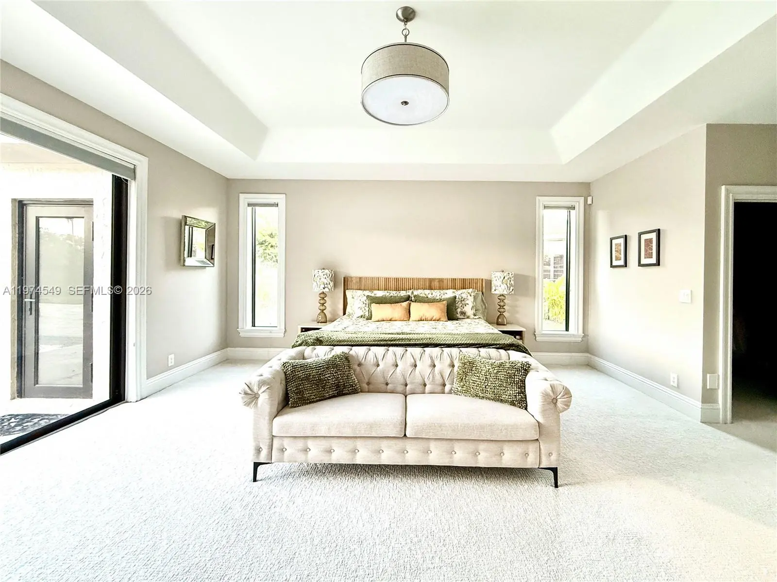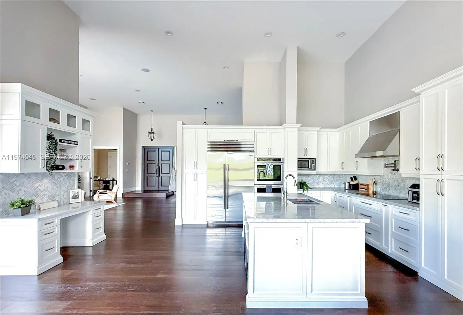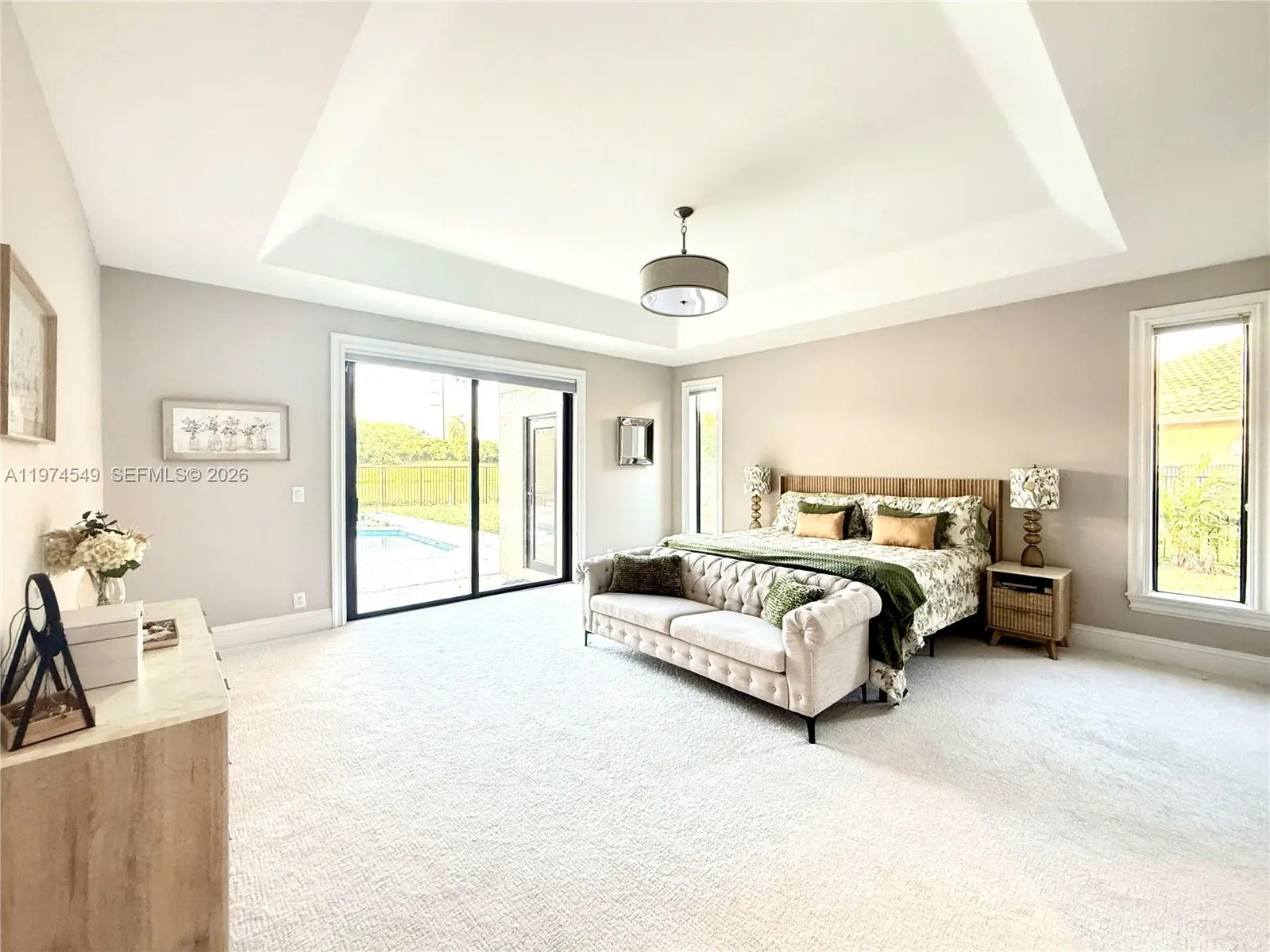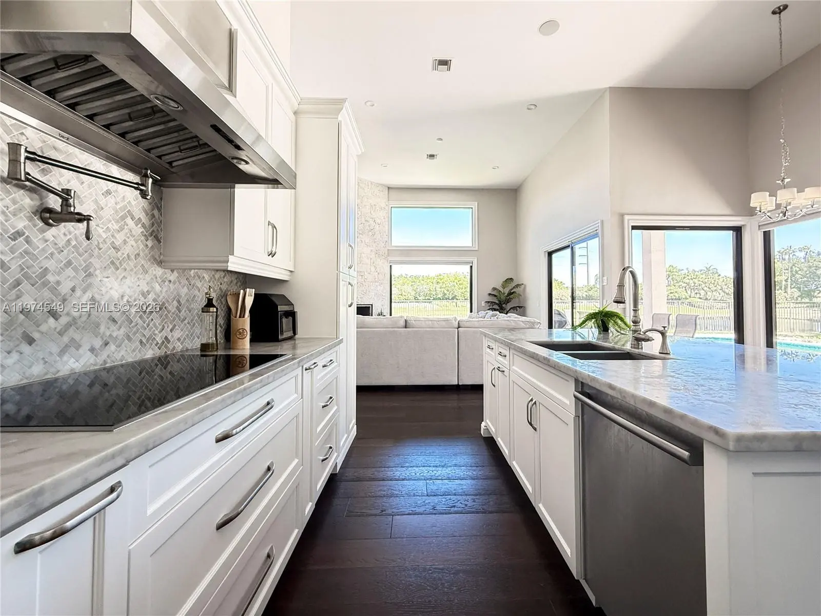 Experience luxury living at its finest in this exquisite lakefront/pool, located in the guard-gated community of Palm Island. Circular driveway + stunning 8ft mahogany front door. 6 BD+den, 4.2 baths, impact windows, 15 ft flat ceilings and wide plank wood flooring. Contemporary kitchen with Carrera marble island and high-end appliances: Subzero fridge, dishwasher, induction cooktop with a pot filler & double ovens. Wet bar. Fireplace A dream primary suite: sitting area, custom walk-in closets, renovated bathroom. 2 en-suites bedrooms. Expansive fenced yard with pool and detached cabana bath. The perfect outdoor retreat for relaxation and entertaining. Privacy in stunning lakefront location. This home blends luxury, comfort, and near parks, shopping, sports, and A+ schools Cypress Bay HS