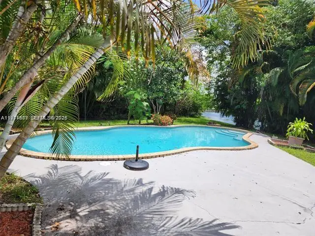 Tastefully updated 3 bed/2 bath WATERFRONT (188') single family w/ POOL & GARAGE on 0.33 acres. BRAND NEW ROOF! POOL has been resurfaced, NEW PUMP, NEW POOL PLUMBING. Over 2000 sf w/ great floor-plan, freshly painted inside & outside, new kitchen cabinets, new appliances, durable water resistant vinyl floors throughout. A/C is 8 years old (serviced). The enclosed patio is overlooking the water, garden & pool. The waterfront lot is pie shaped, larger than average in the area & fully fenced in. 1 car garage & plenty of parking in the driveway. Excellent area, convenient to major shopping, restaurants, hospitals & highways. Serene & pet-friendly neighborhood. Quiet community w/ tennis & basketball courts, communal pool, playgrounds for children! HOA doesn't require approval.