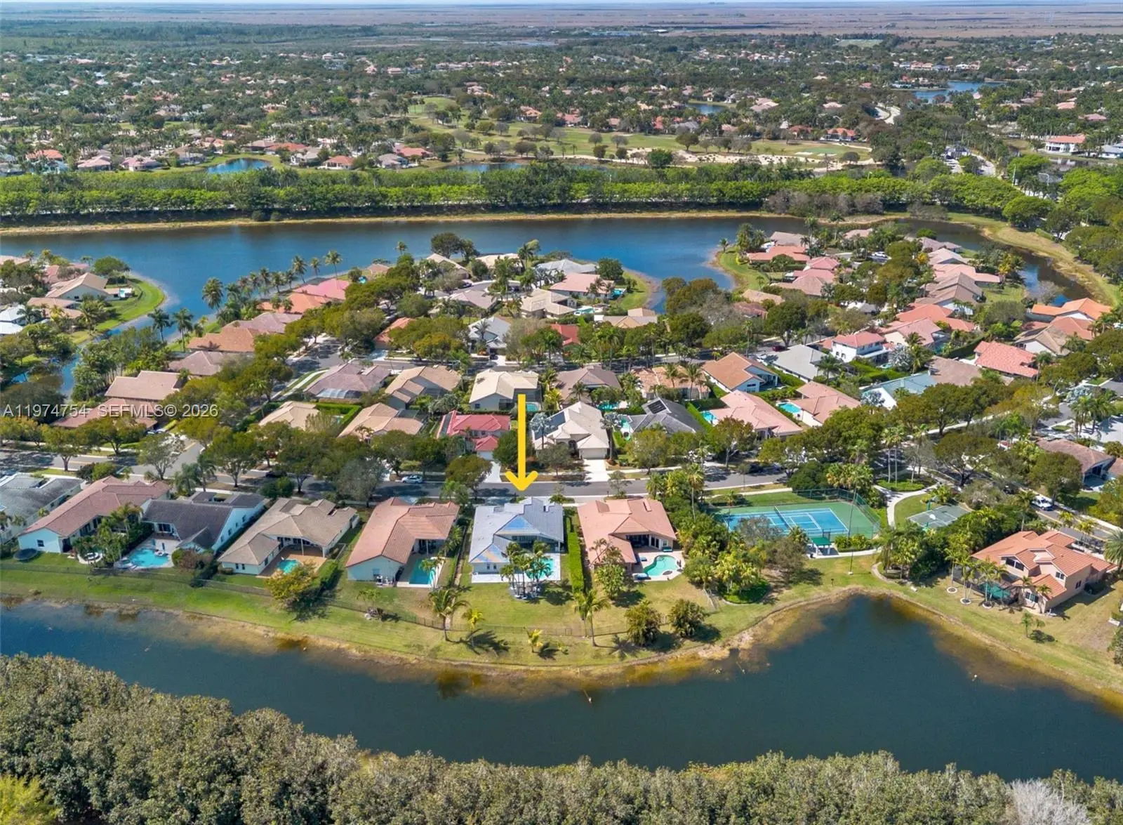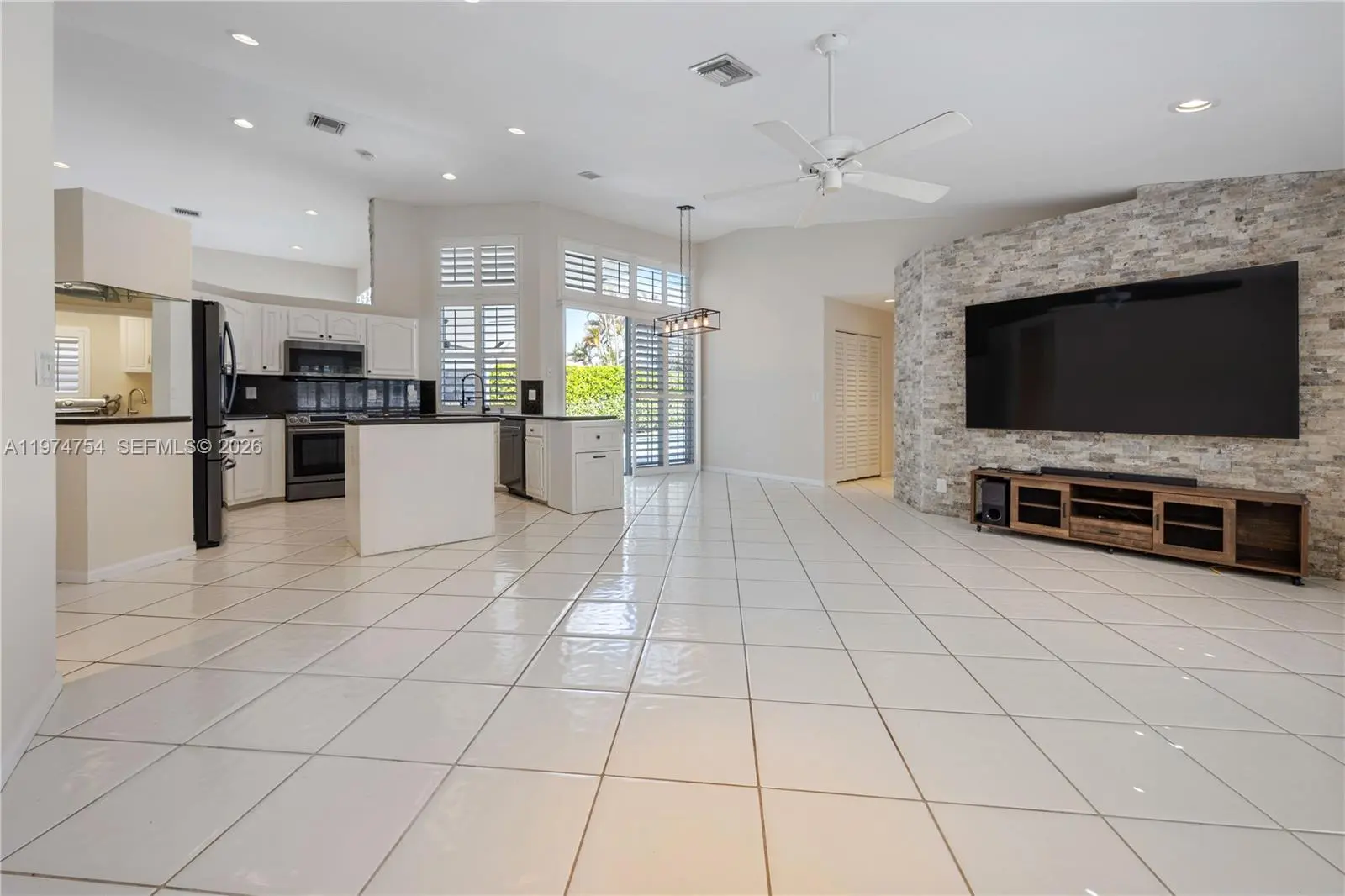 Wonderful waterfront home in Weston on Orchid Island, with parks, bikeways and tennis courts. This terrific one-story home is light-filled, with water views from a large patio featuring a 48" TV and a built-in BBQ for outdoor entertaining and swimming. The backyard water view overlooks a park on the opposite side, completing a beautiful verdant, and private backyard oasis. It has a split bedroom, floor plan; the primary bedroom is separate from the additional three bedrooms, one of which is built out as an office with a Murphy bed. A central, pristine kitchen opens to both the patio/pool and the family room, which has its own 84" TV. A wonderful neighborhood park is at the end of the block. A-rated pubic and private schools. Available immediately.