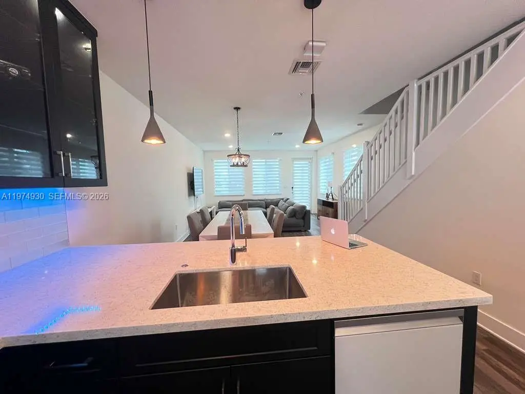 Step into modern comfort in this beautifully fully furnished and upgraded three-bedroom, two-and-a-half-bathroom corner unit situated within the highly desirable Landmark at Doral community. This completely furnished spacious two-story residence boasts an open-concept layout, abundant natural light, high ceilings, and contemporary finishes throughout. The gourmet kitchen features European-style cabinetry, quartz countertops, stainless steel appliances, and a spacious counter ideal for cooking and entertaining. Upstairs, the primary suite includes a generous walk-in closet and a large bathroom with dual sinks and a glass-enclosed shower. Two additional bedrooms provide flexibility for family, guests, or a home office.Enjoy the convenience of in-unit laundry, impact windows, and a private balcony, along with assigned parking conveniently located at your doorstep. Residents of Landmark have access to a state-of-the-art clubhouse, resort-style pool, fitness center, tennis courts, and more. Situated minutes from top-rated schools, shopping, dining, major highways, and the vibrant Doral lifestyle.Available for immediate move-in. Experience comfort, style, and convenience in one of Doral’s premier communities.