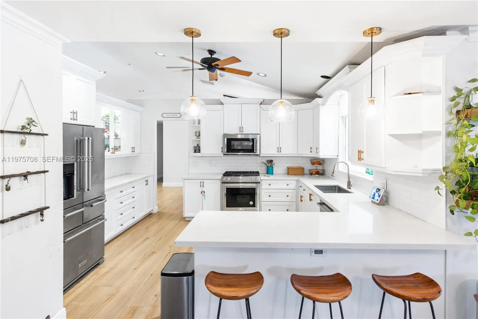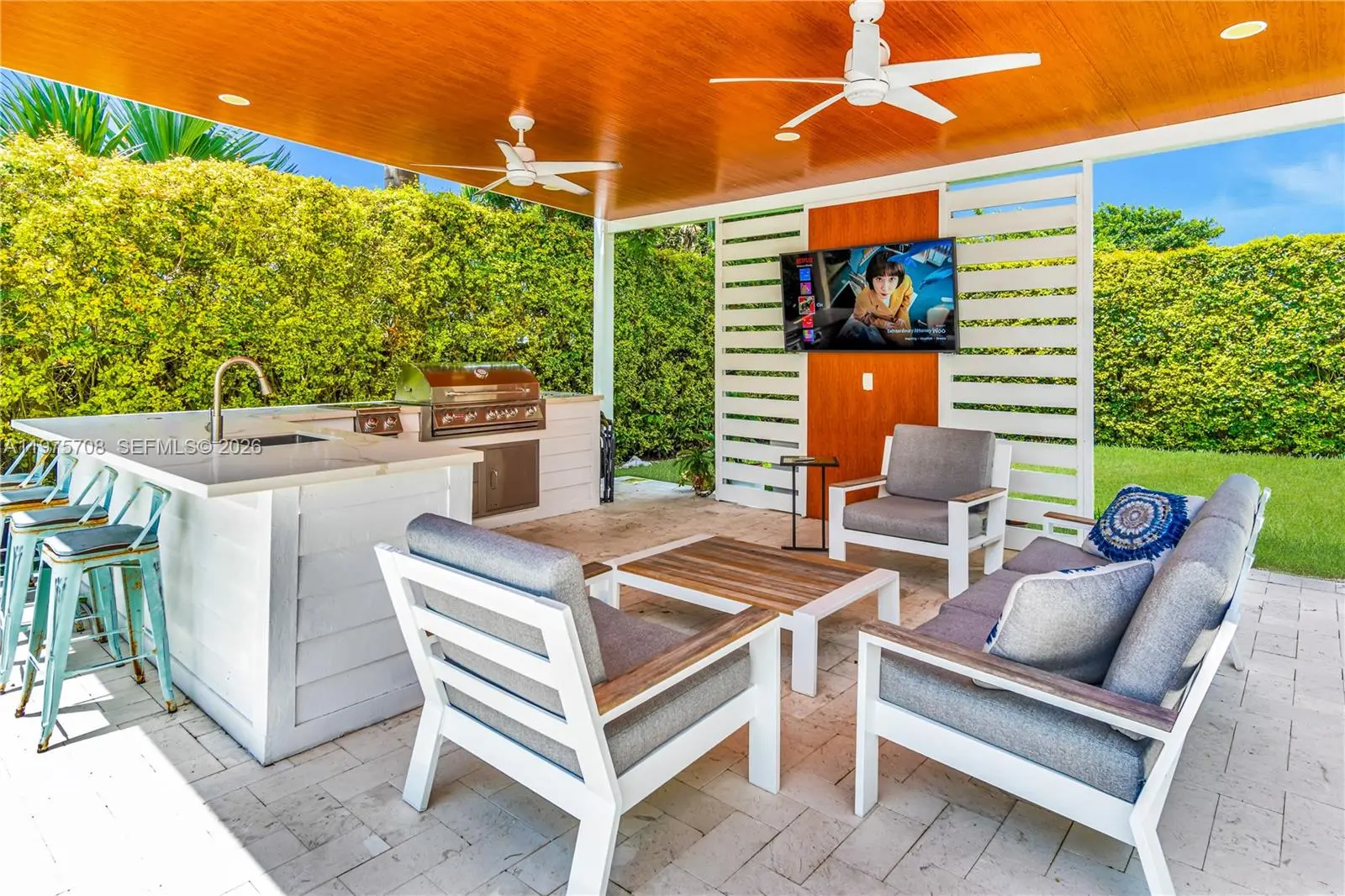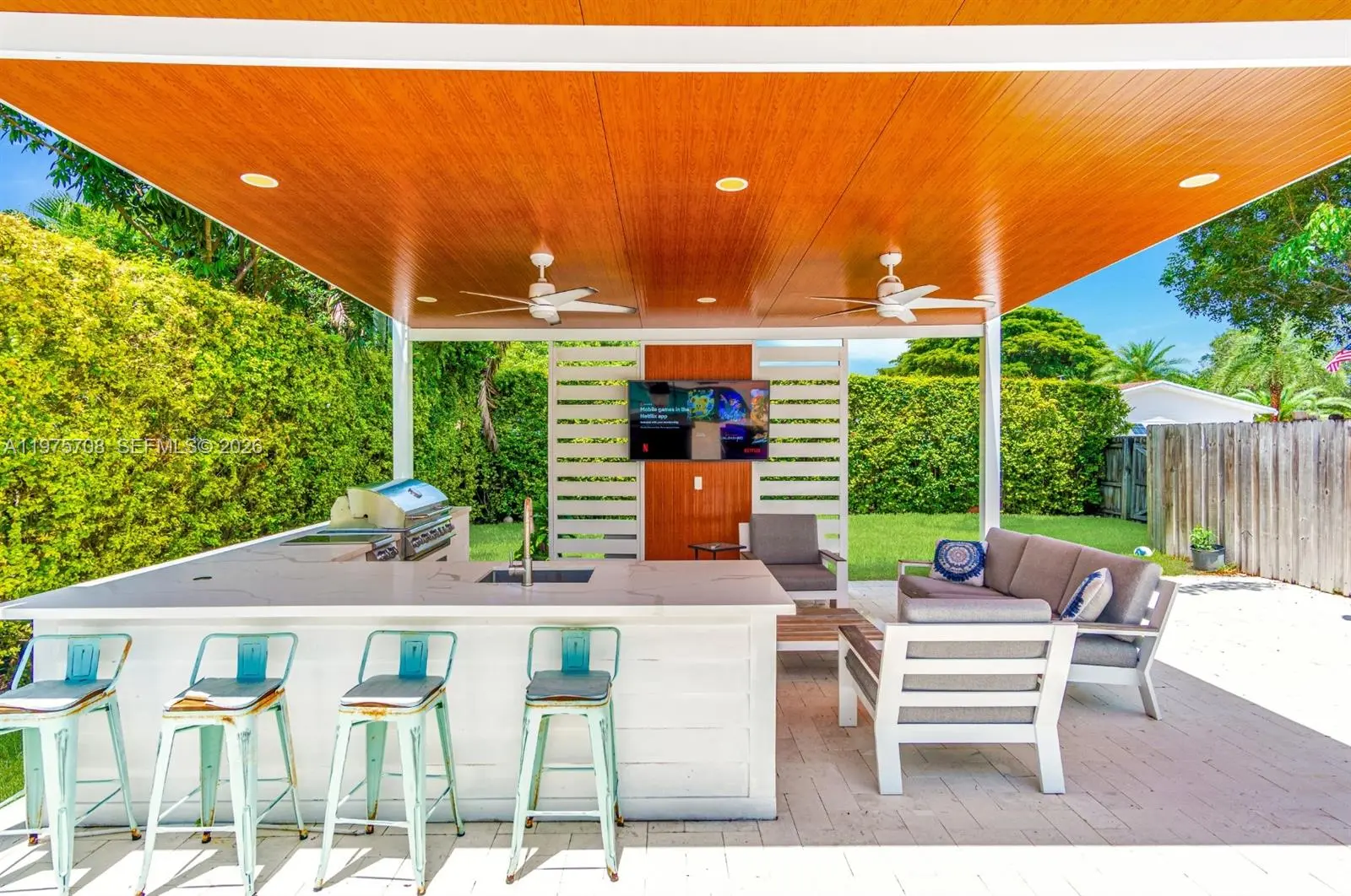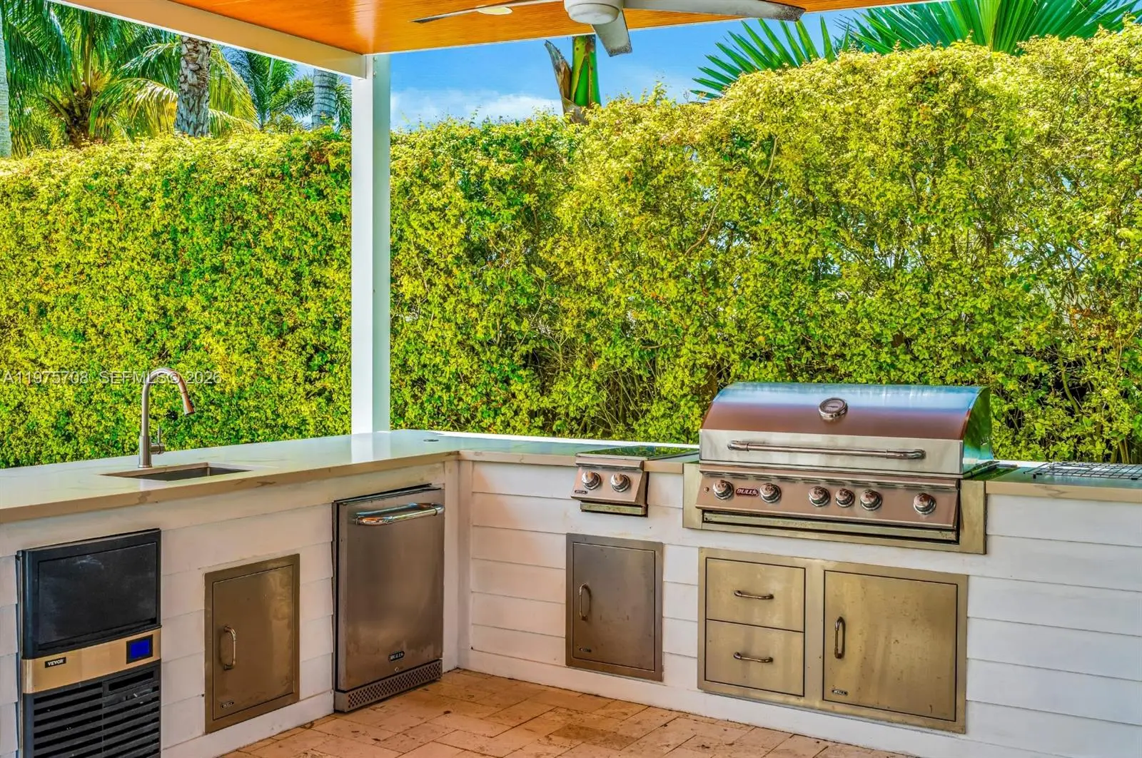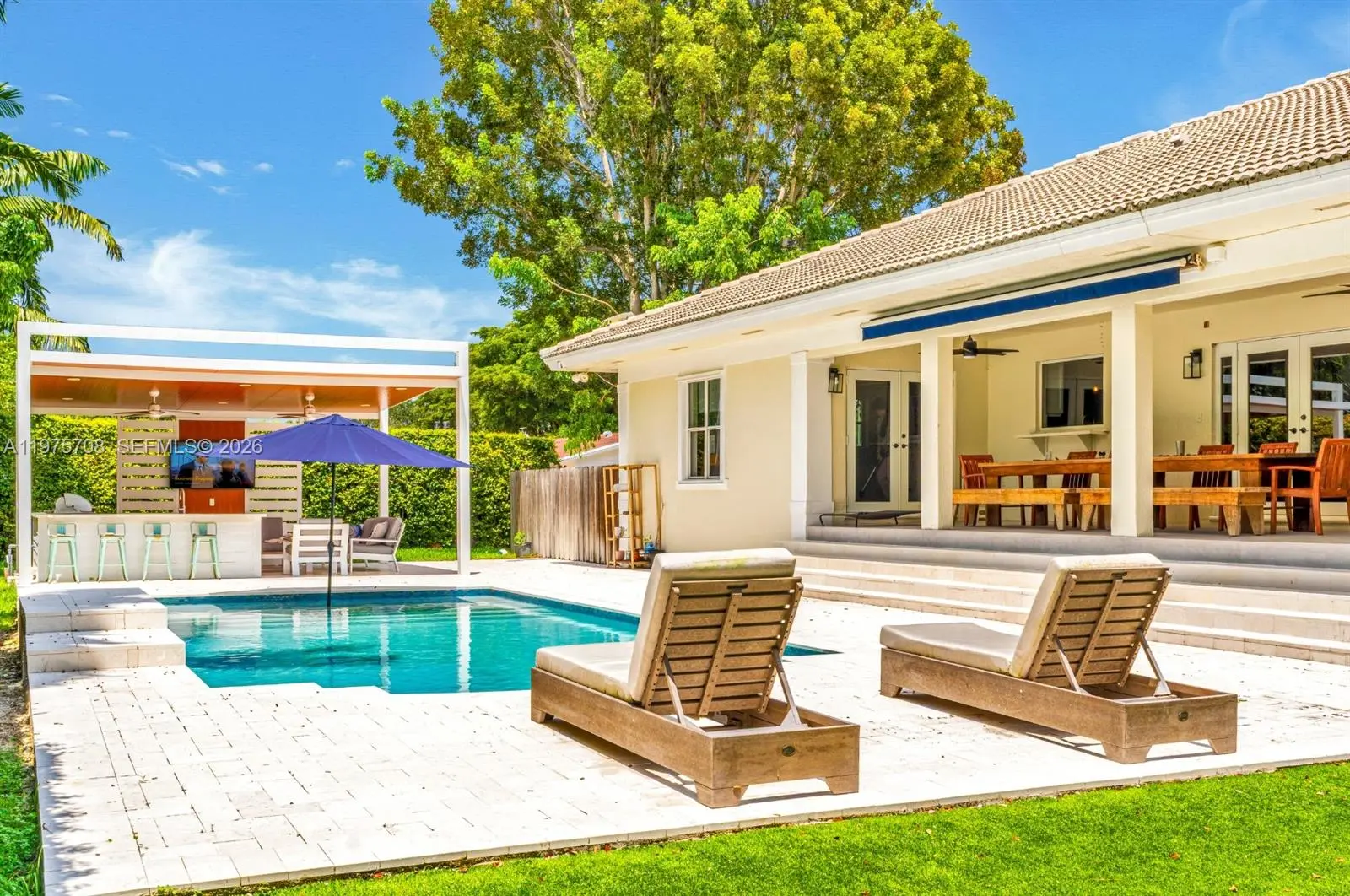 This gorgeous home will impress you at every corner. Walk into vaulted ceilings and beautifully updated living spaces. Impact windows and French doors lead you out onto an incredible covered patio area and steps away from a separate gazebo lounge fully equipped with a summer kitchen. You will love spending your days at this incredible property offering an estate sized lot with plenty of room for all of your grown up toys like boats and RVs, oh my. The spacious kitchen features plentiful cabinetry and quartz stone countertops. There are many incredible features like a separate laundry room, a cabana bath, both a primary and junior en-suite, walk in closets, built-ins & more. This is everything you have been dreaming about with an abundance of natural light and lush vegetation. Call today!