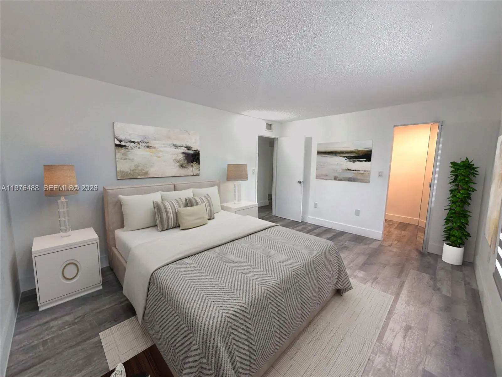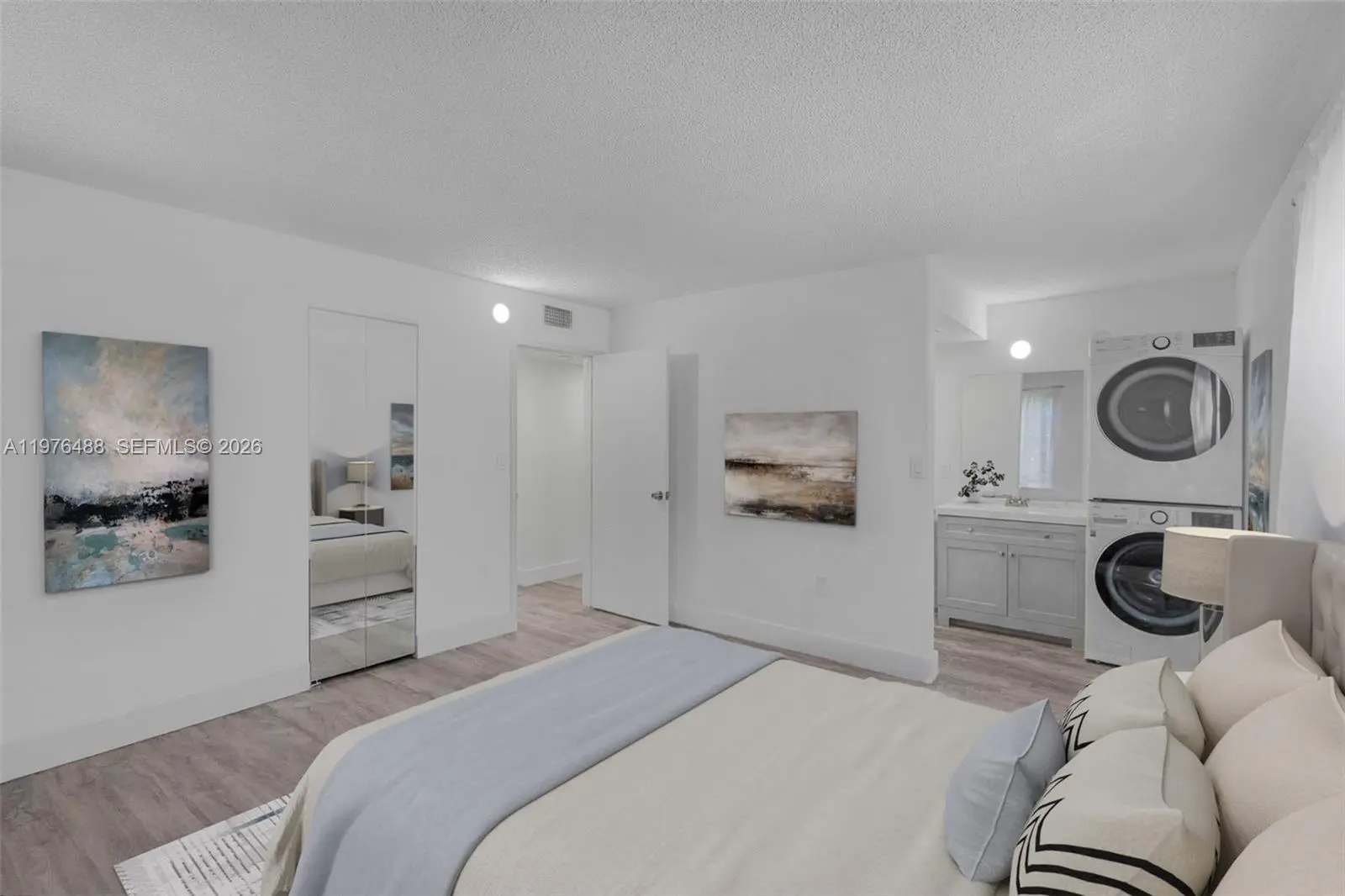 Amazing spacious corner unit with balcony, washer dryer inside unit, completely remodeled, ac is only a few years old, staircase and trash chute is in front of unit for quick immediate access, centrally located next to Publix, Universities, and City Hall, Condo association has just updated all hallways and exterior of the building, only one of its Kind. 2 assigned parking spaces and lots of guest parking. This is the most convenient unit in the market.