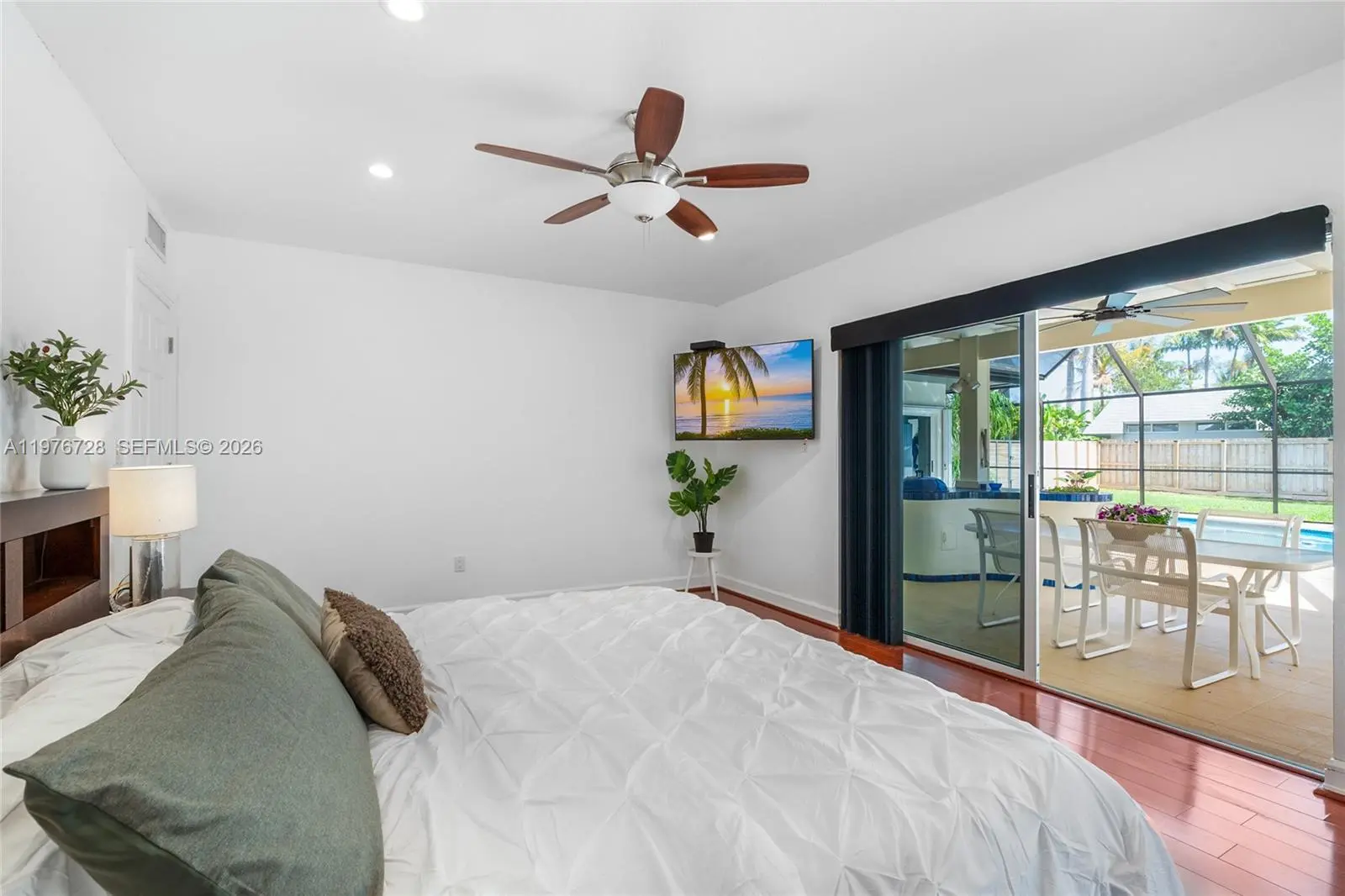 Spacious 3-bed plus flex space and 2-bath home in beautiful Whispering Pines. Enjoy a formal living room with a wood-burning fireplace and dining room, both over looking the gorgeous pool and spa. The screened patio offers year round enjoyment with a built in charcoal grill and cabana bath. Live just minutes from Black Point Marina and top-rated public, private, and charter schools.