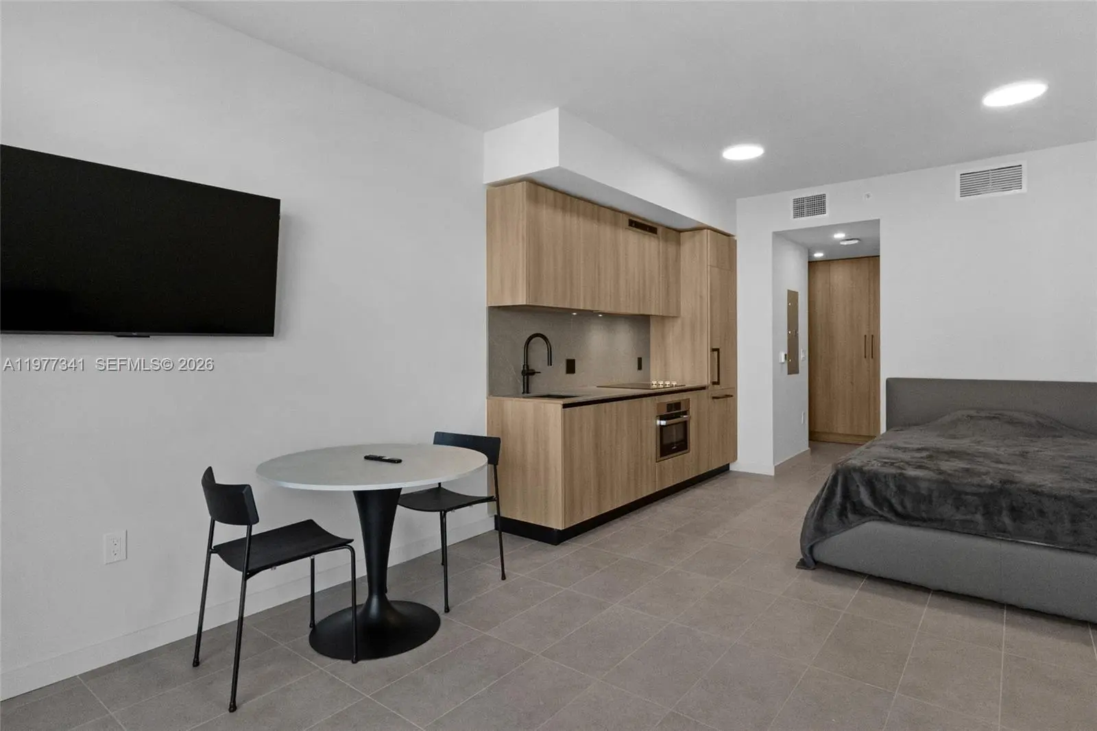 Brand new studio at 501 First Residence Condominium in Downtown Miami. Unit 1500 offers 458 SF with floor to ceiling impact windows, private balcony and stunning 180 ` ocean city views . Fully furnished with brand new bed , mattress, desk, stools and sofa -Trunkey and ready for immediate rental income. Luxury amenities include a rooftop pool (40th floor) sunrise & sunset lounge (38th Floor) fitness center , coworking spaces and party room . Near Metro mover, Miami World Center , Brightline Station, Bayfront Park and entertainment. Prime opportunity in Maimi's high - demand short-term rental market.