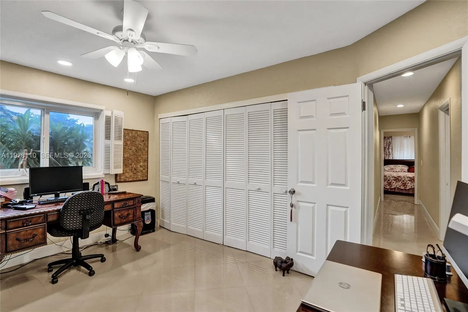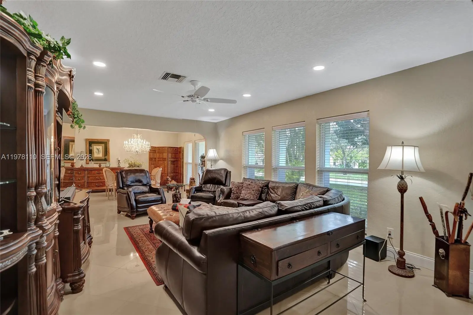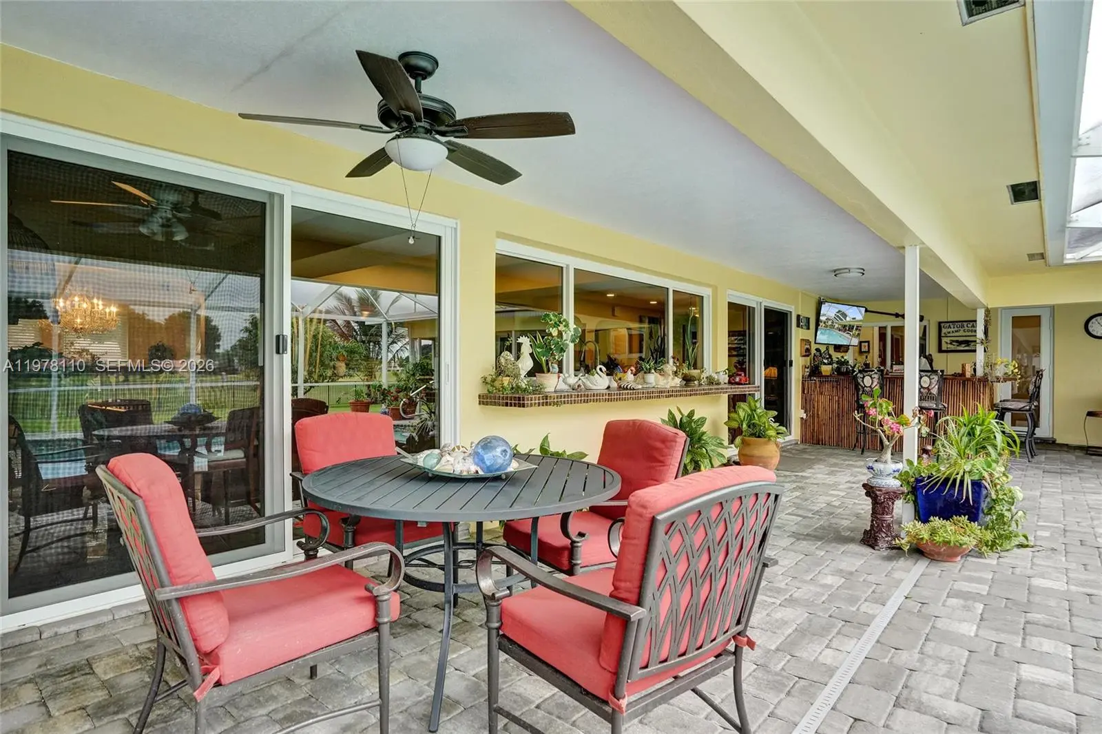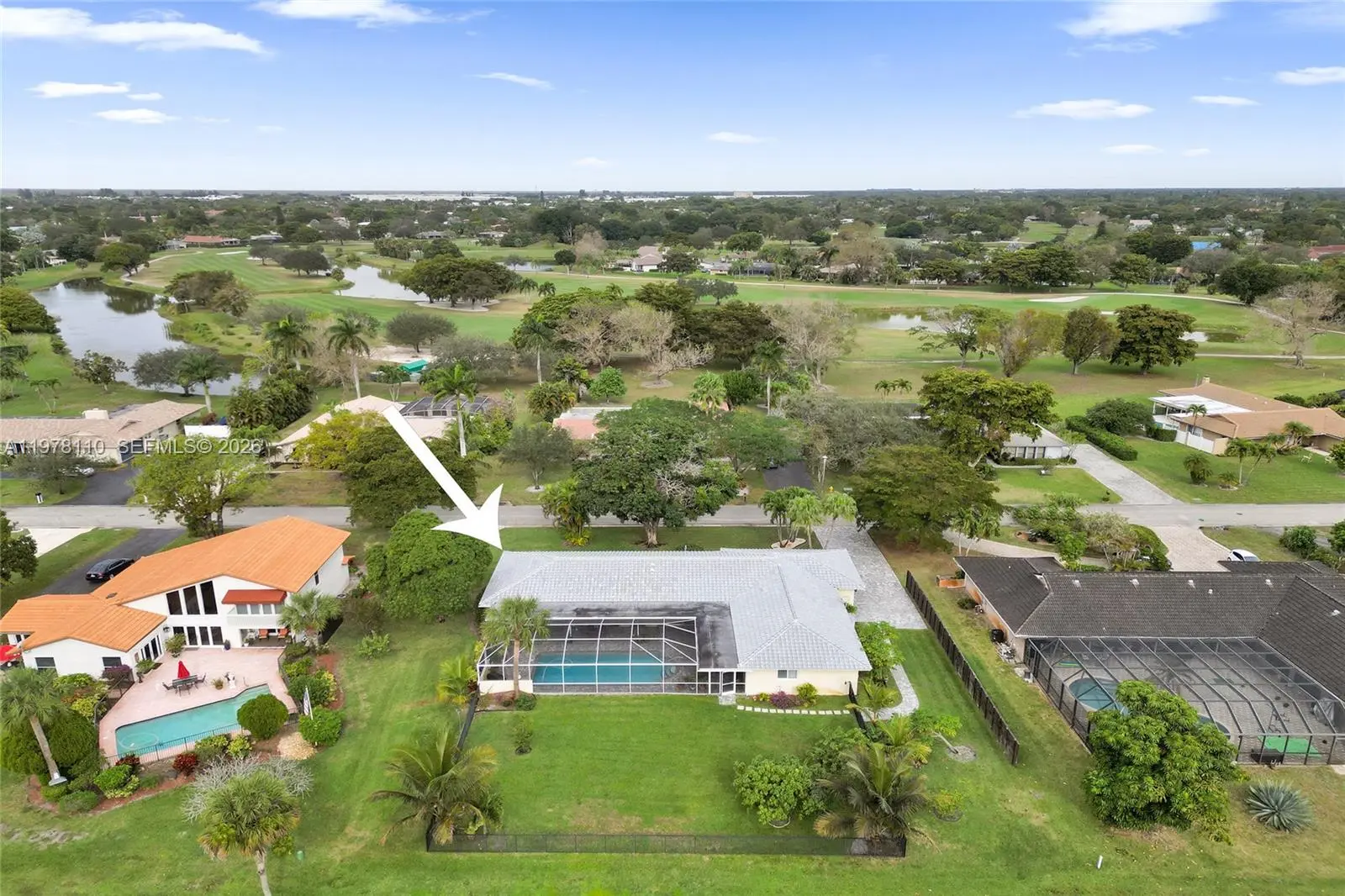 Experience ultimate peace of mind in this 100 percent renovated 4 bedroom 3 bathroom residence spanning 2994 square feet on a sprawling half acre lot with expansive golf course views. This home was meticulously updated from top to bottom with no detail overlooked. Brand new concrete tile roof installed in 2025. Modern rectified porcelain flooring throughout. Gourmet custom kitchen cabinets with upgraded granite countertops and high end appliances. All three bathrooms fully and stylishly renovated. Sparkling pool resurfaced with new tile and upgraded equipment. Elegant new paver driveway and backyard patio. High efficiency dual zone air conditioning systems. Complete impact windows and doors including the garage door. Professional epoxy garage floor coating. Every single switch outlet baseboard fan and fixture replaced. Lush mature fruit orchard with papaya mango avocado and banana trees. Premium iron fencing for security and style. All major updates and high end finishes were completed between 2022 and 2026 to ensure a modern and reliable home. This property represents a rare opportunity to own a fully modernized estate where every major component is nearly new. Enjoy the perfect blend of luxury and functionality in a serene setting. This is truly a move in ready masterpiece ready for the most discerning buyer.