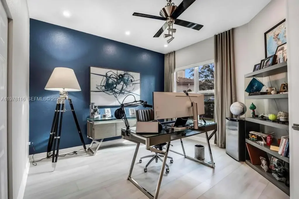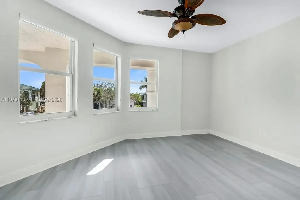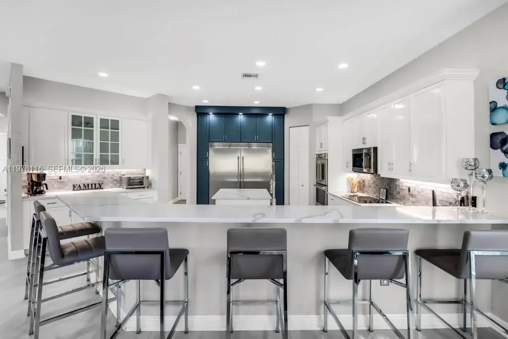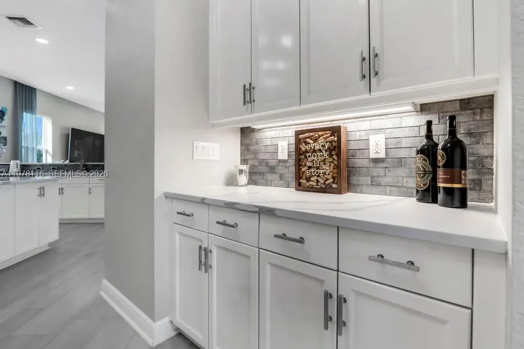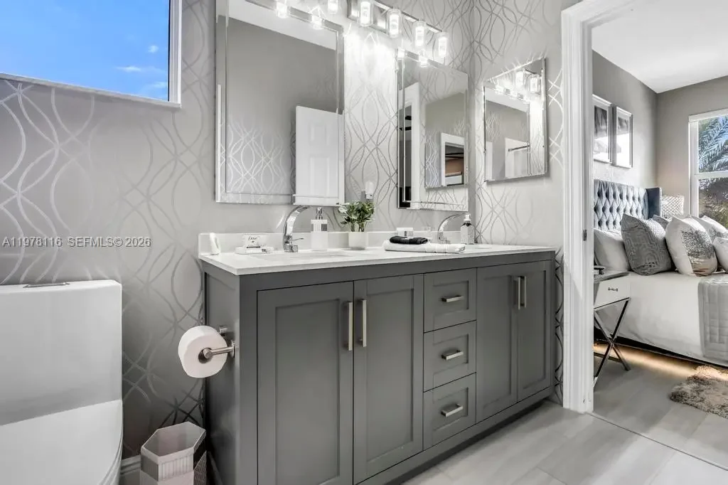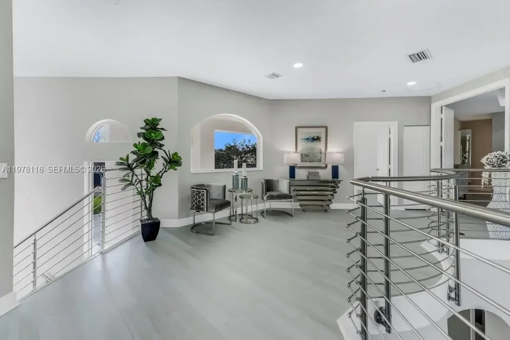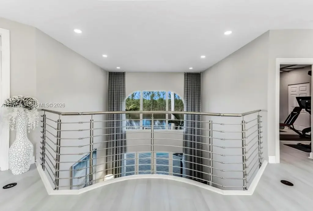 Fully remodeled Sonoma model from top to bottom, this extraordinary residence shows like a designer model home and offers an elevated living experience. High-end finishes and timeless design, including a brand new metal roof, newer AC systems, hurricane impact windows and doors, & a full-house generator for comfort and peace of mind. Oversized circular driveway finished with marble pavers, set on an expansive lot with fresh exterior paint and beautiful curb appeal. Step inside to a bright interior featuring brand new flooring throughout, soaring ceilings, and an abundance of natural light. Custom designer window drapes and treatments add a refined touch, complemented by modern lighting fixtures and fresh interior paint. The chef’s kitchen is a true showpiece, featuring luxurious marble countertops, top-of-the-line appliances, custom cabinetry, and an open layout overlooking the main living areas perfect for entertaining. Upstairs, a bright sitting area welcomes you with natural light, while the oversized primary suite offers a private balcony with beautiful pool and tranquil lake views. Additional guest bedrooms are generously sized and share an updated Jack-and-Jill bathroom. The garage features a custom golf simulator, and the home is fully integrated as a smart home allowing control directly from your phone. Step outside to a peaceful backyard retreat with a sparkling pool, serene lake views, and lush surroundings—creating the perfect setting for relaxing or entertaining.