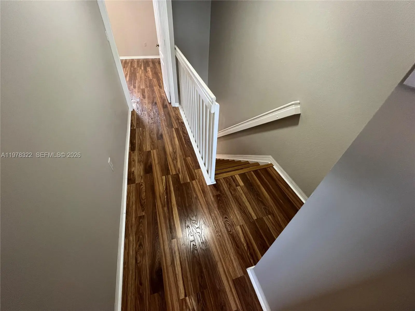 WELCOME TO THIS BEAUTIFULLY MAINTAINED TOWNHOME NESTLED WITHIN AN INTIMATE GATED COMMUNITY OF JUST 77 HOMES, OFFERING PRIVACY, SECURITY, AND A TRUE NEIGHBORHOOD FEEL. STEP THROUGH THE COVERED ENTRYWAY INTO A WELCOMING FOYER THAT FLOWS INTO THE HEART OF THE HOME, WHERE THE KITCHEN BOASTS CRISP WHITE CABINETRY, GENEROUS STORAGE, STAINLESS STEEL APPLIANCES, A LARGE PANTRY CLOSET, AND A CONVENIENT LAUNDRY CLOSET WITH A STACKED WASHER AND DRYER. A PASS-THROUGH COUNTER WITH ROOM FOR BARSTOOLS CREATES THE PERFECT CASUAL DINING SPOT, WHILE THE ADJACENT DINING AREA IS ELEVATED BY A STUNNING OVERHEAD LIGHT FIXTURE. THE SPACIOUS FAMILY ROOM IS BRIGHT AND INVITING WITH DIRECT ACCESS TO AN OVERSIZED PRIVATE FENCED PATIO, IDEAL FOR RELAXING OR ENTERTAINING — HURRICANE SHUTTERS ARE STORED ON-SITE FOR ADDED PEACE OF MIND. A HALF BATHROOM ON THE MAIN LEVEL ADDS CONVENIENCE FOR GUESTS. UPSTAIRS, A SPLIT-BEDROOM LAYOUT OFFERS PRIVACY FOR ALL. THE PRIMARY SUITE FEATURES A LARGE CLOSET AND A MODERN EN-SUITE BATH WITH A SHOWER/TUB COMBINATION, GRAY SHAKER CABINETRY, AND A WHITE QUARTZ COUNTERTOP. THE SECOND BEDROOM IS EQUALLY SPACIOUS WITH ITS OWN PRIVATE FULL BATHROOM AND SIMILAR UPSCALE FINISHES. DON'T MISS THIS WONDERFUL OPPORTUNITY — SCHEDULE YOUR SHOWING TODAY!