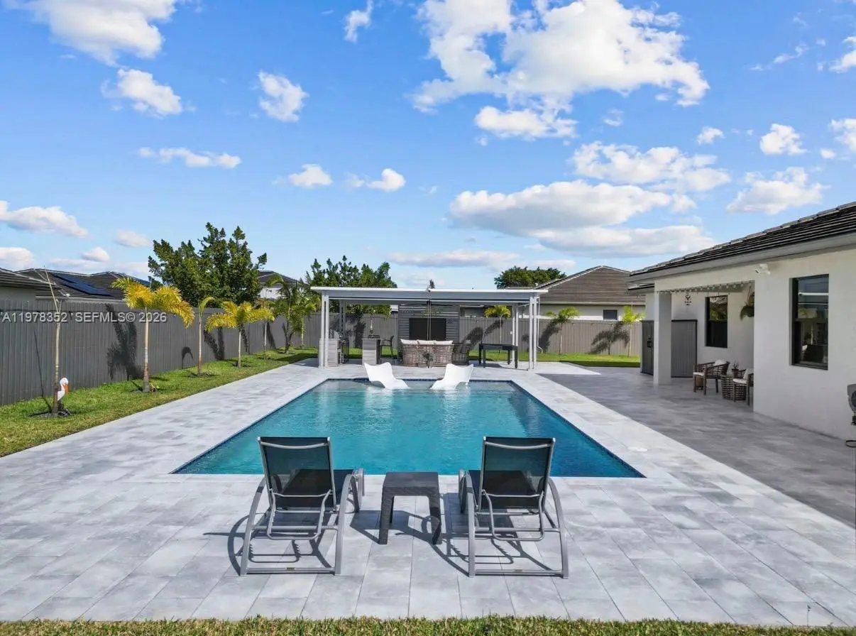 EXPERIENCE REFINED LUXURY IN THIS ELEGANTLY UPGRADED LENNAR EXECUTIVE HOME RESIDENCE, IDEALLY SITUATED ON AN EXPANSIVE 13,109 SQ. FT. LOT BUILT IN 2022. THIS STUNNING ONE-STORY 3-BEDROOM, 2.5 BATH POOL HOME WITH A TWO-CAR GARAGE SHOWCASES SOPHISTICATED, RESORT-STYLE LIVING WITH OVER $400K IN PREMIUM UPGRADES. HIGHLIGHTS INCLUDE A WHOLE-HOME WATER PURIFICATION SYSTEM, FULL ALUMINUM FENCING WITH DESIGNER GATES, FULLY AUTOMATED ELECTRICAL SYSTEM, LANDSCAPE LIGHTING, RING SECURITY CAMERAS WITH FLOOD LIGHTS, AND IMPACT WINDOWS AND DOORS WITH ENHANCED THICKNESS THROUGHOUT. INTERIOR FEATURES INCLUDE NEW PORCELAIN FLOORING, WOOD LAMINATE IN BEDROOMS, QUARTZ WATERFALL COUNTERTOPS, CUSTOM BUILT IN WALKING CLOSET AND DESIGNER LIGHTING. THE OUTDOOR SPACE IS DESIGNED FOR ENTERTAINMENT AND FAMILY ENJOYMENT, FEATURING A CUSTOM SALTWATER POOL WITH BEACH ENTRY, EXPANSIVE POOL DECK, AND A COVERED PERGOLA WITH SUMMER KITCHEN AND HIGHEND OUTDOOR APPLIANCES. ADDITIONAL UPGRADES INCLUDE AN IRRIGATION SYSTEM WITH PRIVATE WELL, EPOXY GARAGE FLOORS, AND A SEPARATE A/C UNIT ASSIGNED FOR THE GARAGE WITH CUSTOM BUILT IN CABINETRY. THIS ONE-OF-A-KIND, RARELY AVAILABLE TURNKEY PROPERTY DELIVERS THE PERFECT BLEND OF ELEGANCE, CONFORT, AND MODERN CONVENIENCE.