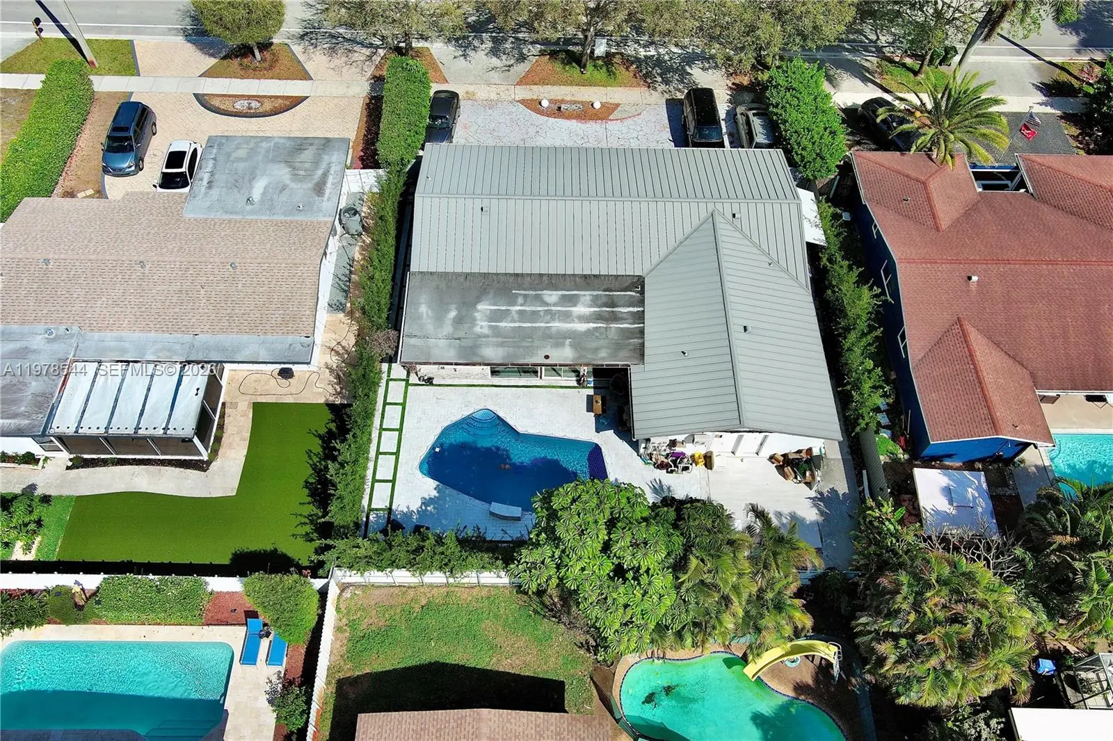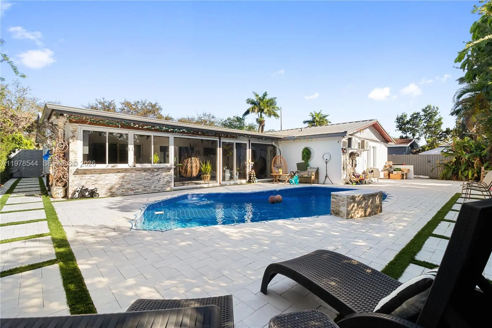 Experience elevated South Florida living in this beautifully renovated 5-bedroom, 4-bath residence with no HOA. Thoughtfully upgraded throughout, this home features a new roof, impact windows and doors, elegant flooring, and a modern designer kitchen with high-end finishes. The spacious layout offers multiple living areas ideal for everyday comfort, entertaining, or flexible use. Property includes designated areas well-suited for rental income or extended family living, providing excellent income-producing potential. Bathrooms are tastefully updated with a clean, contemporary feel. Step outside to your private backyard oasis featuring a saltwater pool with lower maintenance, and energy-efficient, perfect for relaxing or hosting. A circular driveway enhances curb appeal and parking. A move-in ready opportunity delivering lifestyle, versatility, and strong value.