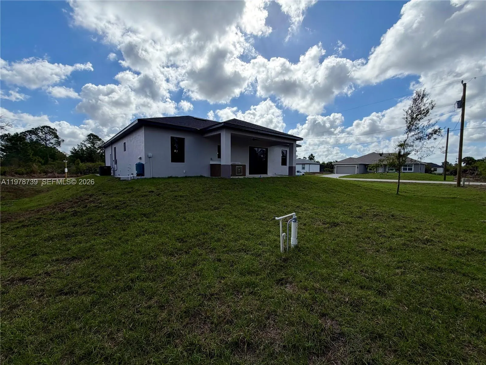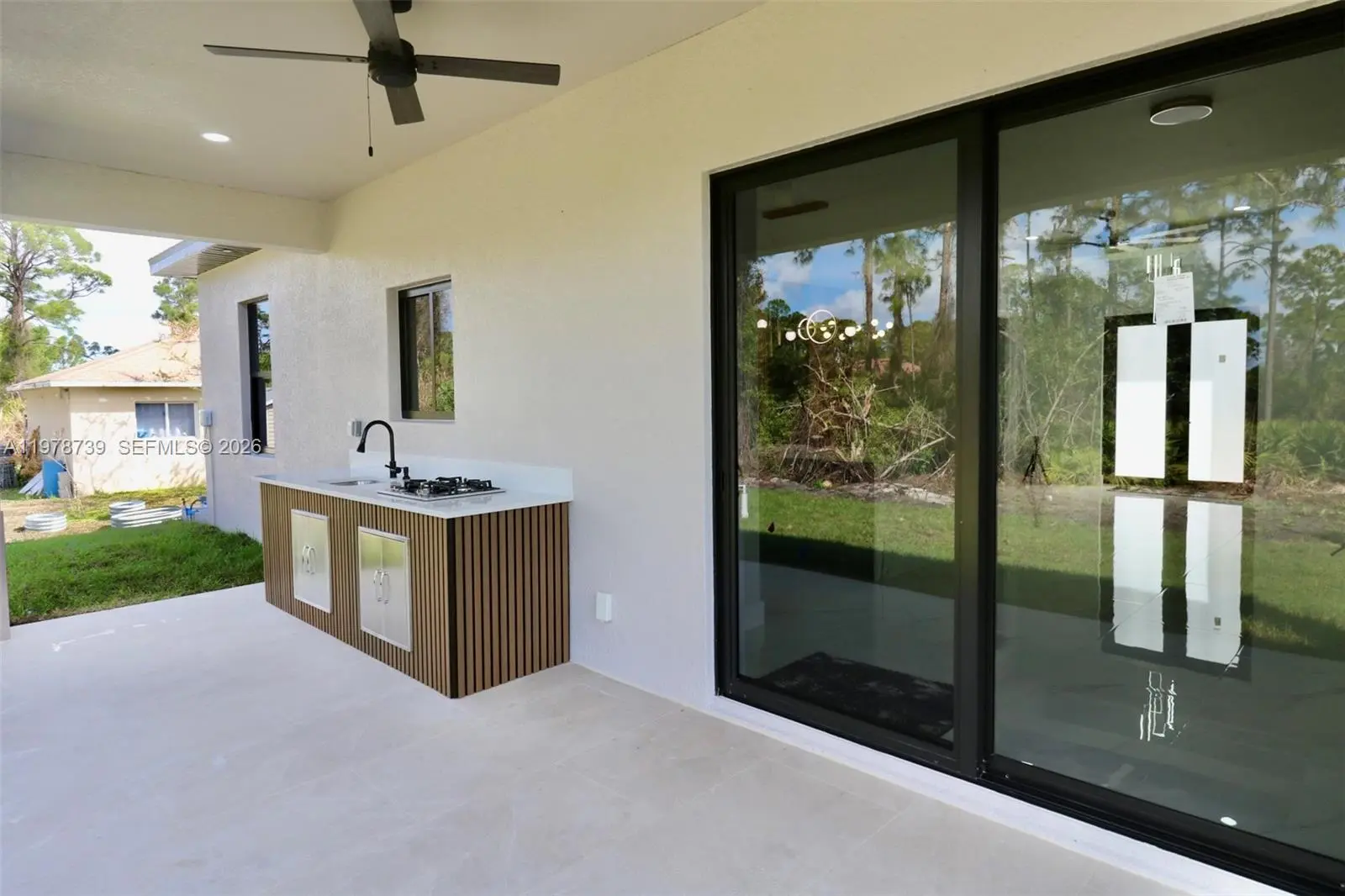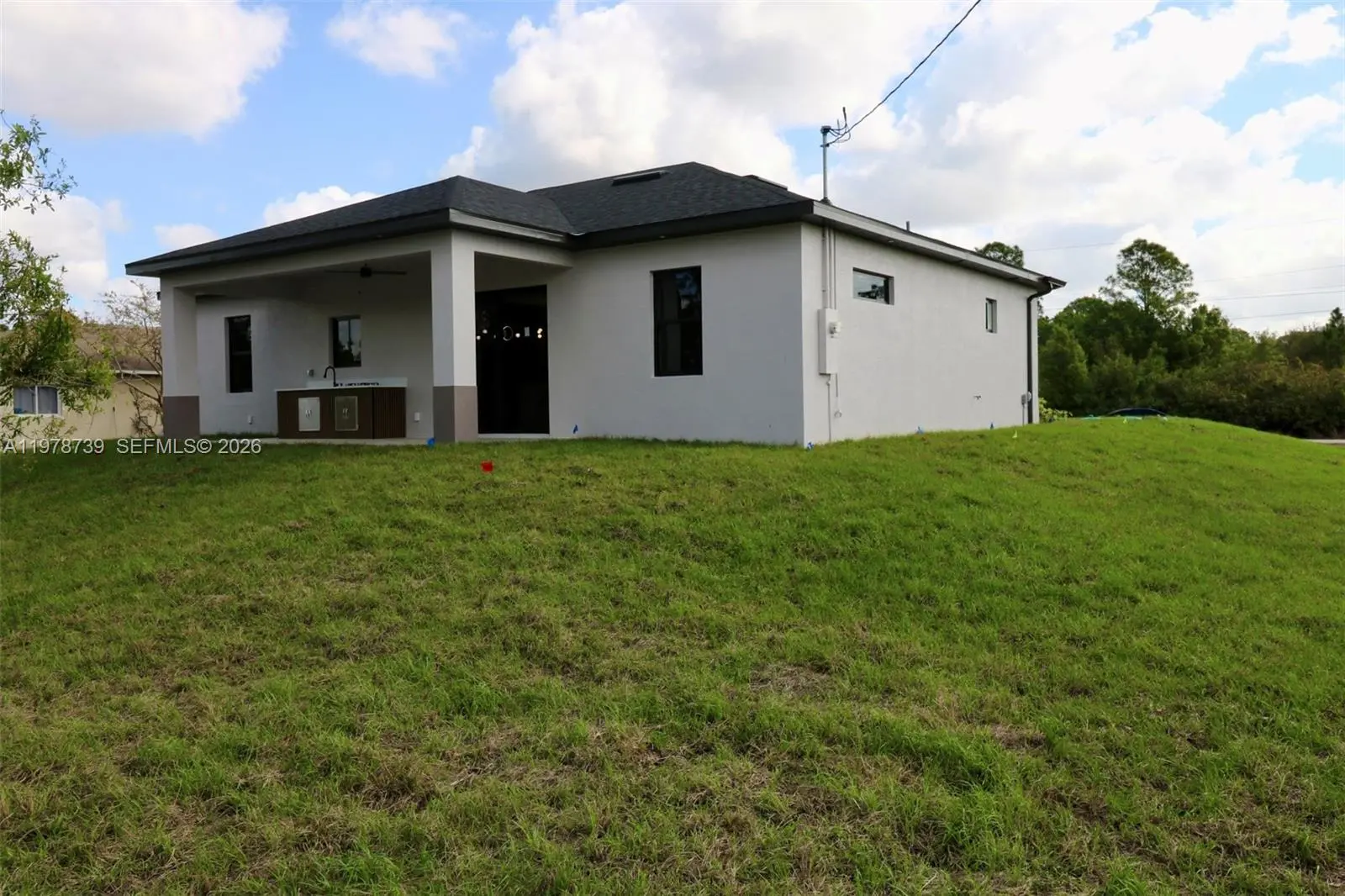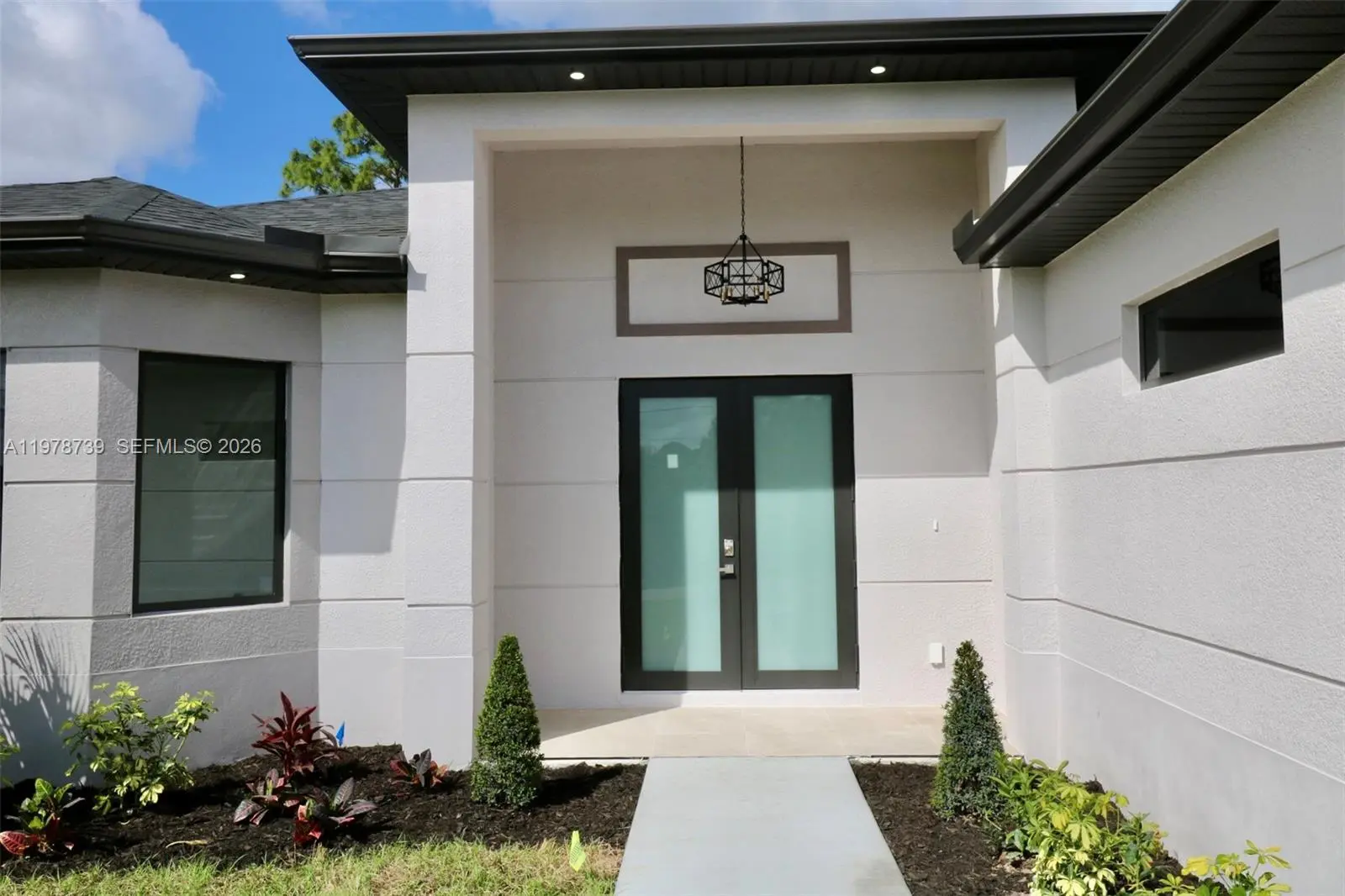 Brand-New construction offering a 4 bedroom and 2 bath placed over a 0.30 Acre CORNER LOT, features Attached 2 car garage, porcelain floors throughout the entire house, and large covered terrace. Big kitchen with countertops, new stainless steel appliances, abundant storage. Exterior light fixtures, and paved driveway. New and comfortable layout without losing the open concept style. Back Yard with plenty of space for a future pool and dual-entrance for your RV/motor home or boat parking. Great size Laundry room. Seller will provide to Buyer a BRAND NEW WASHER & DRYER. Great location! Close to SW Florida International Airport, supermarkets, schools, stores, hospitals, and mayor facilities, and just 8 minutes from State Road 82.