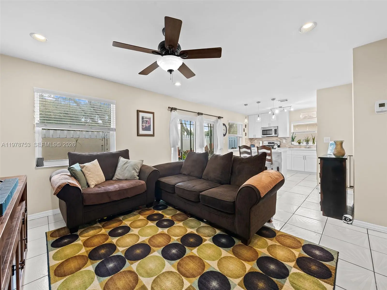 Welcome to this beautiful 3-bedroom, 2.5-bath home located in the desirable Residences of Sawgrass Mills, a well-maintained and perfectly situated community. The home greets you with a formal living room featuring soaring vaulted ceilings and an abundance of natural light from the many windows. The updated kitchen is designed for both style and function, offering an island, stainless steel appliances, and an open layout that flows seamlessly into the family room—perfect for everyday living and entertaining. All windows and doors are hurricane impact glass and are also equipped with additional accordion shutters for added peace of mind. Step outside to enjoy a spacious wraparound backyard featuring elegant travertine pavers throughout, creating a great space for relaxing or hosting gatherings. Major updates include an A/C system from September 2022, a water heater from April 2023, and a newer roof. The location is ideal, with a highly rated elementary school nearby and the incredible Flamingo Park just minutes away, offering soccer fields, tennis courts, baseball fields, basketball courts, and playgrounds for kids. This home combines comfort, updates, and an unbeatable location.