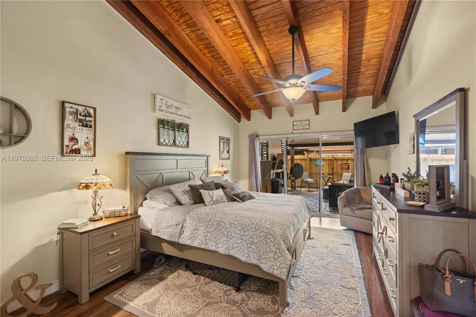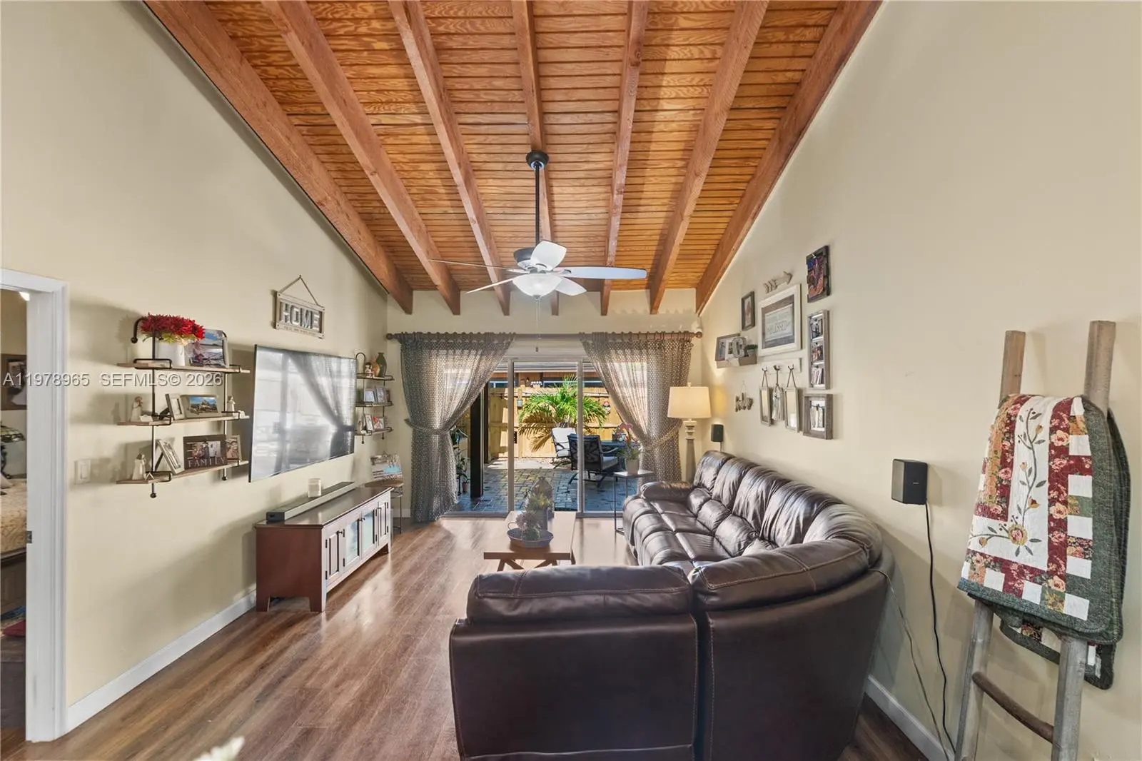 Beautifully updated 2-bedroom, 2-bath corner unit with an open floor plan and stunning vaulted cedar beam ceilings, located in the highly desirable Cedarwoods community of Pembroke Lakes. The home features craftsman-style kitchen cabinets, quartz countertops, stainless steel appliances, wall oven, glass cooktop, and a large pantry. Spacious bedrooms each offer large walk-in closets. Enjoy entertaining on the covered patio, plus the convenience of a storage shed and deeded parking. Located in an A-rated school district and just minutes from shopping, restaurants, parks, and only 20 minutes to Hollywood Beach. Pet-friendly community that borders a beautiful 40-acre lake with a scenic walking path. Just 5 minutes from Pembroke Lakes Golf & Country Club. A wonderful opportunity to live in one of Pembroke Lakes’ most sought-after neighborhoods!