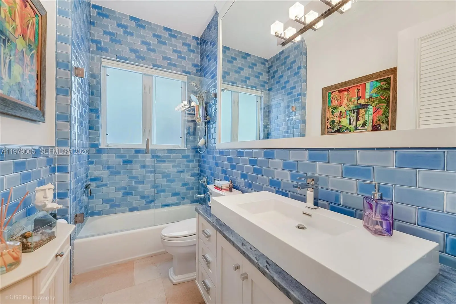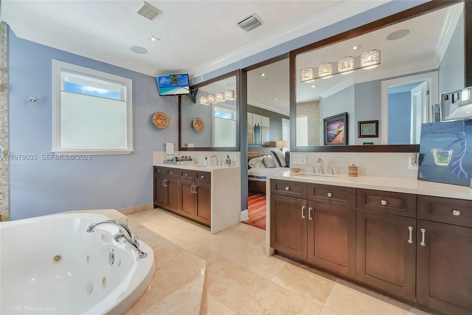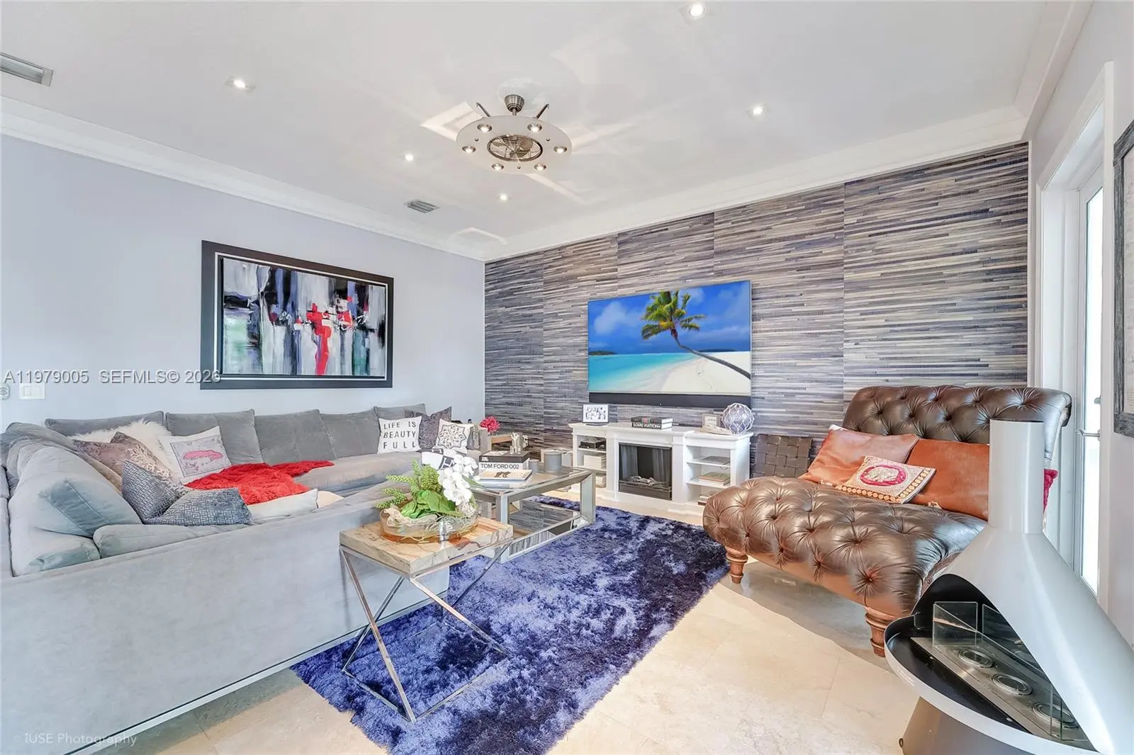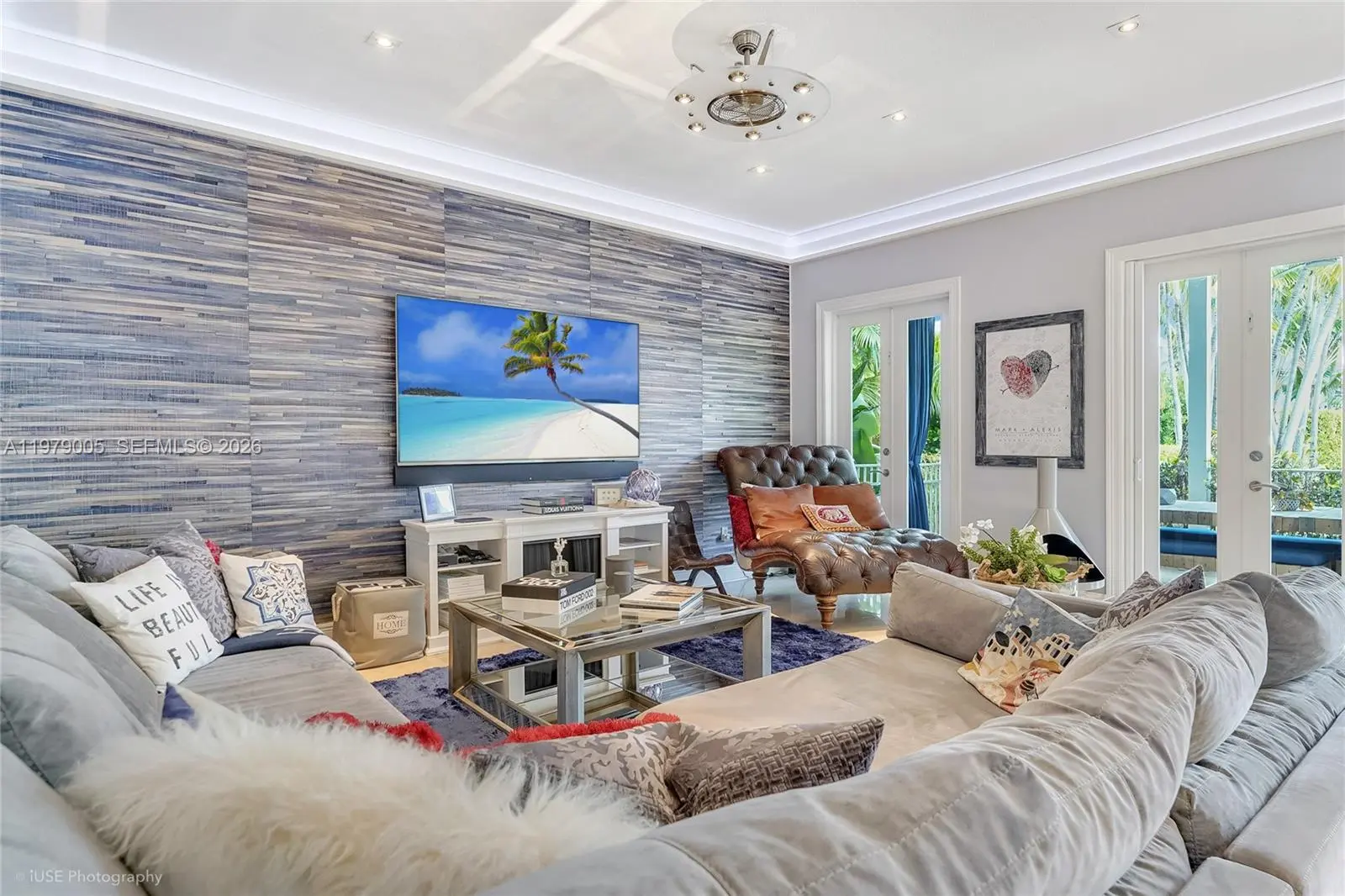 Renovated, elevated, and gated waterfront estate in guard-patrolled Belle Meade with direct bay access and no bridges. Set on a 17,350 SF lot, this 4-bedroom, 4-bath residence offers approximately 6,093 SF of total living space designed for both comfort and entertaining. A dramatic 7.5-foot pivot entry door opens to a striking 21-foot foyer and expansive interiors with 11-foot ceilings and refined modern finishes throughout. The custom Wolf and Sub-Zero kitchen features sleek cabinetry, premium appliances, and a spacious walk-in pantry, flowing seamlessly into living and entertaining areas with a stylish indoor-outdoor wet bar. Backlit marble accents add a distinctive design element. Outdoor spaces are designed for year-round enjoyment, highlighted by a heated 40' x 15' saltwater pool, gazebo with summer kitchen, and cabana bath. The waterfront setting includes an elevated seawall and private dock equipped with a boat lift and dual Jet Ski lifts, providing convenient access to Biscayne Bay. Additional features include a 10-car motor court, impact glass, Lutron lighting system, whole-house generator, two new 5-ton AC units, and 77 solar panels for enhanced energy efficiency. A full smart security system completes this thoughtfully upgraded waterfront residence.