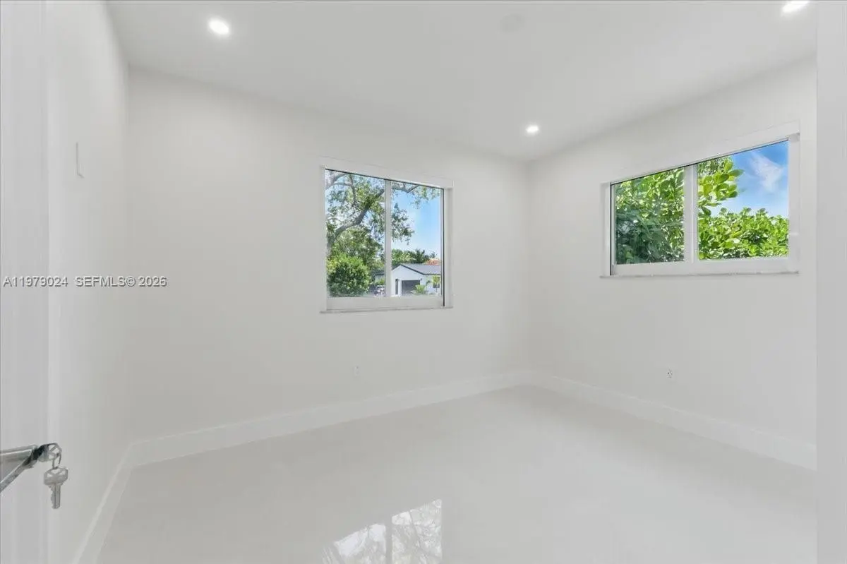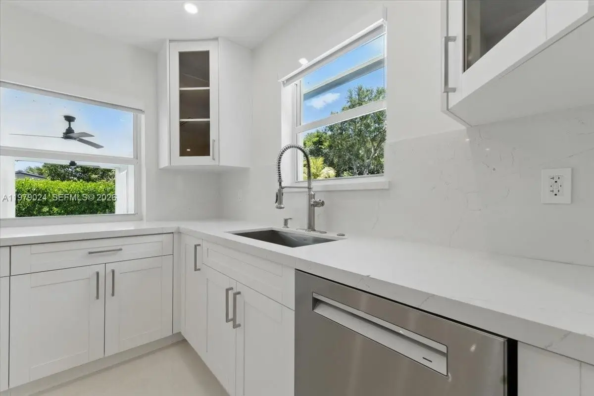 The perfect remodeled, modern 4 bedroom, 3 bath home located on a quiet cul-de-sac. Open living spaces. Updated kitchen with crisp white cabinets, quartz countertops. Spacious primary suite. Junior suite also has a private full bath. Plus two additional guest rooms. Custom closets throughout. Metal roof, impact windows/doors, ceramic tile flooring. Indoor laundry room. The perfect backyard to entertain or simply relax, with an oversized pool, covered patio, fire pit, and expansive lawn for kids or pets to roam. 2 car garage with AC and storage, plus space to park a boat. A+ schools, just down the street from Coral Reef Park!
