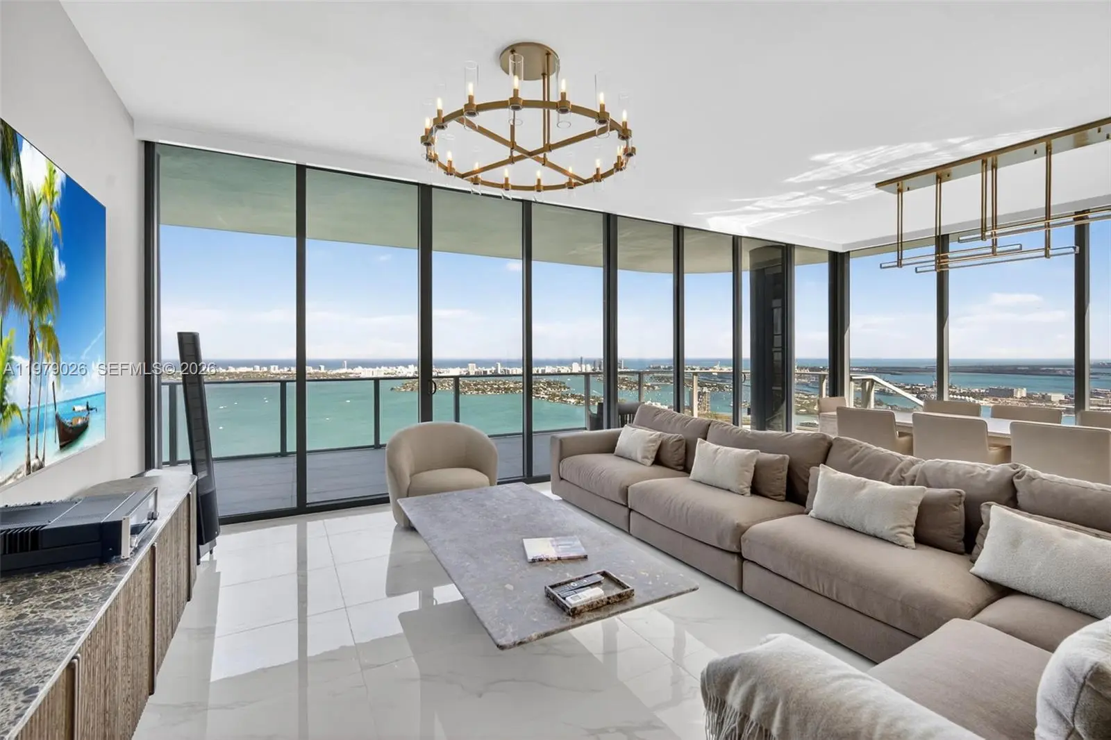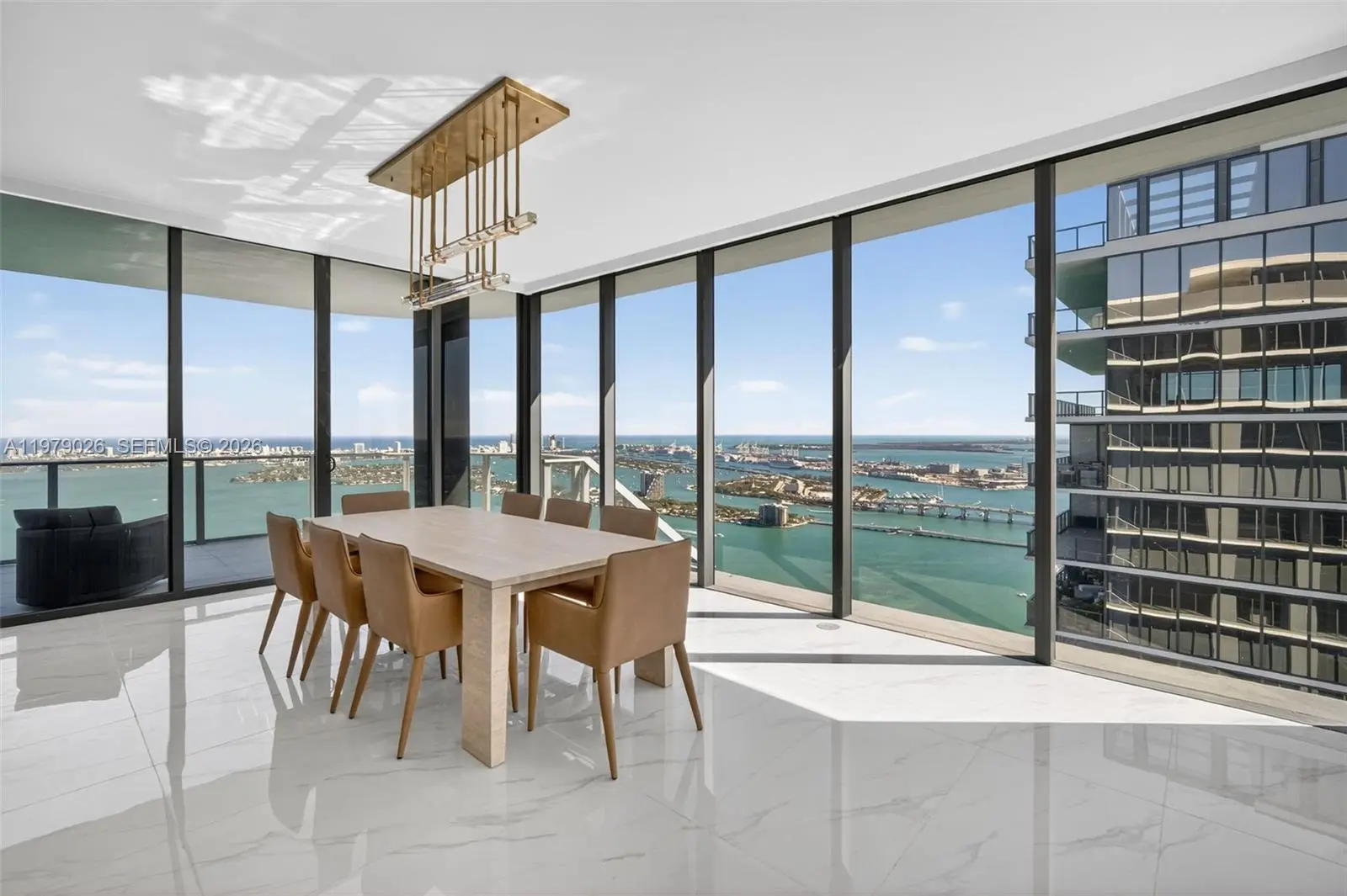 Stunning designer-furnished penthouse with breathtaking panoramic views of Biscayne Bay and the Miami skyline. This residence features floor-to-ceiling windows, soaring ceilings, and expansive terraces that create a seamless indoor-outdoor living experience. The home is beautifully appointed with high-end designer finishes, custom details, and premium furnishings throughout. The modern kitchen includes top-of-the-line appliances and elegant stone countertops, while the spacious bedrooms and spa-inspired bathrooms offer comfort and sophistication. Residents enjoy world-class amenities including resort-style pools, fitness center, spa, waterfront lounges, and 24-hour concierge. A rare opportunity to live in a fully furnished luxury penthouse in one of Miami’s most prestigious waterfront buildings.