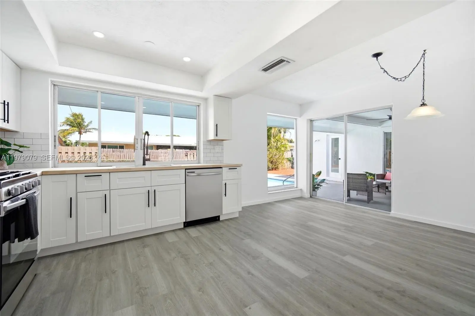 Beautifully updated one-story 3-bedroom, 2-bath pool home with a fully functional 2-car garage, circular driveway, and BRAND NEW ROOF in the heart of Sunrise! This move-in-ready property features brand-new electric panel, vinyl flooring throughout and a fully renovated kitchen with new stainless steel appliances. Both the primary and guest bathrooms have been tastefully remodeled, and the home includes new light fixtures, updated door hardware, switches, and outlets throughout. Float away in your recently resurfaced pool with all-new tile and a 1-year-old pump motor. The fully fenced backyard is perfect for relaxing, entertaining, gardening, and creating a happy space for your pets. Additional features include a new washer and a 4 year old gas dryer. Freshly painted inside and out. Conveniently located near restaurants, shopping centers, and everyday conveniences. No HOA, offering freedom and flexibility for homeowners.