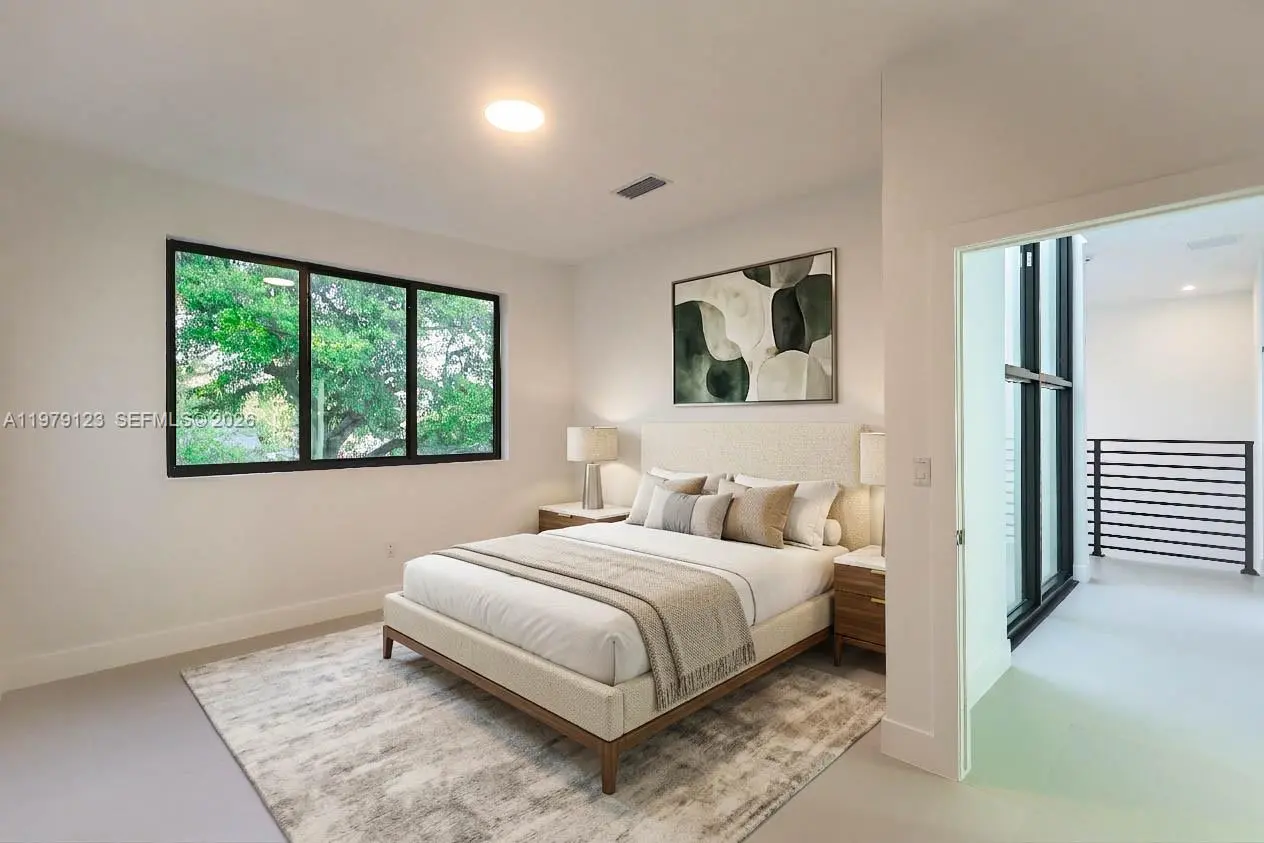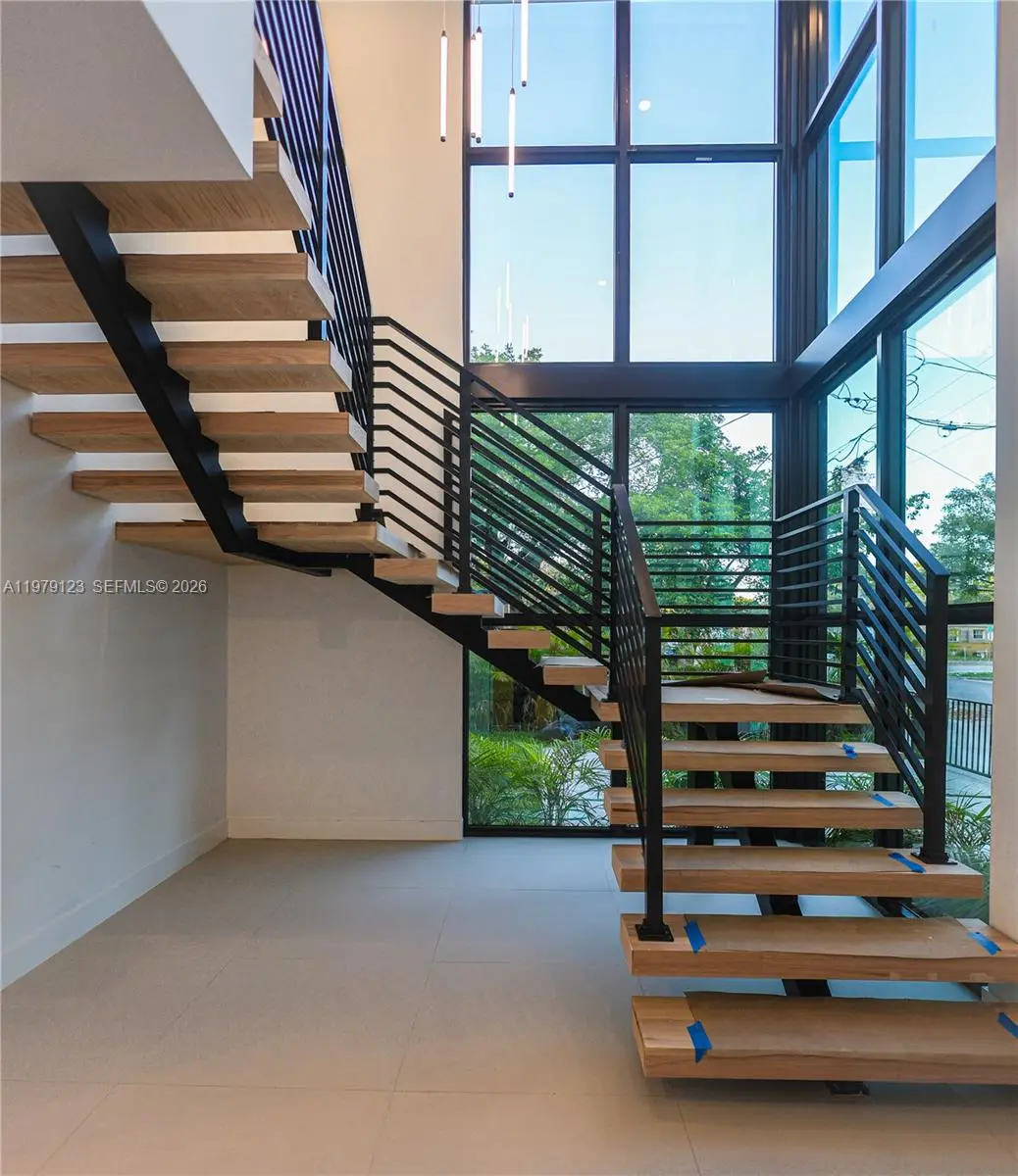 Experience modern Miami living in this exceptional architectural single-family home, completed in 2026. Featuring 4 bedrooms and 4 bathrooms, the open-concept living spaces flow seamlessly into lush landscaping for a true indoor-outdoor lifestyle. A dramatic 25-foot double-height storefront glass facade welcomes you into a striking foyer with an oak staircase, while the interior showcases a modern kitchen with Calacatta countertops, floating vanities, and contemporary finishes throughout. The second-floor laundry adds convenience, and the gated property offers parking for up to six cars, screened by a tall green hedge for privacy. Centrally located, with easy access to the Miami Design District, Edgewater, Wynwood’s vibrant art scene, Miami International Airport, and premier shopping, dining, and cultural destinations. No Flood Zone.