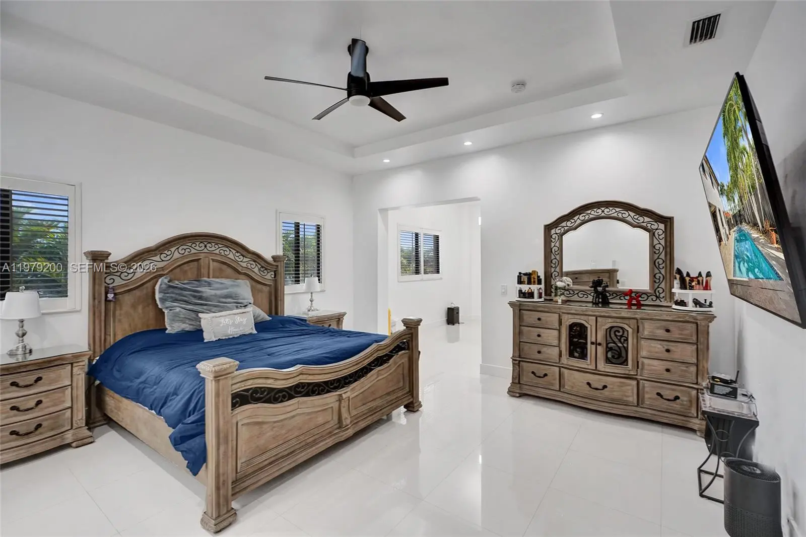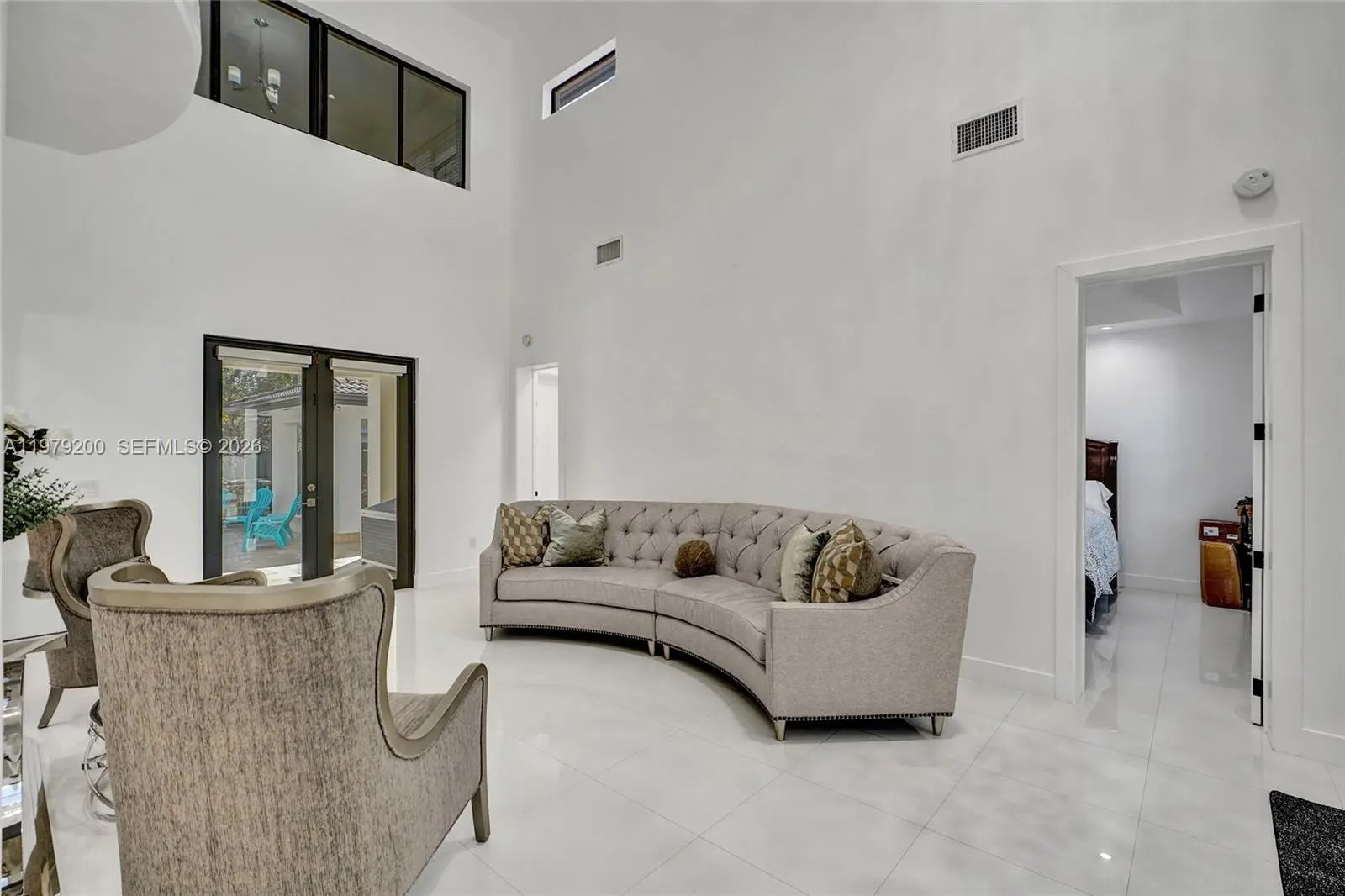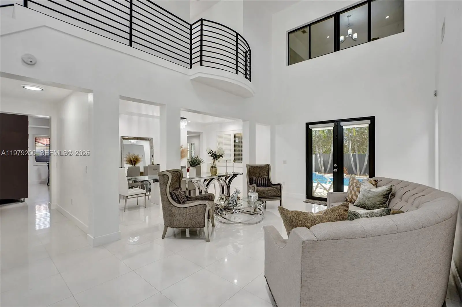 Stunning two story residence located on a quiet cul-de-sac with only four homes offering privacy, space & a functional layout for modern living. Spacious 5 bedrooms/4 bathrooms home features high ceilings, abundant natural light and an open floor plan ideal for everyday living & entertaining. Main level offers expansive living & dining areas that flow into a gorgeous kitchen with wood cabinetry, modern finishes, induction cooktop & wine cooler. One bedroom is located on the first floor along with a versatile extra room ideal for office, gym, playroom or potential 6th bedroom with a full bath adjacent to both. Oversized primary suite provides a private retreat with office area & custom walk in closet for maximum storage. Beautifully upgraded bathrooms throughout. Includes newer A/C systems, impact windows & doors, automatic curtains, new lighting & fixtures, alarm/camera security system, new pool pump & heater, new jacuzzi pump, top of the line washer & dryer. Garage features tile flooring, new mini split A/C and private entrance, offering excellent potential for a mother in law suite, gym or workspace. Backyard designed for entertaining with resort style pool, covered patio & outdoor kitchen plus fence for added privacy and security. Expanded driveway provides additional parking. Located near major roads, shopping, dining & schools. Move in ready and no association. Schedule your showing today.