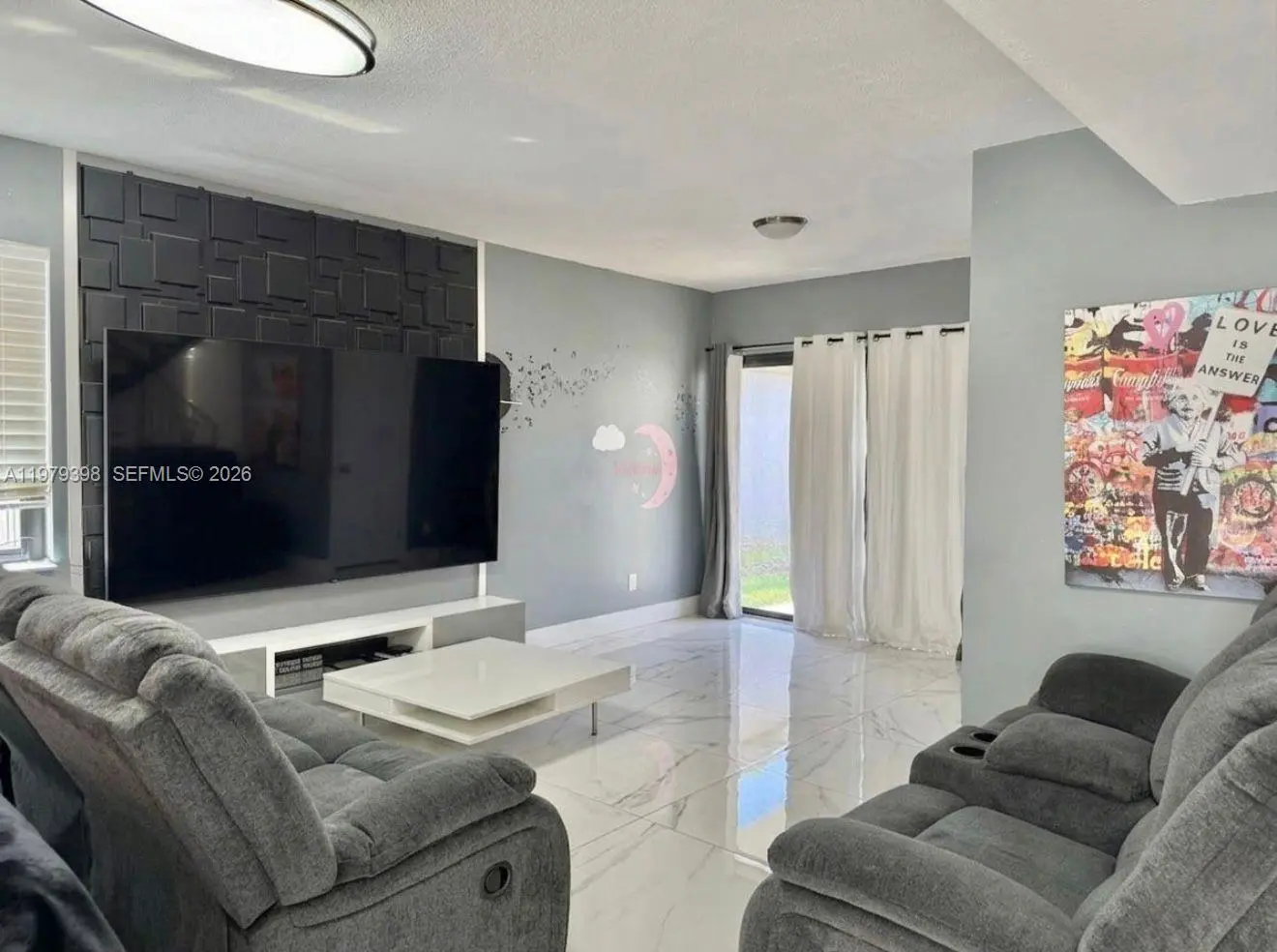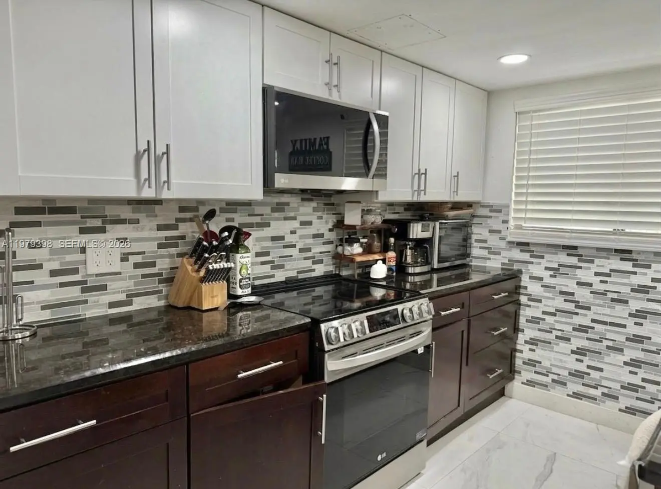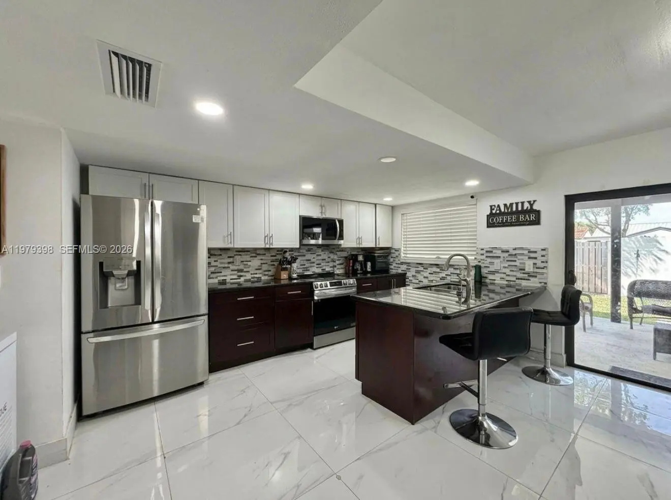 Beautiful single family home, fully remodeled and NO ASSOCIATION. This property features 4 Bed and 2.5 Bath, additional Garage - laundry room can be converted for an in-laws separate room or business office. Open floor plan with large living, dining, family, and spacious kitchen with quartz countertops and stainless steel appliances, porcelain tiled floor throughout the property. Updated in 2023 with new roof, impact windows and doors and AC. Ample backyard with pergola and space for a pool, convenient separate exit door in the patio allowing walking distance access to supermarkets and shops, near Sugarwood Park, Claude Pepper Elementary. Neat property, move in ready. No HOA.