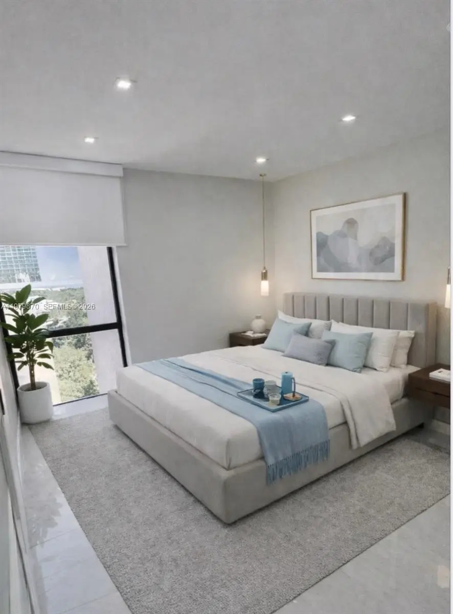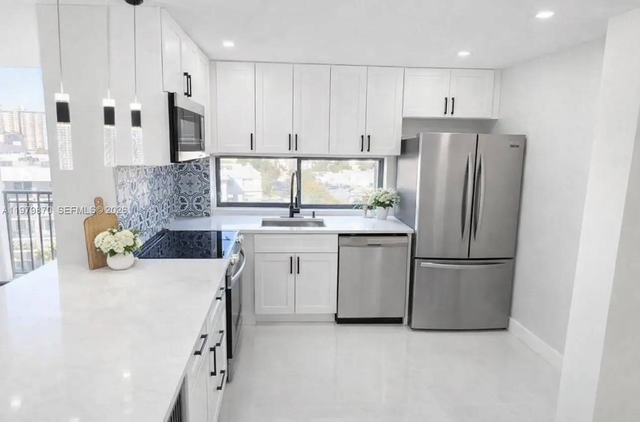 Luxurious fully remodeled apartment, with exquisite design and high-quality materials. Located just two blocks from the beach, it offers a spectacular view of the Sunny Isles Beach skyline and part of the ocean. - 32" x 32" porcelain tile floor with a modern and elegant design - LED-lit ceilings that create a cozy and sophisticated atmosphere - New cabinets and Quartz Countertop with panel decorations that add a touch of luxury - Bathrooms with imported Spanish Tile, modern bathroom fixtures, Toilet and vanities with lighted mirrors that create a spa-like ambiance - Very fine and elegant doors and closets that add a touch of sophistication - Remote-controlled roller shades - motorized - Spectacular view of the Sunny Isles Beach skyline and the ocean between the towers or skyscrapers that border the coast.