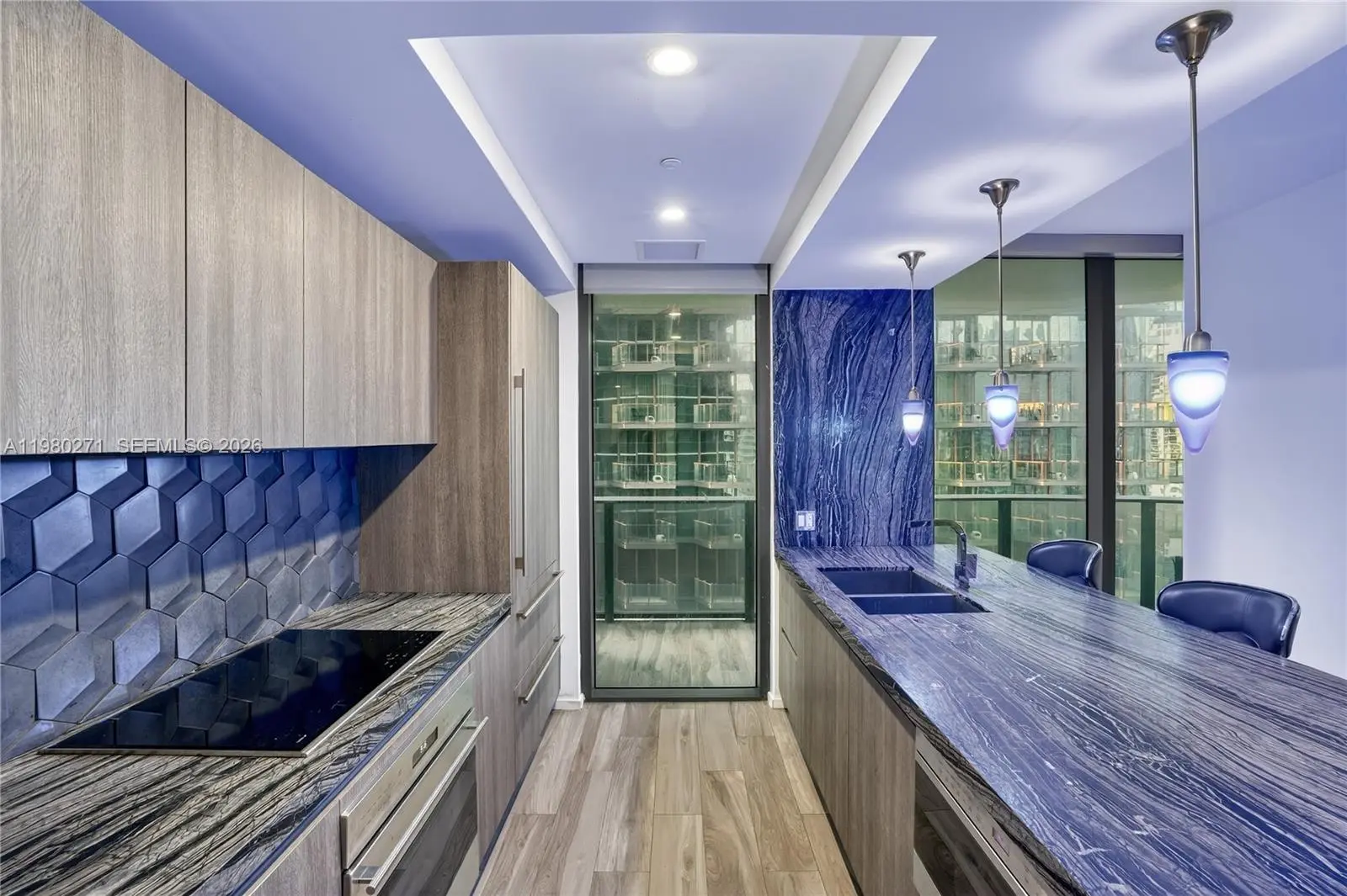 Stunning 28th-floor corner residence at SLS Brickell featuring private elevator access directly into the unit. This highly desirable layout offers expansive floor-to-ceiling glass, abundant natural light, and sweeping Brickell skyline views from a spacious wraparound balcony. Modern open kitchen with large stone island, custom cabinetry, and premium appliances flows seamlessly into the living and dining areas—perfect for entertaining. Spacious split floor plan with generous bedrooms and contemporary finishes throughout. Luxury building amenities include rooftop pool, full-service spa, fitness center, concierge, and on-site dining. Prime Brickell location just steps from Brickell City Centre, Mary Brickell Village, and top restaurants.