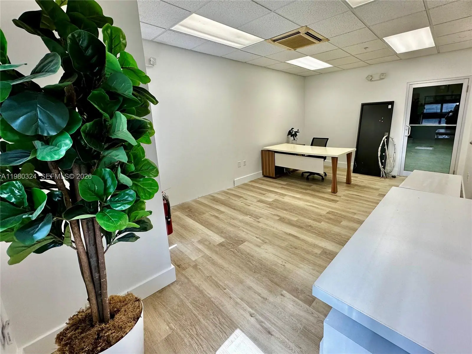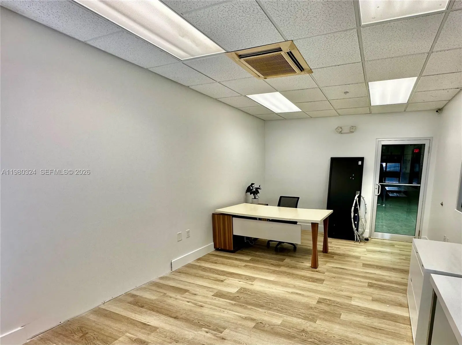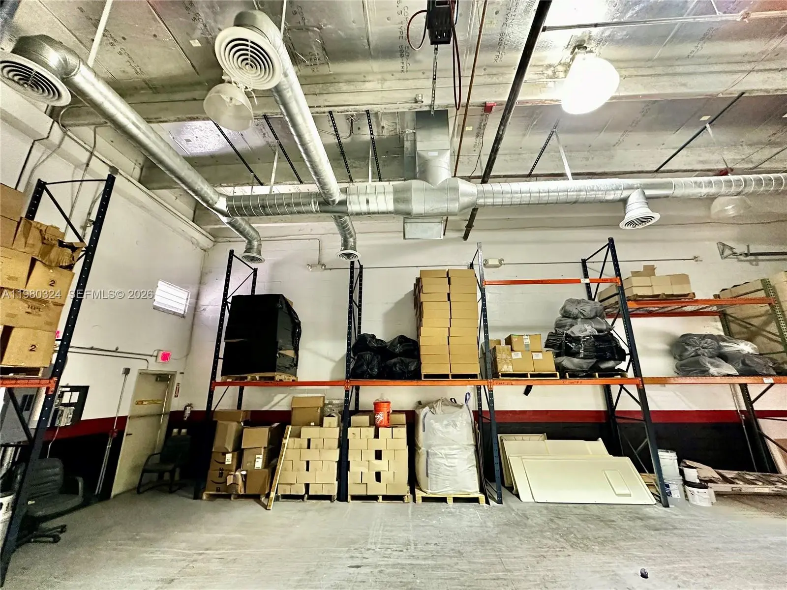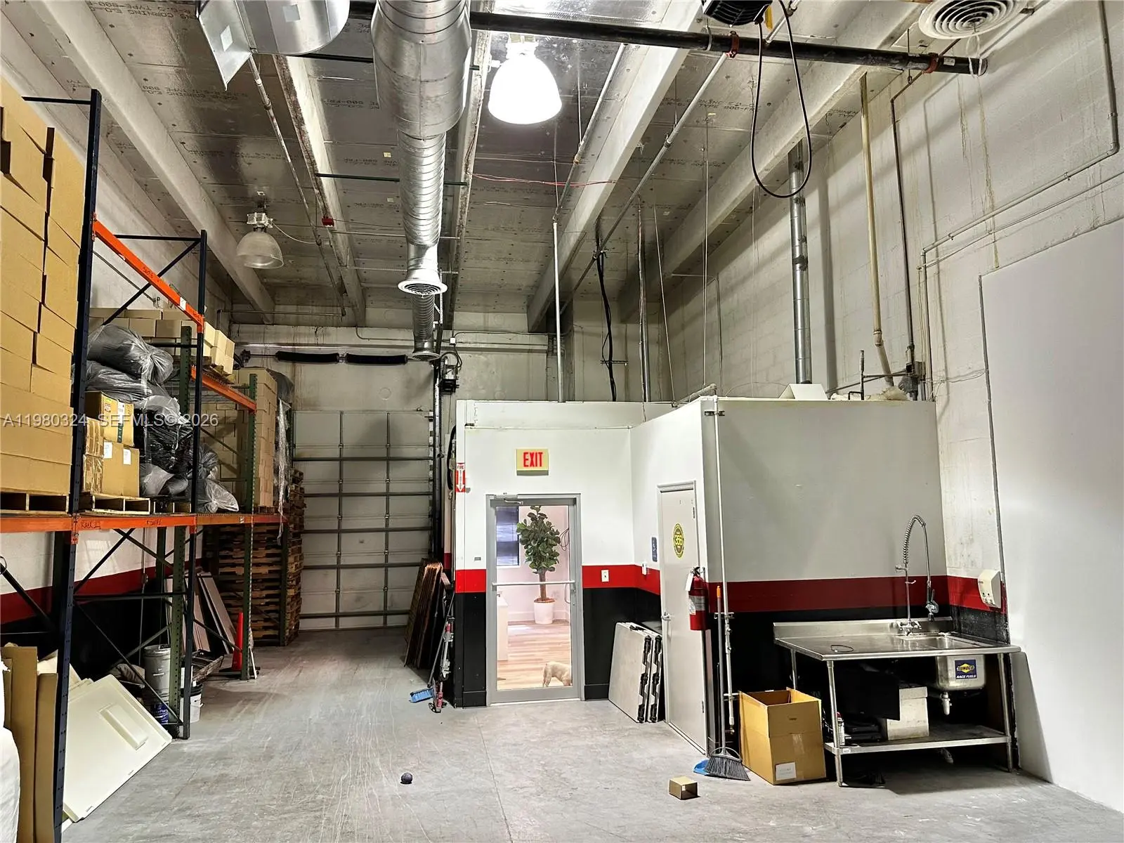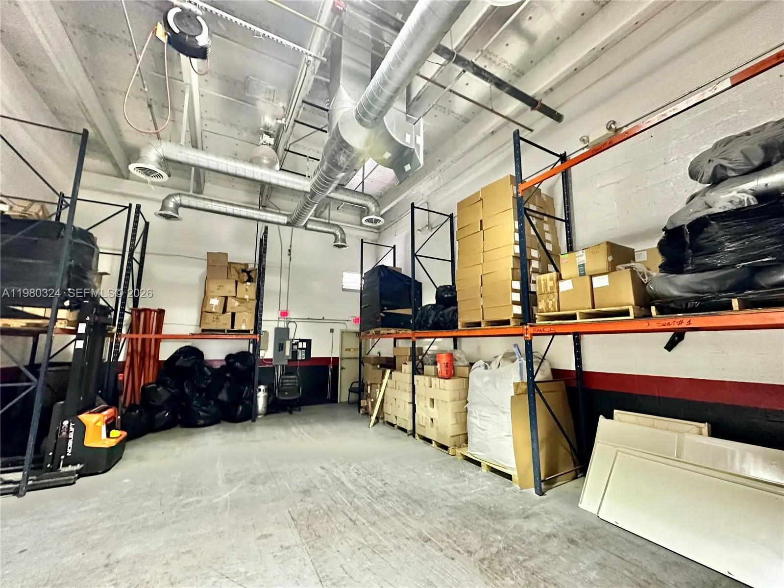 Fully air-conditioned 1,301 sq ft warehouse with 20 ft height ceiling located in Sweetwater. Conveniently located near major highways, Miami International Airport and Dolphin Mall Shopping Center. This versatile property features a spacious open warehouse area, private office space, an automatic overhead door, pallet storage racks, 2 assigned parking spaces as well as ample guest parking. This unit is ideal for light industrial, distribution, e- commerce, or creative workspace needs.
