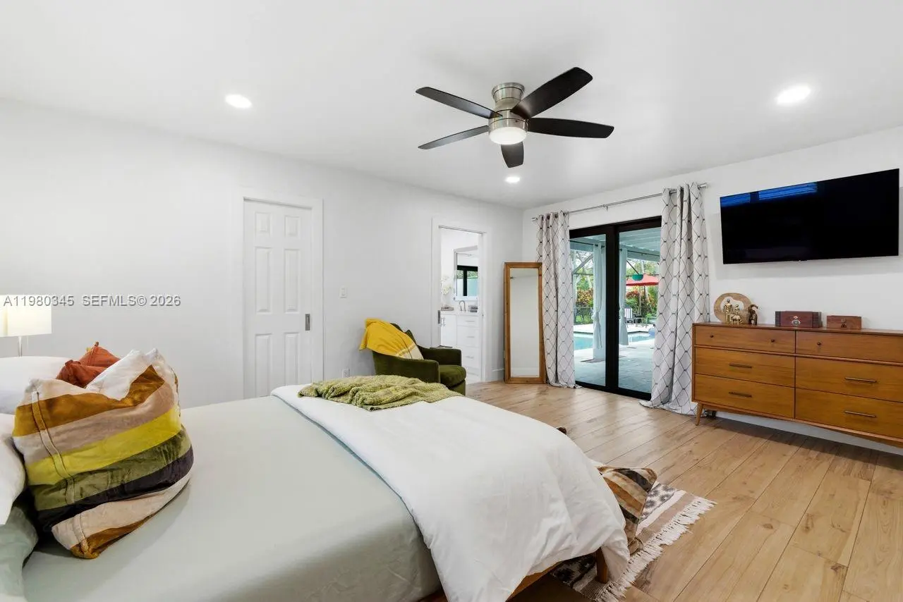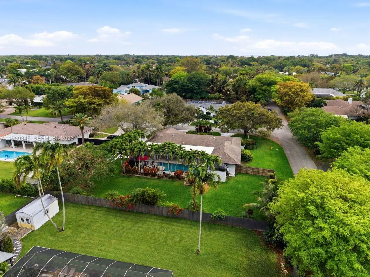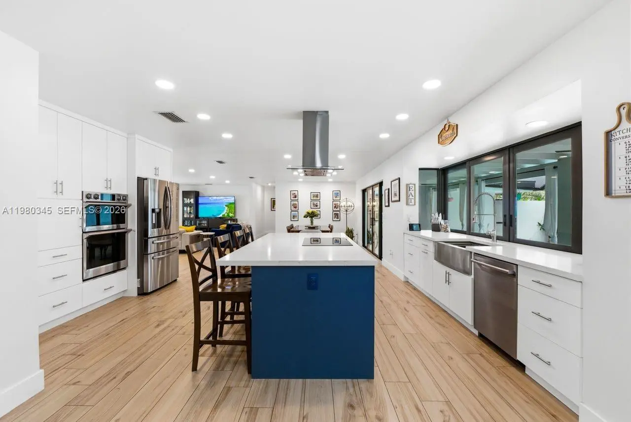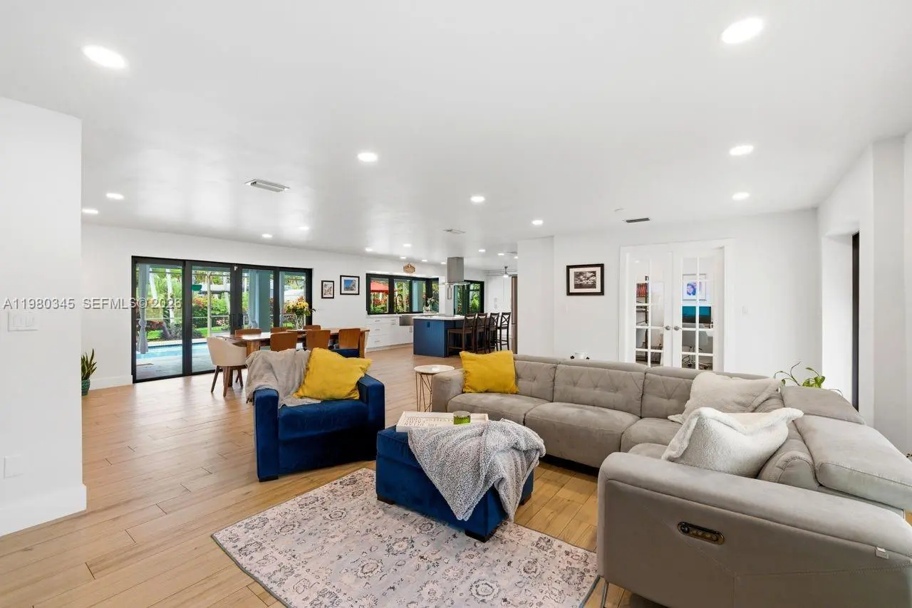 Tucked away on a lush corner lot of nearly half an acre, this beautifully reimagined 4 bedroom 3 bath home with a den offers the perfect blend of privacy and sophistication. A semi-circular driveway welcomes you in, while an extended driveway leading to the 2 car garage provides ample parking for family and friends. Inside, the home feels light, airy and inviting, with open living spaces that flow naturally toward the screened terrace and pool, creating an effortless indoor-outdoor lifestyle. The beautifully updated kitchen features sleek quartz surfaces and an expansive center island with seating and additional storage, positioned to capture tranquil views of the tropical backyard. Truly turnkey, this exceptional home is further enhanced with impact windows and doors, as well as PVC plumbing, offering peace of mind and a seamless transition for its next owner. Ideally located just moments from some of the area’s best dining and recreation, this home is a private sanctuary where comfort, elegance and everyday living come together flawlessly.