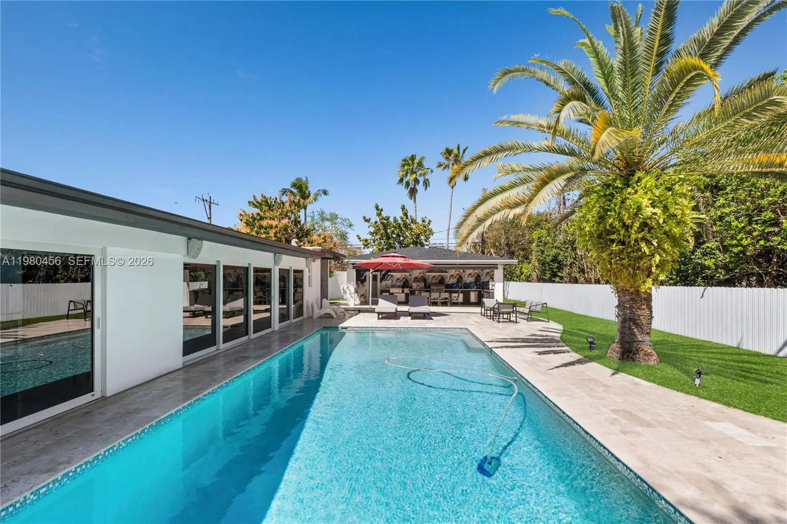 Your Pinecrest dream is now available for rent. This completely renovated corner home sits on nearly 21,000 sqft of gated paradise. The main residence features 4 bedrooms & 3 full baths. The approx. 420 sqft guest house is complete with a full bath & flexible space perfect for a home gym, office, or guest suite. The summer kitchen is incredible with everything you can imagine. Your private pool, barbecue, & outdoor dining area create the perfect setting for entertaining. This home is completely move-in ready with custom remodeling throughout & an incredible garage featuring built-in storage. Nestled in Pinecrest, one of Miami's most sought-after neighborhoods, with access to the best public & private schools that Pinecrest has to offer. World-class dining & shopping are moments away.