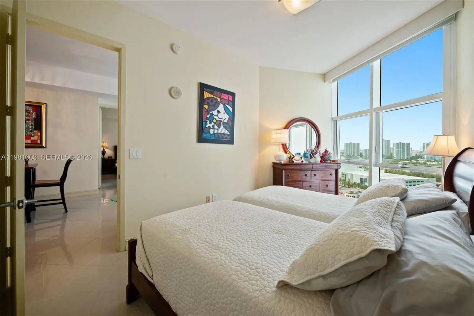 Enjoy sweeping Atlantic Ocean and Intracoastal Waterway views from Residence 1808 in the desirable 08 line at Trump Palace. Floor-to-ceiling windows and a spacious terrace frame the water vistas and fill the living spaces with natural light. The thoughtfully designed split floor plan offers comfortable living and dining areas that open to the terrace, creating a seamless indoor-outdoor setting ideal for relaxing or entertaining. The primary suite features water views, terrace access, a walk-in closet, and a spacious private bath. Residents enjoy a full-service oceanfront lifestyle with private beach service, an oceanfront pool deck, tennis courts, fitness center, spa services, concierge, valet, and 24-hour security. Located in Sunny Isles Beach, the building is just minutes from Haulover Park and Haulover Marina, offering boating, beaches, and outdoor recreation, as well as the luxury boutiques and restaurants of Bal Harbour Shops and the shopping and entertainment of Aventura Mall.
