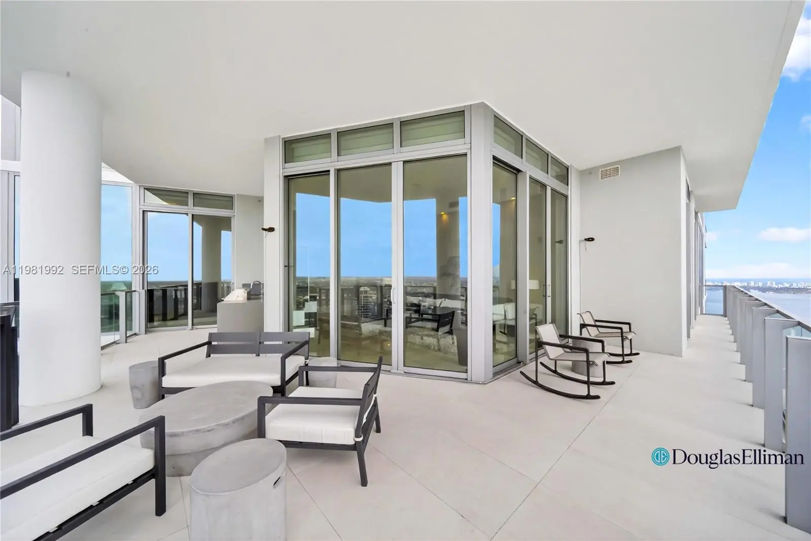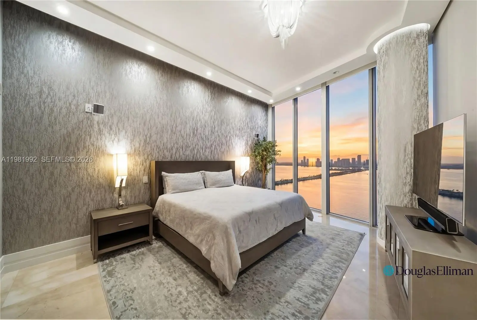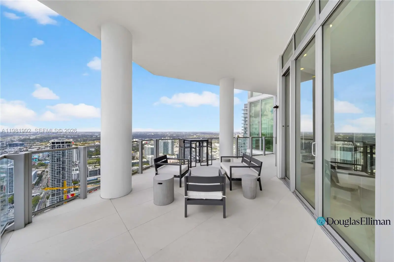 Experience elevated waterfront living in this spectacular 5-bedroom, 5.5-bath residence with a spacious den on the 49th floor at Biscayne Beach, offered at $5,350,000. This designer-finished home features soaring 12-foot ceilings and dramatic floor-to-ceiling windows that frame breathtaking bay and city views while filling the interiors with natural light. A grand open living and dining area creates an impressive setting for entertaining as well as comfortable everyday living. The chef’s kitchen is anchored by a striking onyx waterfall island, blending sculptural elegance with functionality. The thoughtfully designed layout includes two luxurious primary suites, each with spa-inspired bathrooms and double vanities, along with three additional bedrooms and a large den ideal for a media room, office, or lounge. Enjoy seamless indoor-outdoor living with two expansive private terraces, one featuring a summer kitchen perfect for alfresco dining while taking in panoramic Biscayne Bay views. Additional features include electric blinds throughout with sheer and blackout shades, central air conditioning, and a separate laundry room. Offered fully designer-furnished and turnkey—simply bring your toothbrush and move right in. A rare opportunity to own a luxury sky residence in one of Edgewater’s premier waterfront buildings.