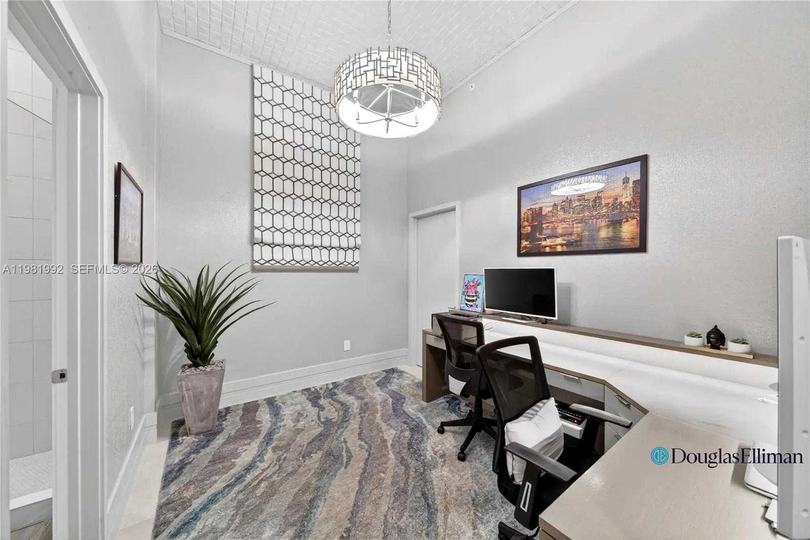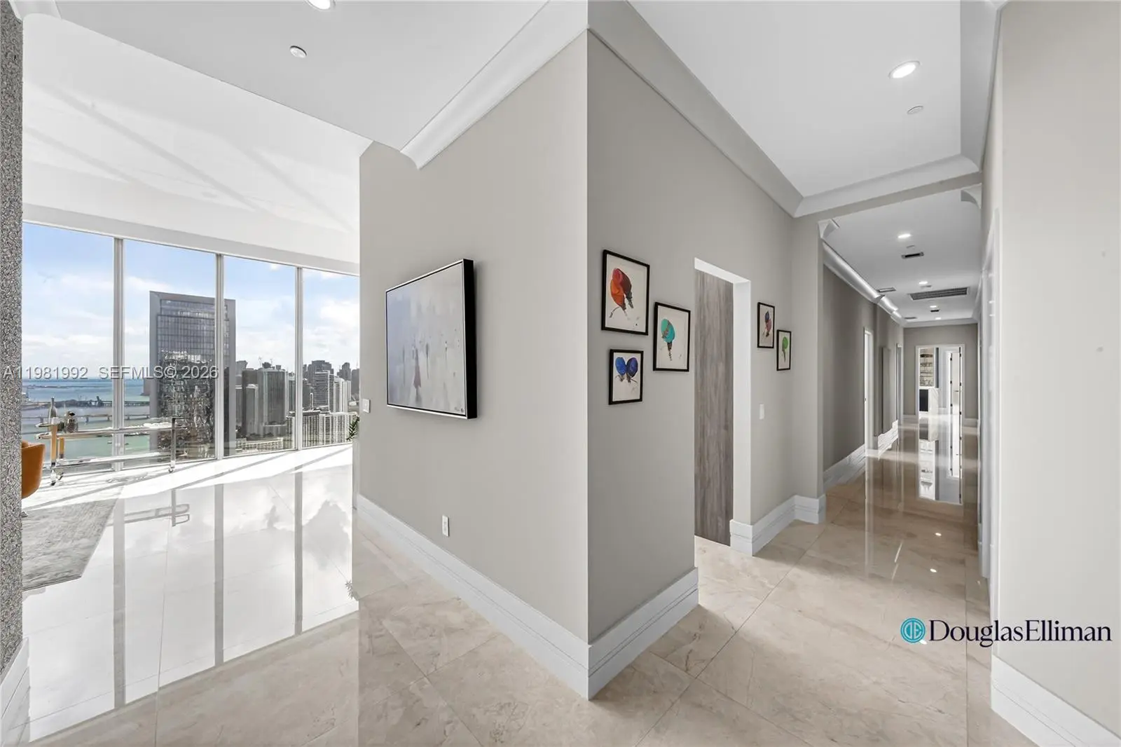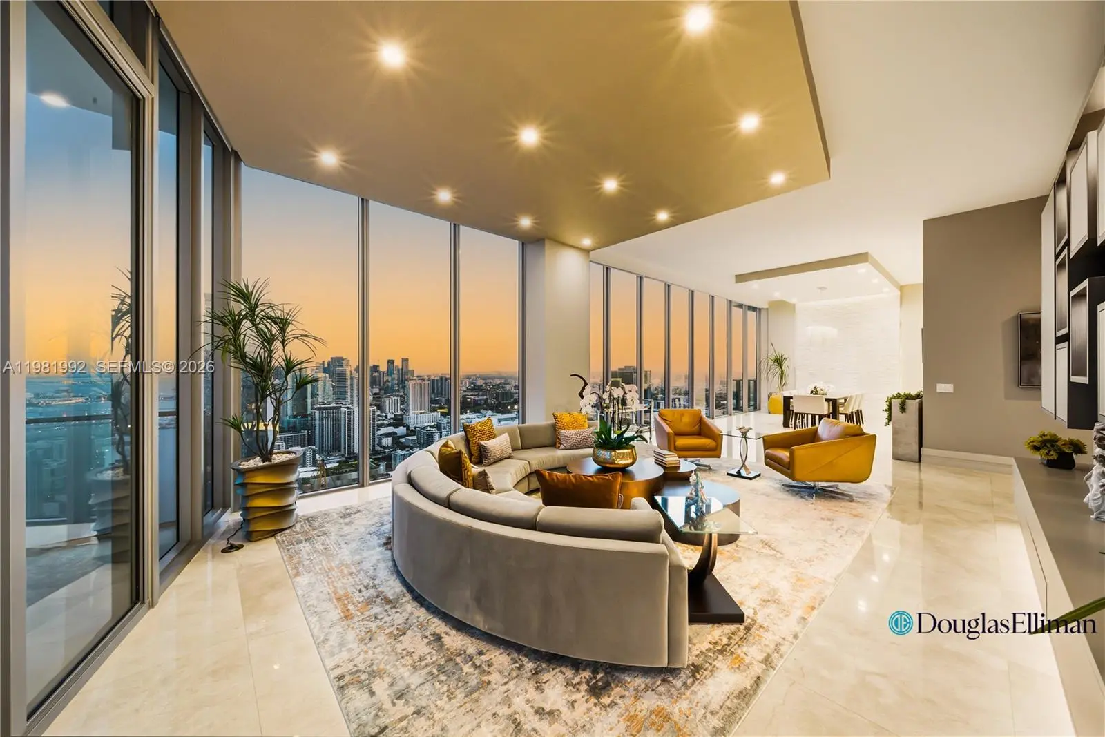 Experience elevated waterfront living in this spectacular 5-bedroom, 5.5-bath residence with a spacious den on the 49th floor at Biscayne Beach, offered at $5,350,000. This designer-finished home features soaring 12-foot ceilings and dramatic floor-to-ceiling windows that frame breathtaking bay and city views while filling the interiors with natural light. A grand open living and dining area creates an impressive setting for entertaining as well as comfortable everyday living. The chef’s kitchen is anchored by a striking onyx waterfall island, blending sculptural elegance with functionality. The thoughtfully designed layout includes two luxurious primary suites, each with spa-inspired bathrooms and double vanities, along with three additional bedrooms and a large den ideal for a media room, office, or lounge. Enjoy seamless indoor-outdoor living with two expansive private terraces, one featuring a summer kitchen perfect for alfresco dining while taking in panoramic Biscayne Bay views. Additional features include electric blinds throughout with sheer and blackout shades, central air conditioning, and a separate laundry room. Offered fully designer-furnished and turnkey—simply bring your toothbrush and move right in. A rare opportunity to own a luxury sky residence in one of Edgewater’s premier waterfront buildings.