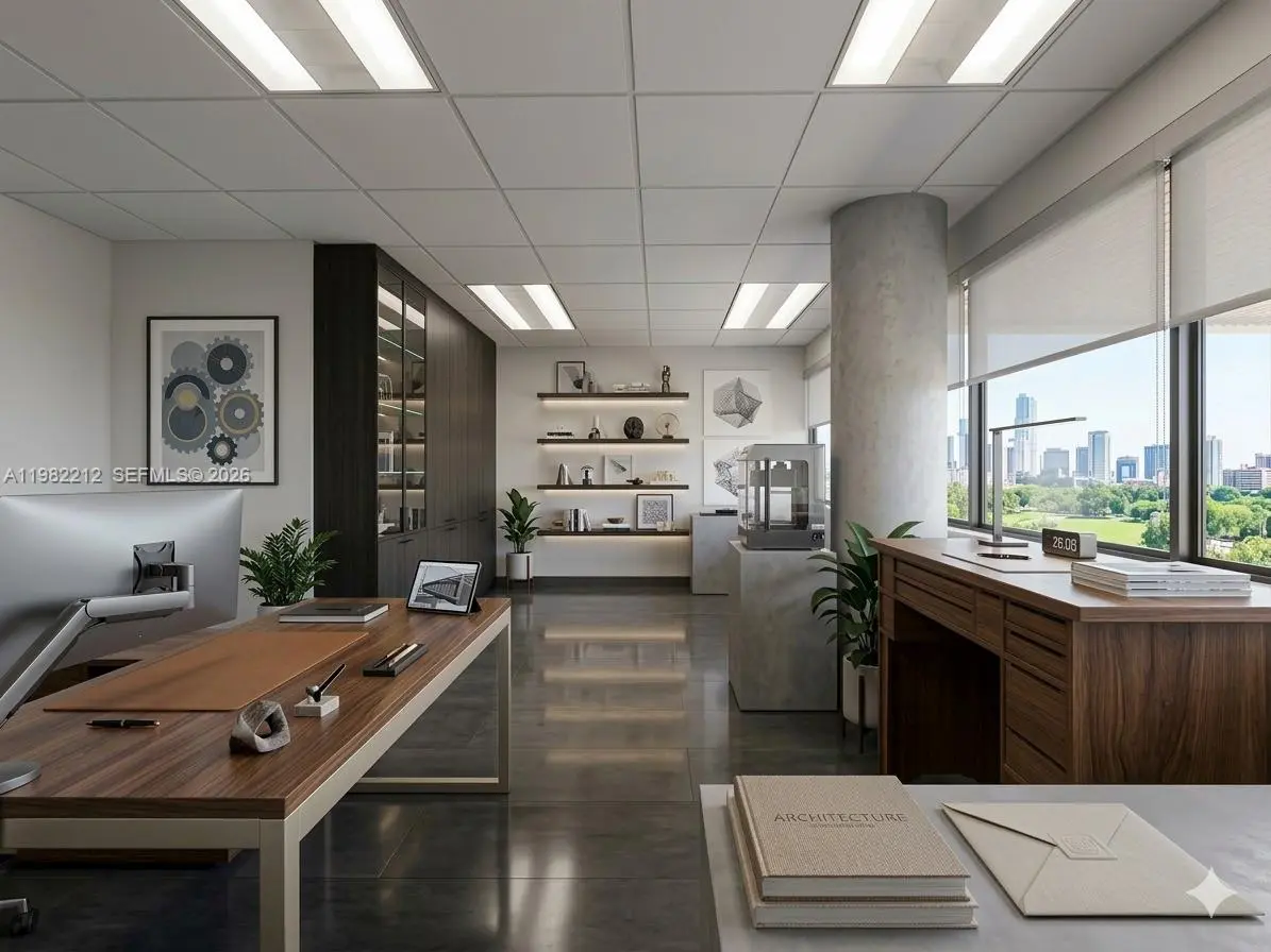 Prime opportunity to own a 747 SF professional office on the 5th floor, ideally located in the heart of Bay Harbor Islands, just minutes from Bal Harbour Shops, Surfside, and Miami Beach. This well-maintained unit is currently configured into two private office suites plus a welcoming reception/living room area, creating a comfortable and functional layout for clients and daily operations. The space offers flexibility for owner-users or investors and can be easily combined into one larger executive office if desired. Estimated rental income ranges from $3,000 to $3,200 per month, presenting strong income potential in a high-demand professional market. Enjoy the Bal Harbour lifestyle, surrounded by world-class luxury shopping, fine dining, pristine beaches, and an exclusive business environment that elevates your professional image. The building features upgraded hallways, modern elevators, excellent amenities, free guest parking, and secured owner/tenant parking. HOA: $1,200/month Taxes: Approx. $5,200/year Ideal for medical, legal, consulting, or financial professionals, or investors seeking a prime location with strong rental potential.