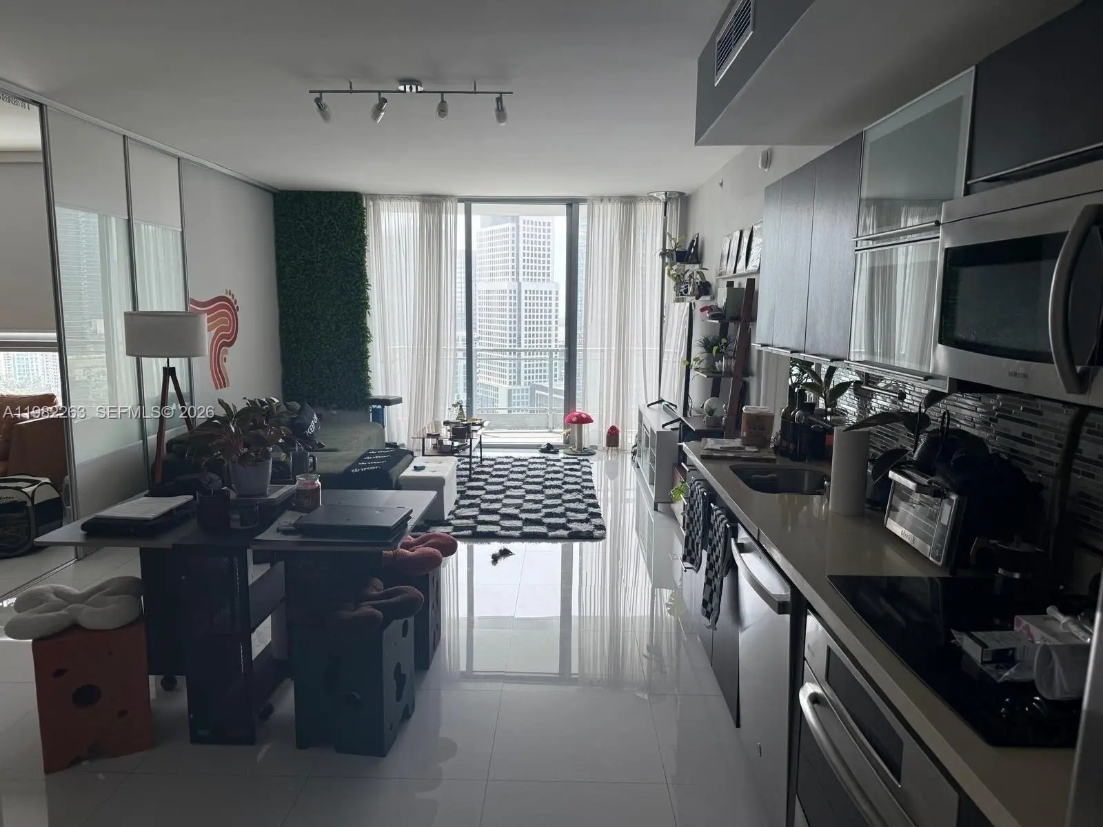 Spacious 32nd-floor 2-bedroom, 2-bath condo with Brickell skyline and Miami River views. Floor-to-ceiling impact windows and a large balcony maximize light and city vistas. Open layout with large-format white porcelain tile, stainless steel appliances, washer/dryer, and a walk-in closet. Building & community amenities: 24/7 attended security, concierge, infinity-edge pool, fitness center, sauna and steam rooms, and direct access to the Miami Riverwalk. Prime Brickell location — steps to Brickell City Centre, top restaurants, and public transit. Includes one assigned parking space; valet available. Water, cable, and Wi-Fi included. Contact to schedule a viewing.