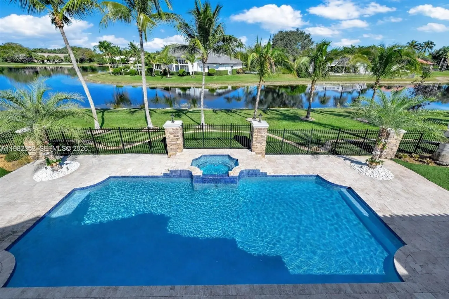 Weston’s premier trophy estate, set on a coveted corner lot with exceptionally rare and expansive waterfrontage in the prestigious guard-gated community of Windmill Ranch. Exquisitely remodeled with impeccable craftsmanship and refined finishes, this magnificent residence offers approximately 8,400 square feet of elegant living space with five bedrooms, six full baths, two half baths, plus a formal office and media room. Features include an elevator, impact windows and doors, and a four-car garage. A breathtaking resort-style pool and private spa overlook sweeping lake vistas, while the stunning primary suite enjoys some of the most spectacular views in all of Weston. With no neighbor to the west, the estate offers exceptional privacy. A truly rare and remarkable offering in one of Broward County’s most prestigious communities.
